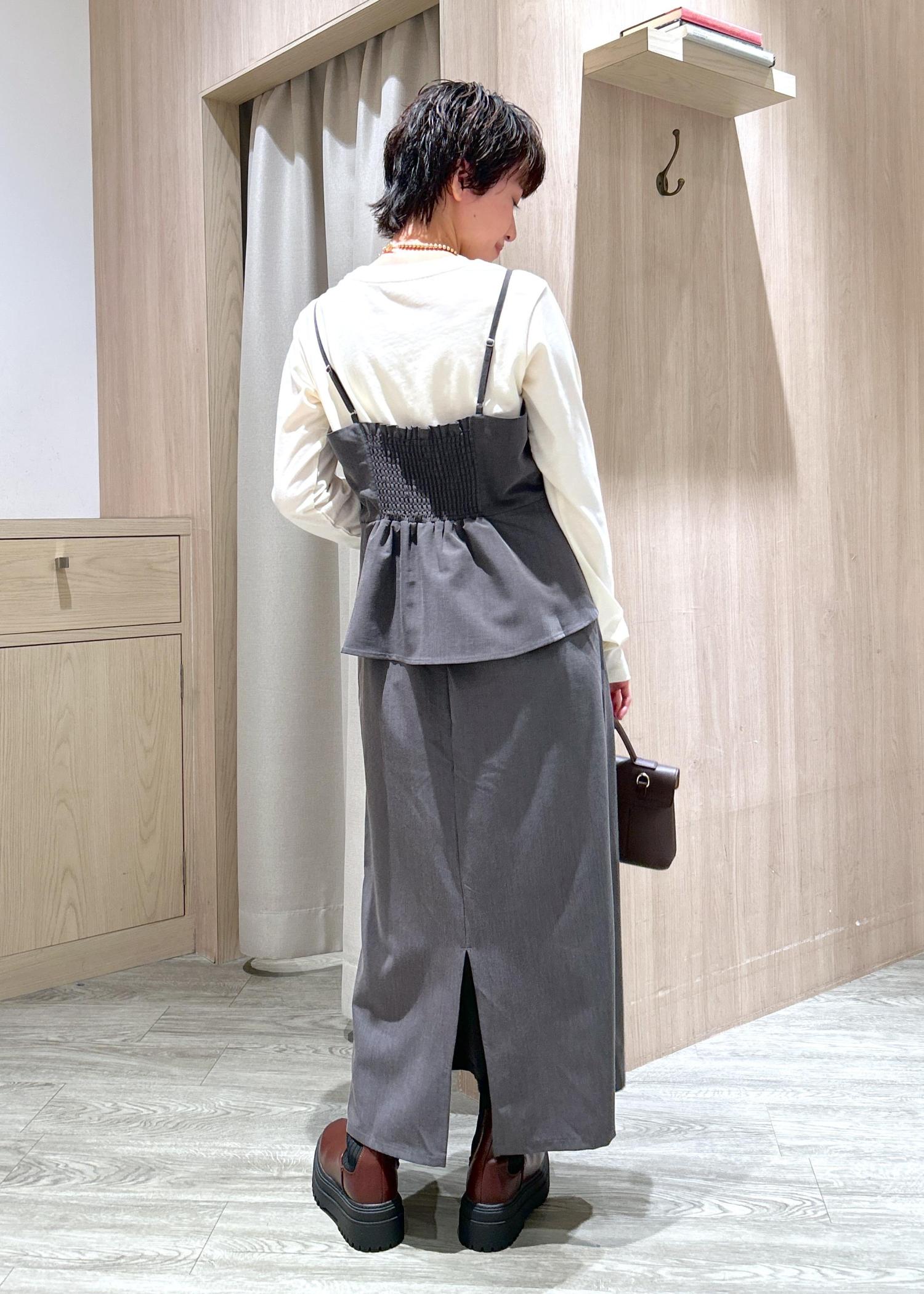 VISビスチェドッキングライクキャミワンピースグレー / F¥7,689レビュー身長155cm、胸上ぐらいで肩紐のアジャスターを調節して足首が少し見える丈感です。