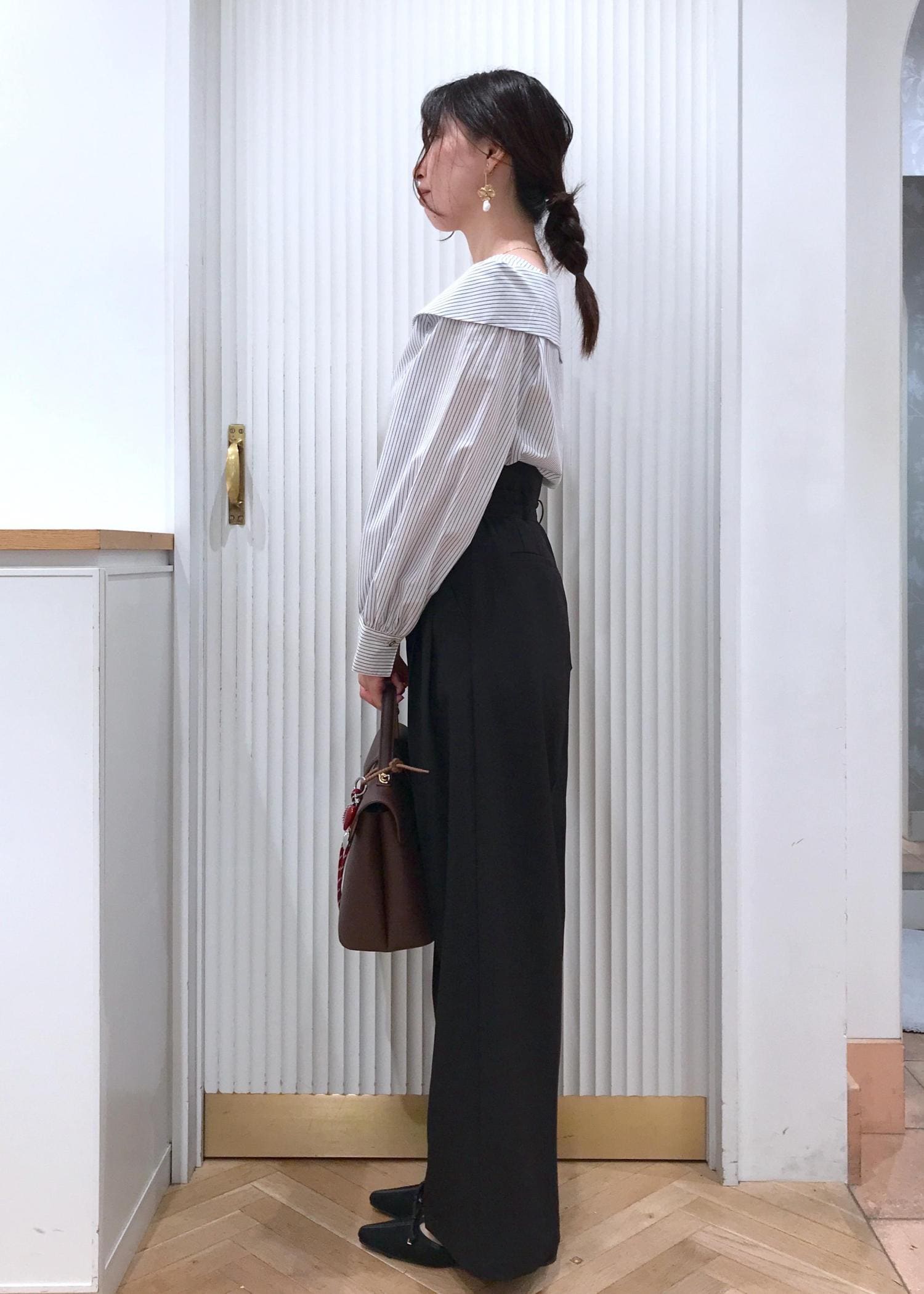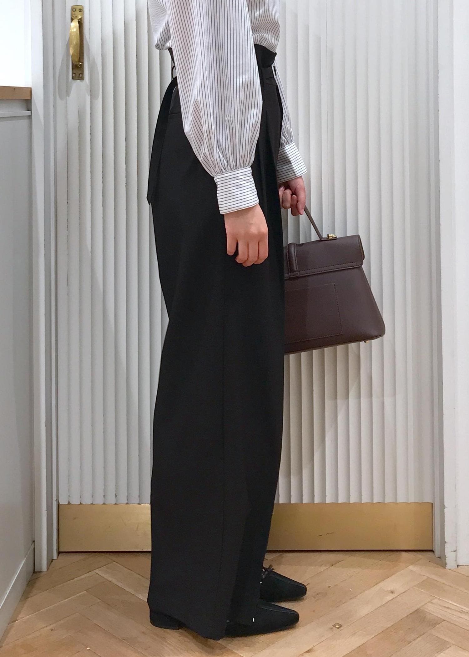ウエストはややハイウエストなので腰の位置が高く見え脚長効果もありますよ。 -