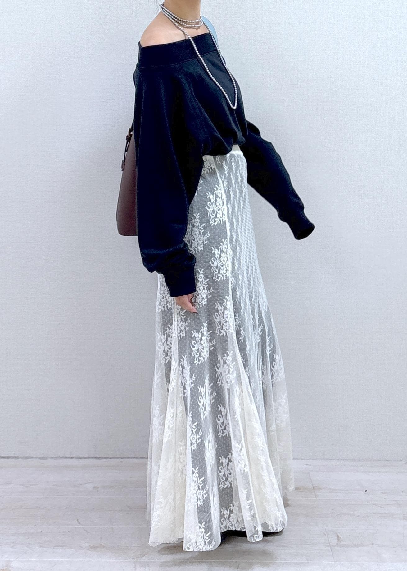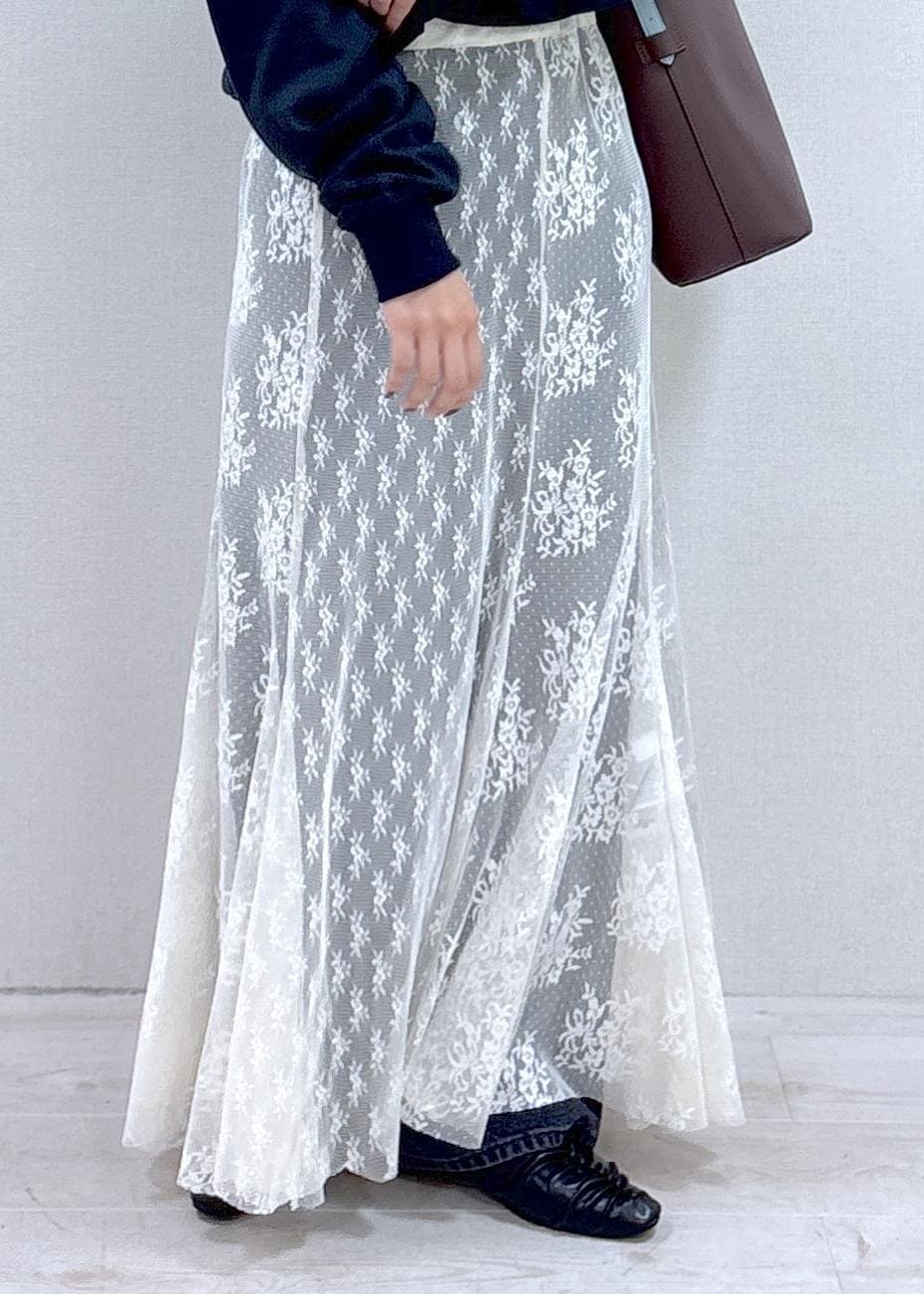 レーススカートとして履いても長さがしっかりあってレース部分だけ揺れ感があるのでドレッシーでとっても可愛いです♡ -