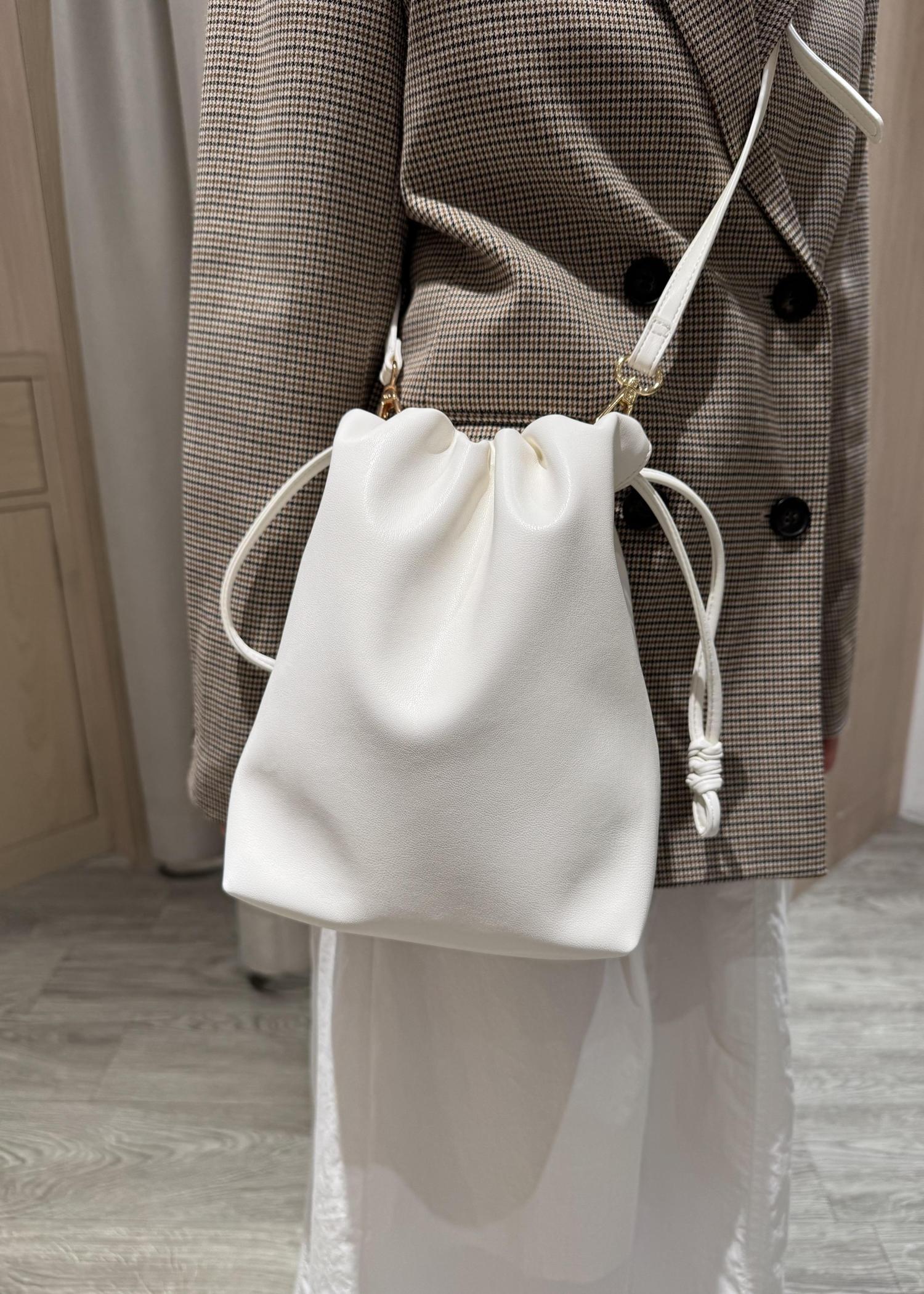 アウトレットVISチェーンハンドル2WAY巾着バッグオフホワイト / F¥3,460レビューコンパクトなサイズ感ですが、500mlのペットボトルも入ります!巾着型が他にはないデザインで可愛いです!