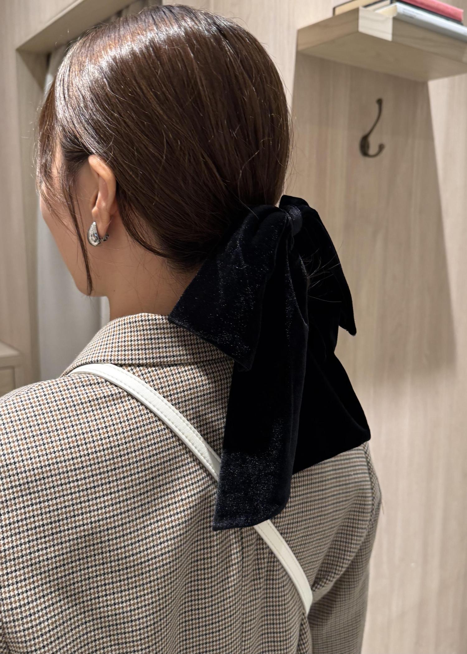 VIS【新色追加】ビックベロアリボンヘアカフブラック / F¥2,497レビュー結び目に挿すだけで、簡単に決まるところが嬉しいポイント!◎正面からも見えるサイズ感なので、コーディネートのアクセントに!