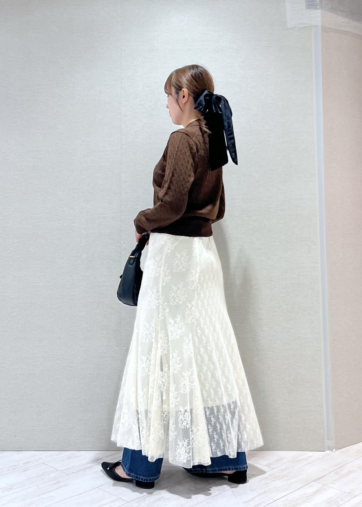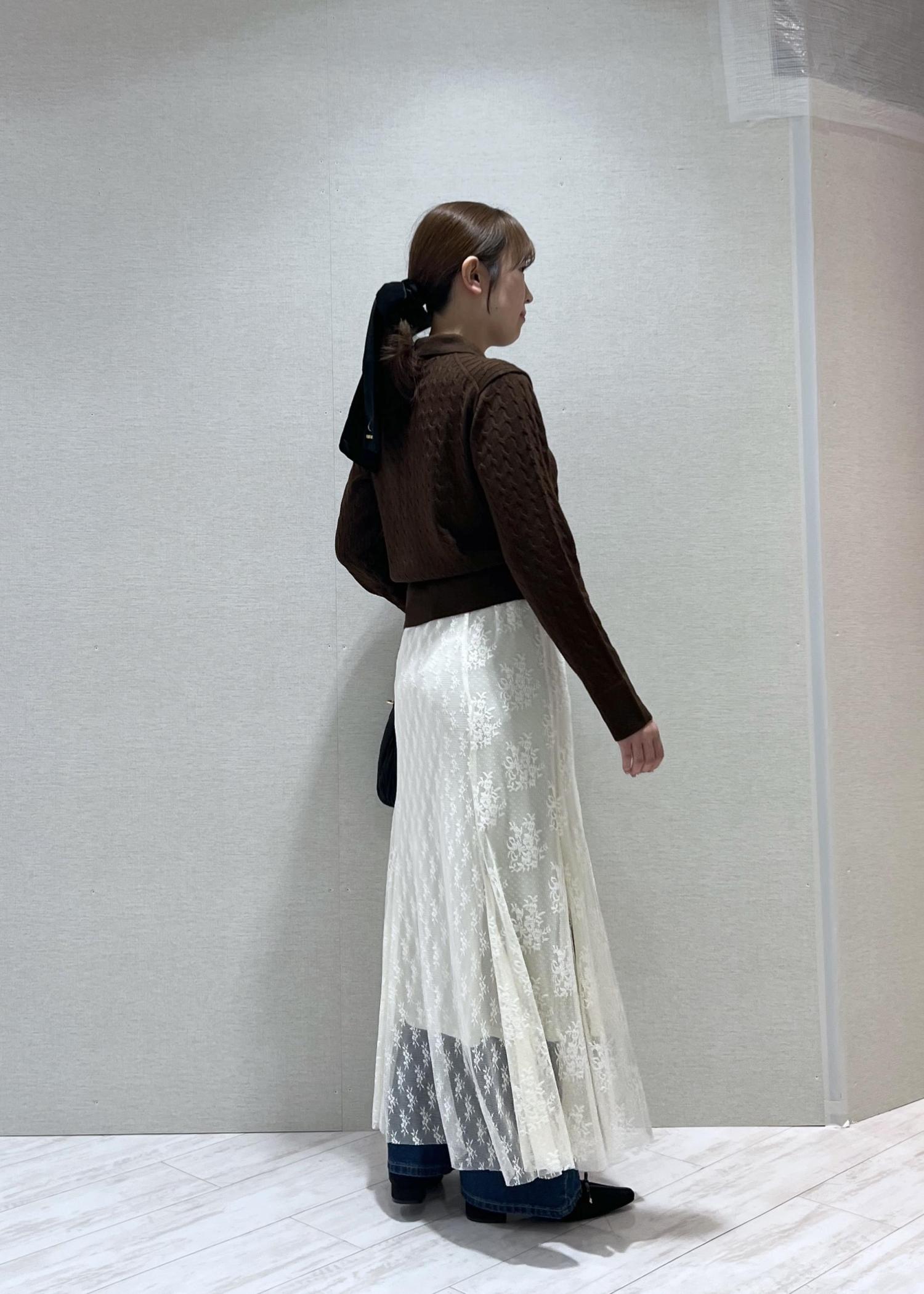 VISフィブリルサテン&レースアソートマーメイドスカートキナリ / F¥5,382レビューレースを着用しました♪ウエストはゴムなのでリラックスして着用出来ます。 ペチコートを履いてスカートにも、履かずにパンツの上からも着回せます!インナーはベージュなどのあまり透けないお色で合わせる事をおすすめします◎