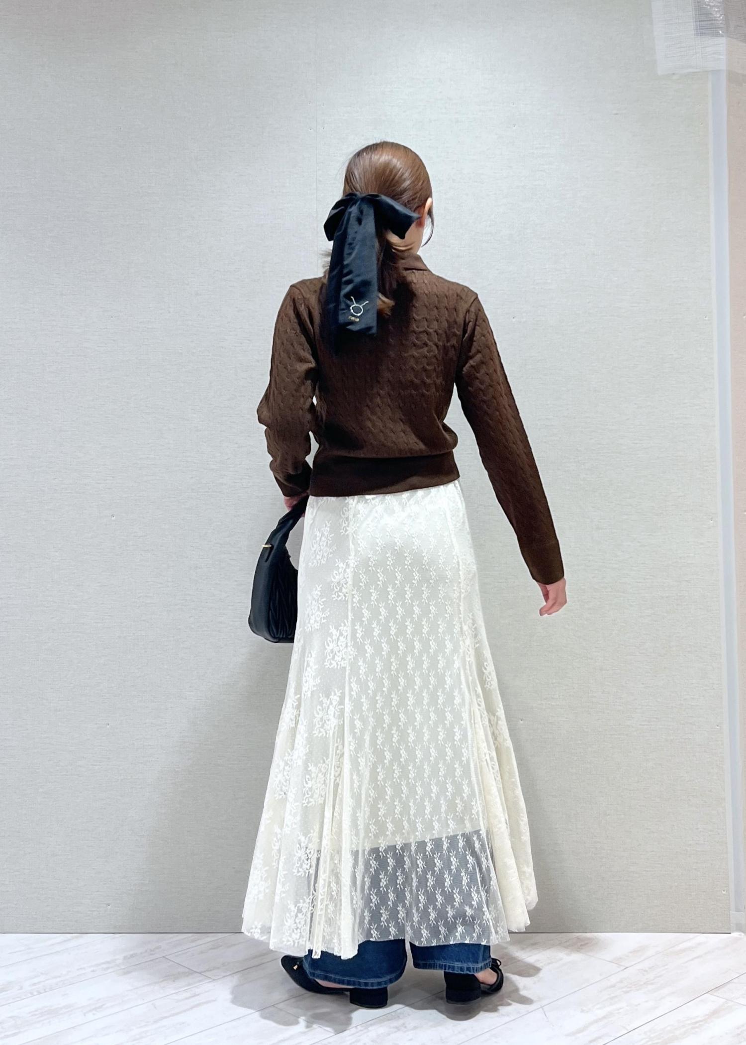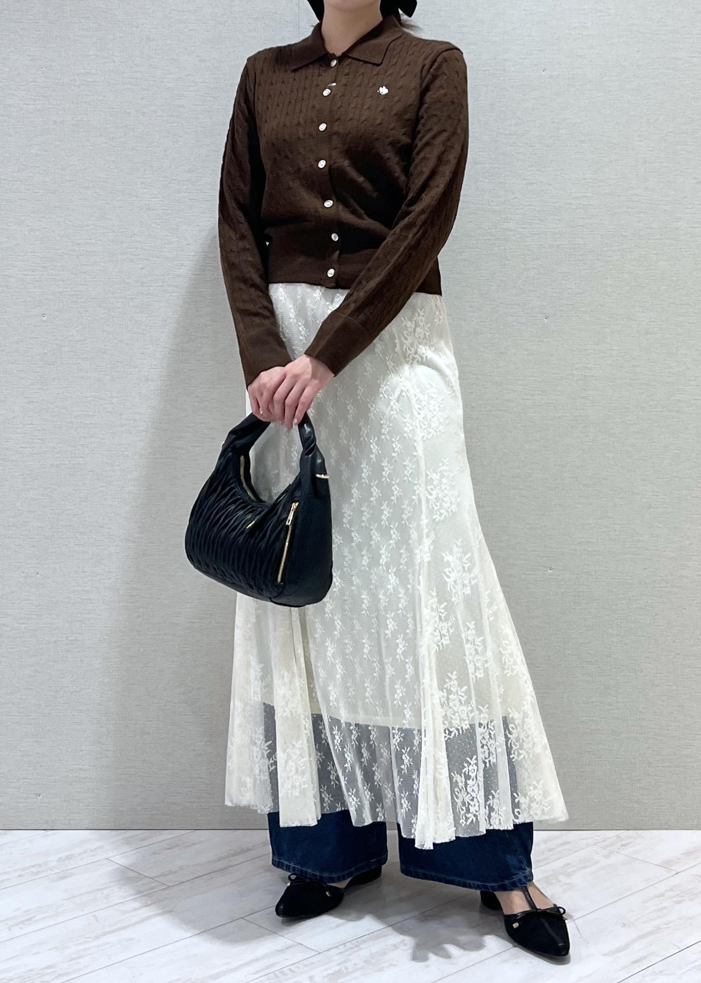 VIS【POLO BCS】VIS別注ミニケーブルポロ襟ニットカーディガンダークブラウン / F¥7,150レビュー着丈は長すぎず短すぎず、どんなボトムにも合わせやすい丈感です!柔らかくチクチクしない素材で、着心地は程よく余裕も有り◎中にレースのインナーを着て、裾や袖を出したコーデもおすすめです♡