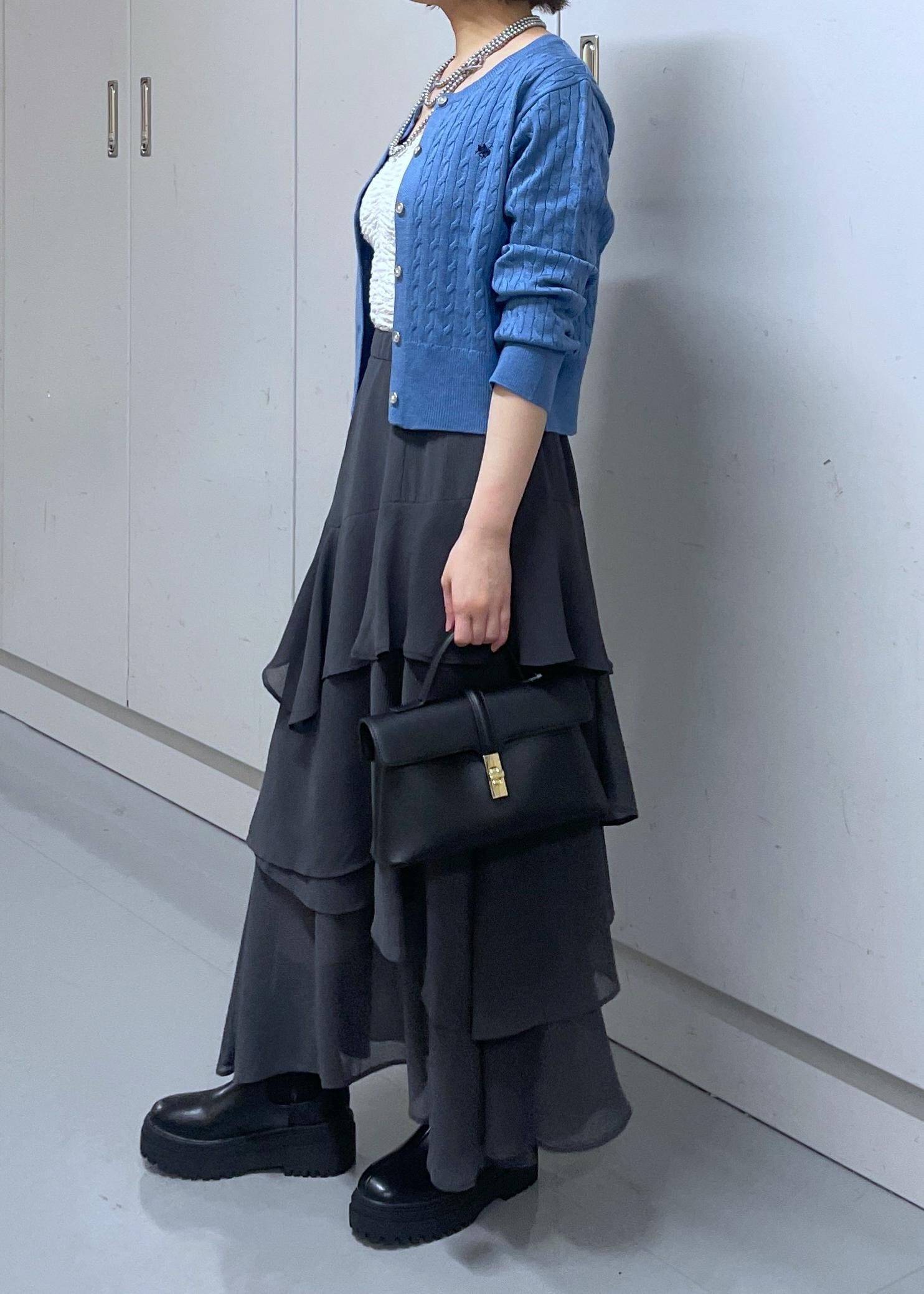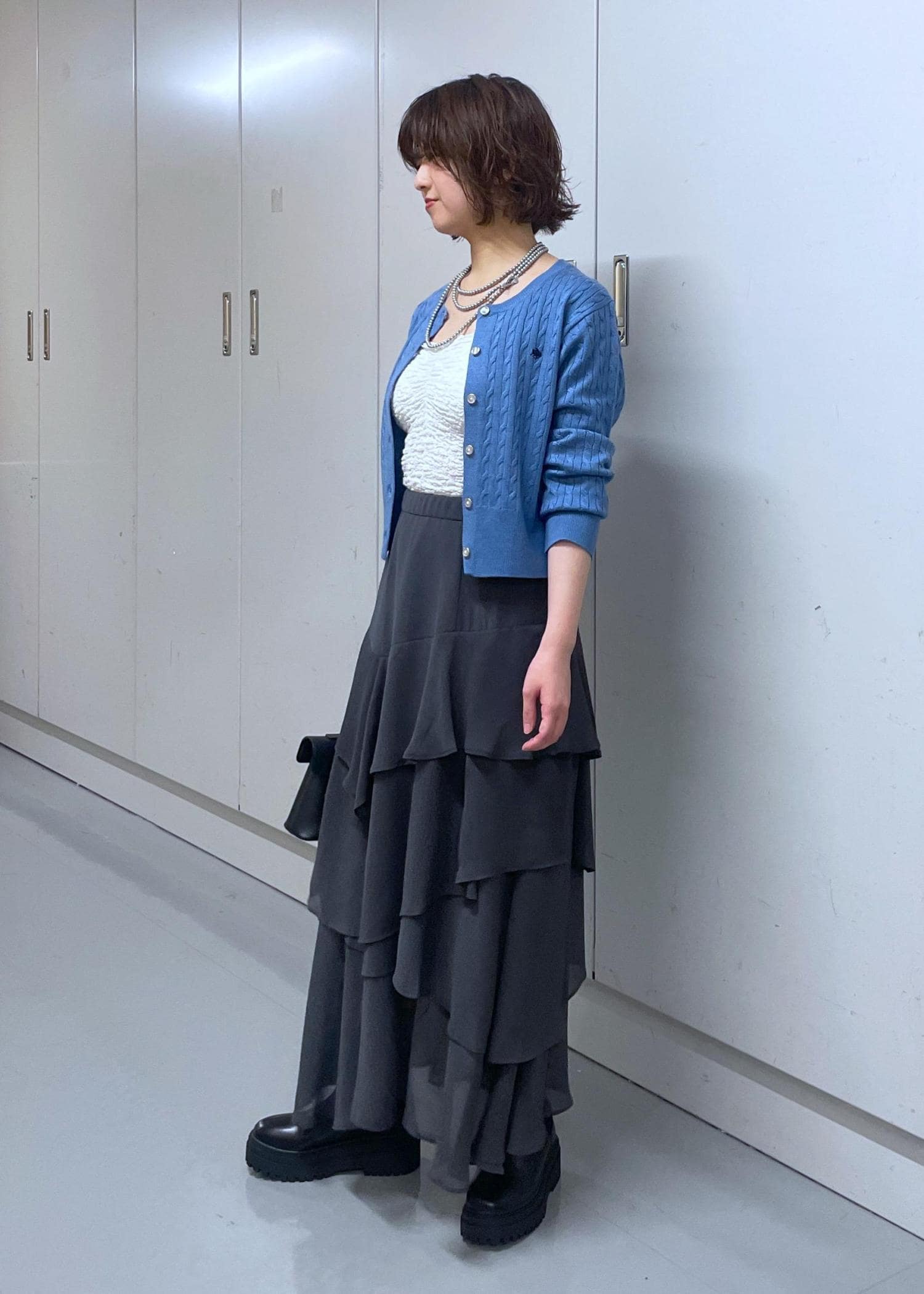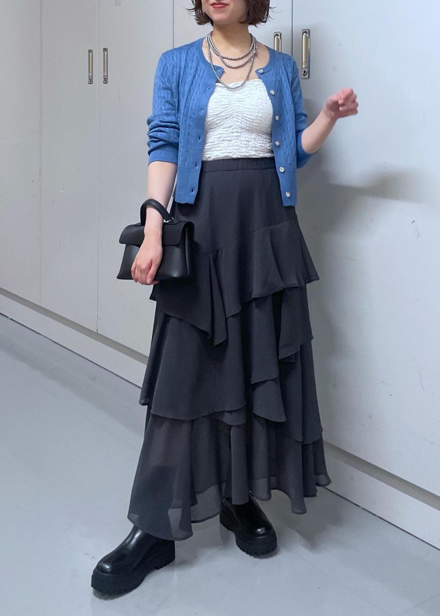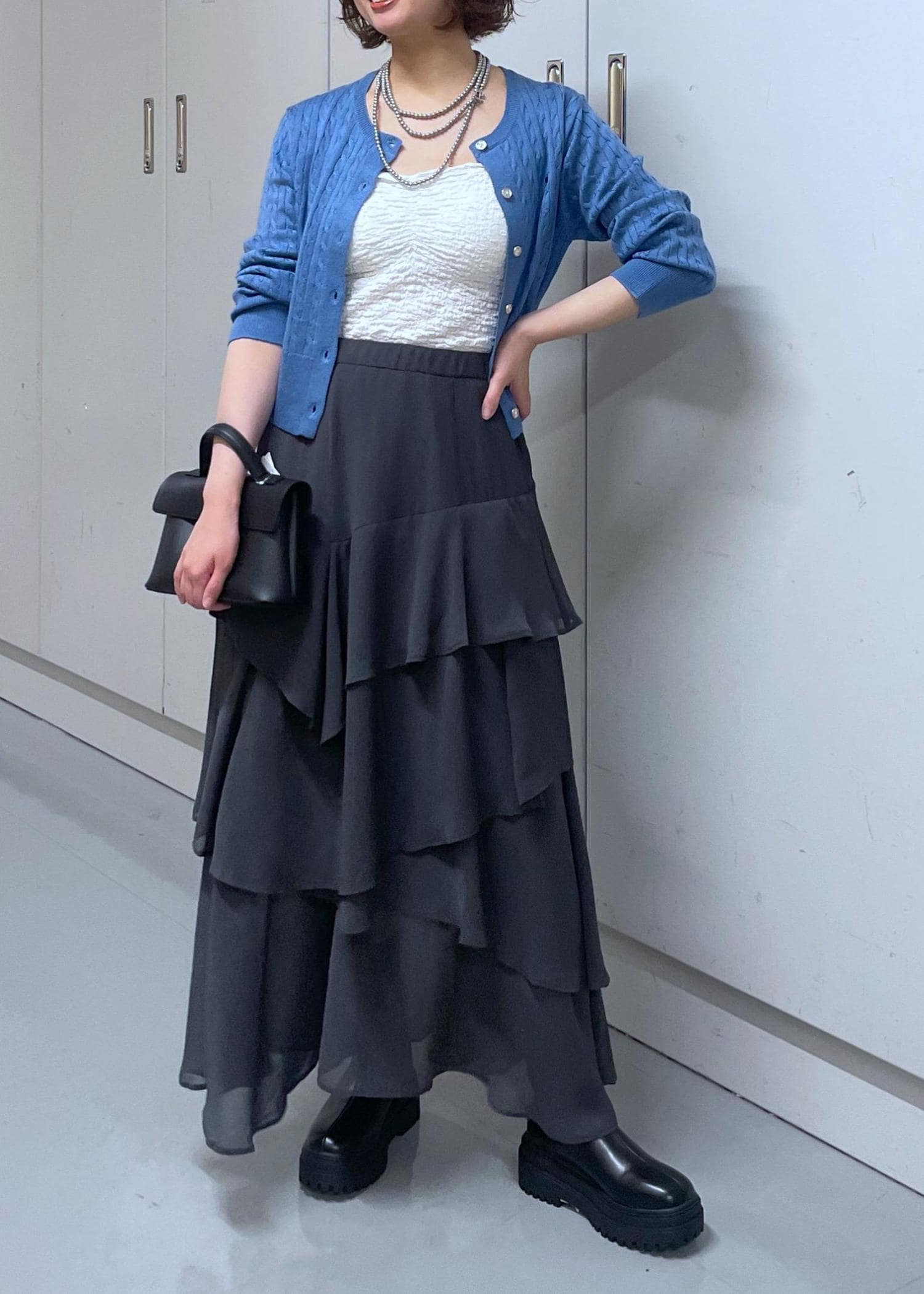 ティアードデザインですが落ち感あるお素材なので、ボリューム出過ぎず骨格ストレートの私も着用しやすいです。 -