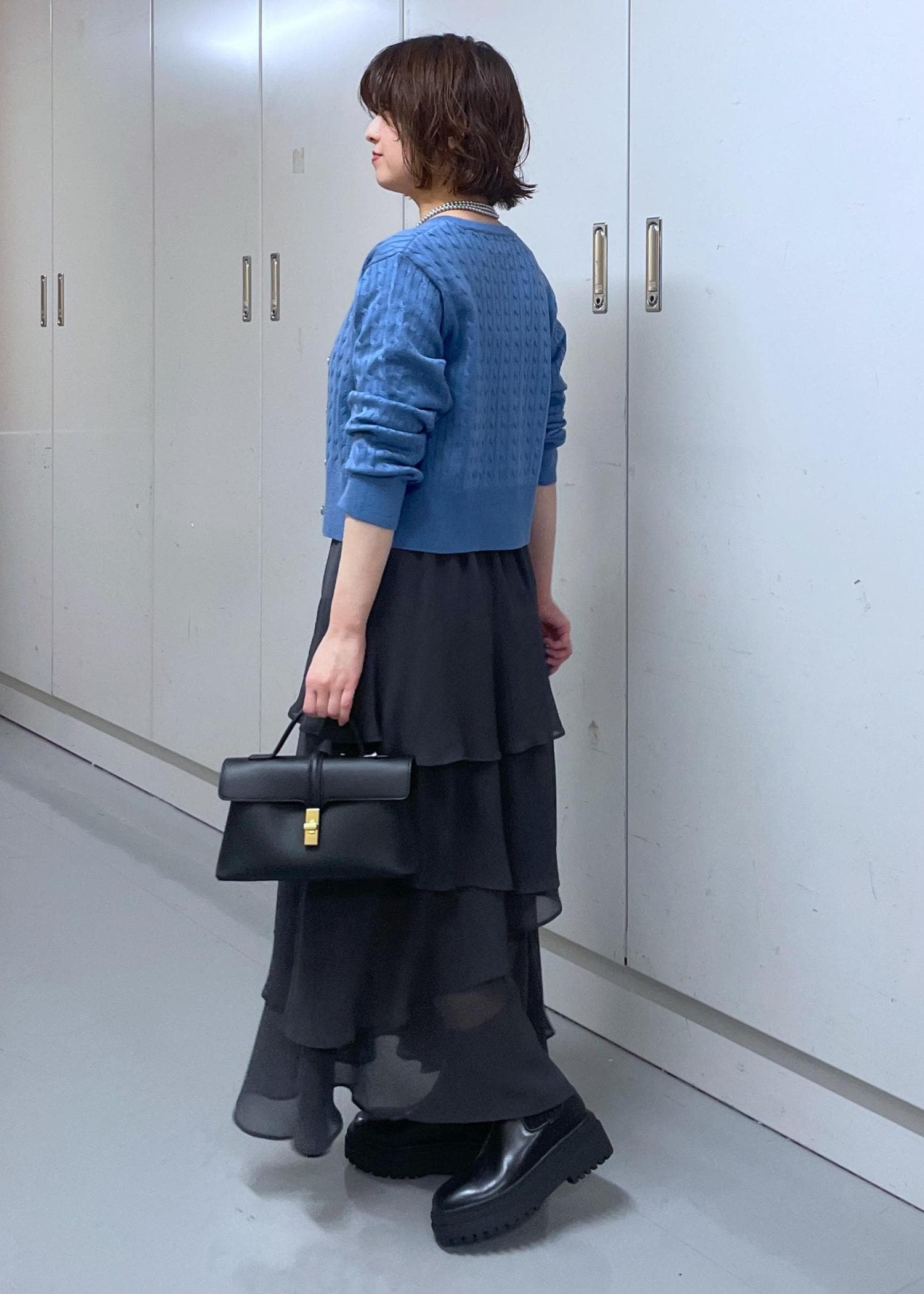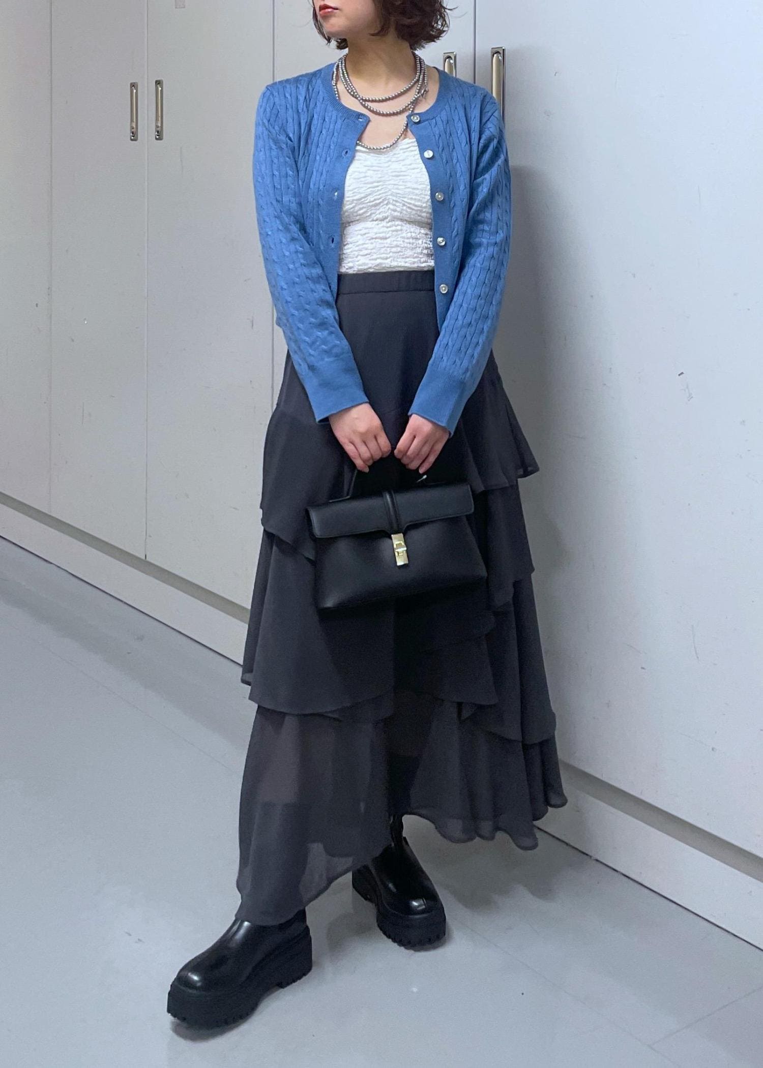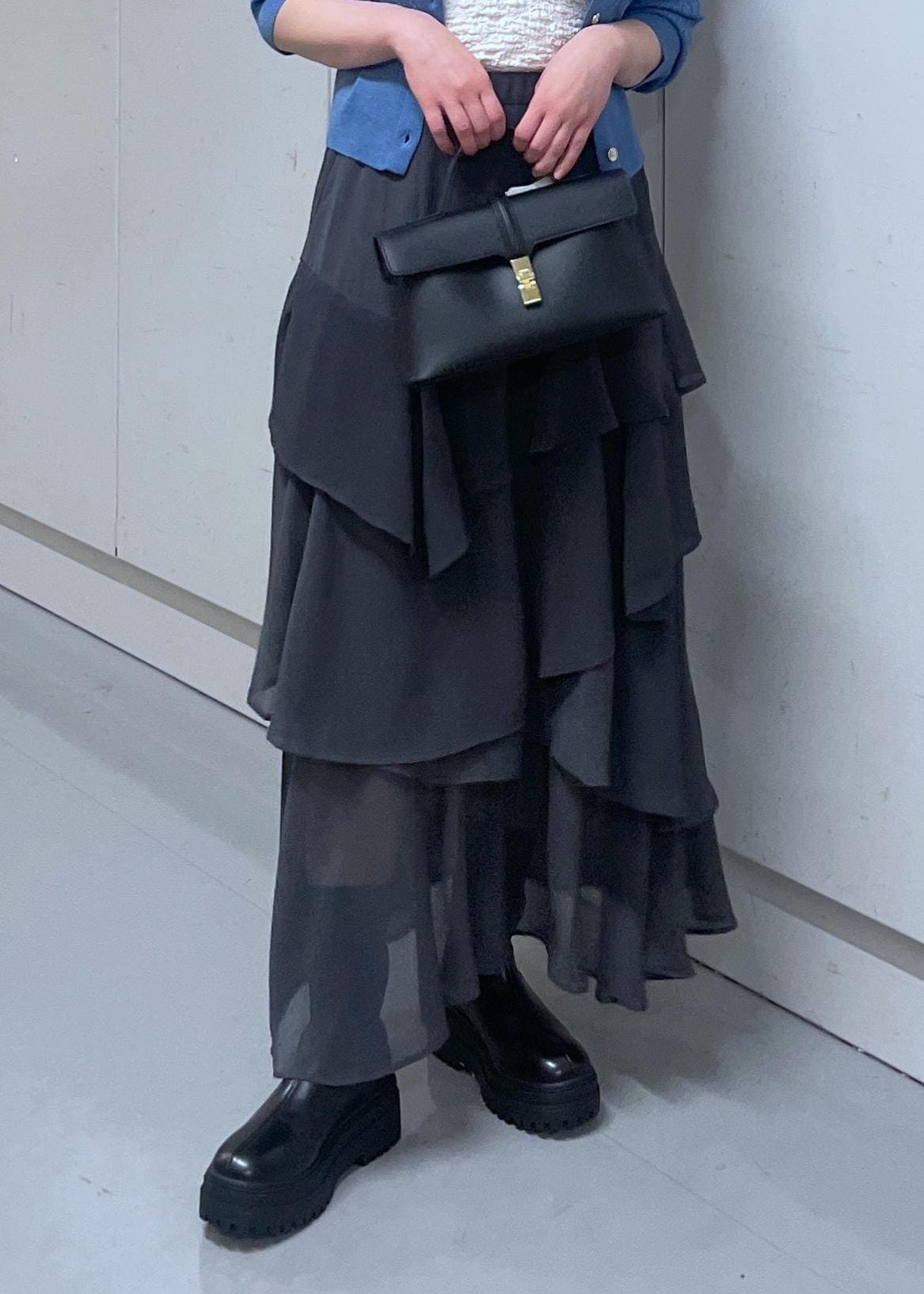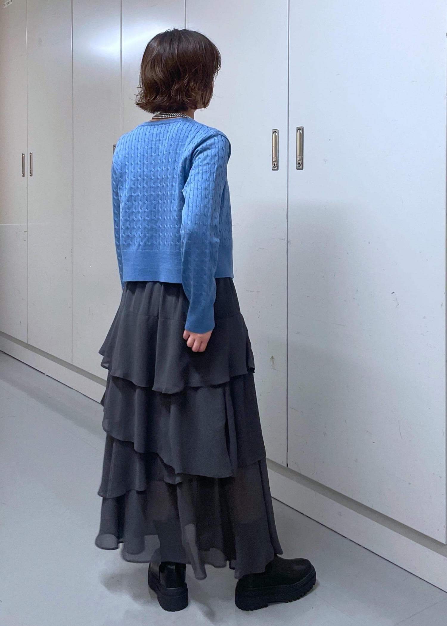 ティアードデザインですが落ち感あるお素材なので、ボリューム出過ぎず骨格ストレートの私も着用しやすいです。 -