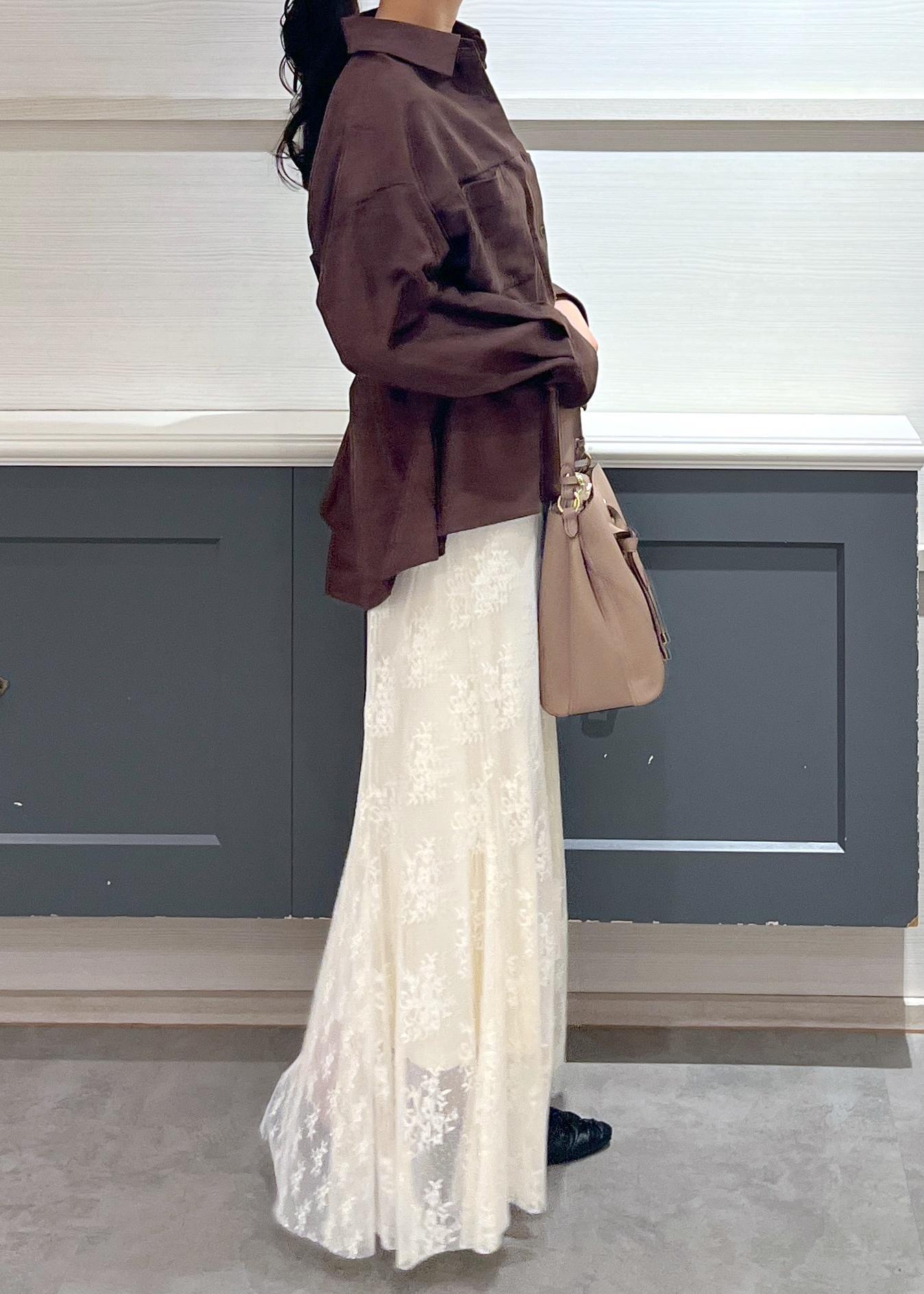 程よいマーメイドシルエットと素材が女性らしい印象にしてくれます◎ -