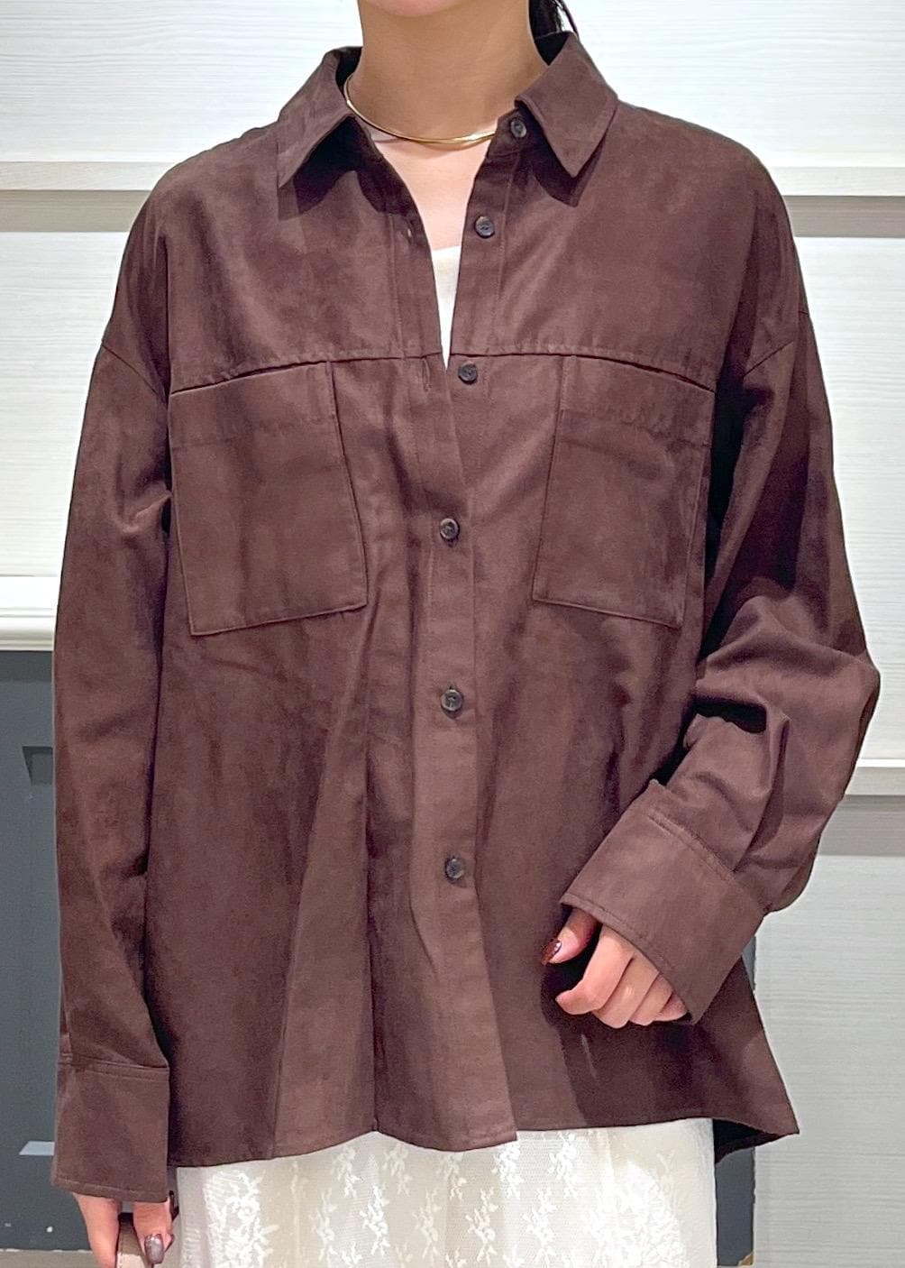 VISスエードライクロングスリーブシャツダークブラウン系 / F¥4,843レビュー156cmでヒップが隠れる丈感でした。