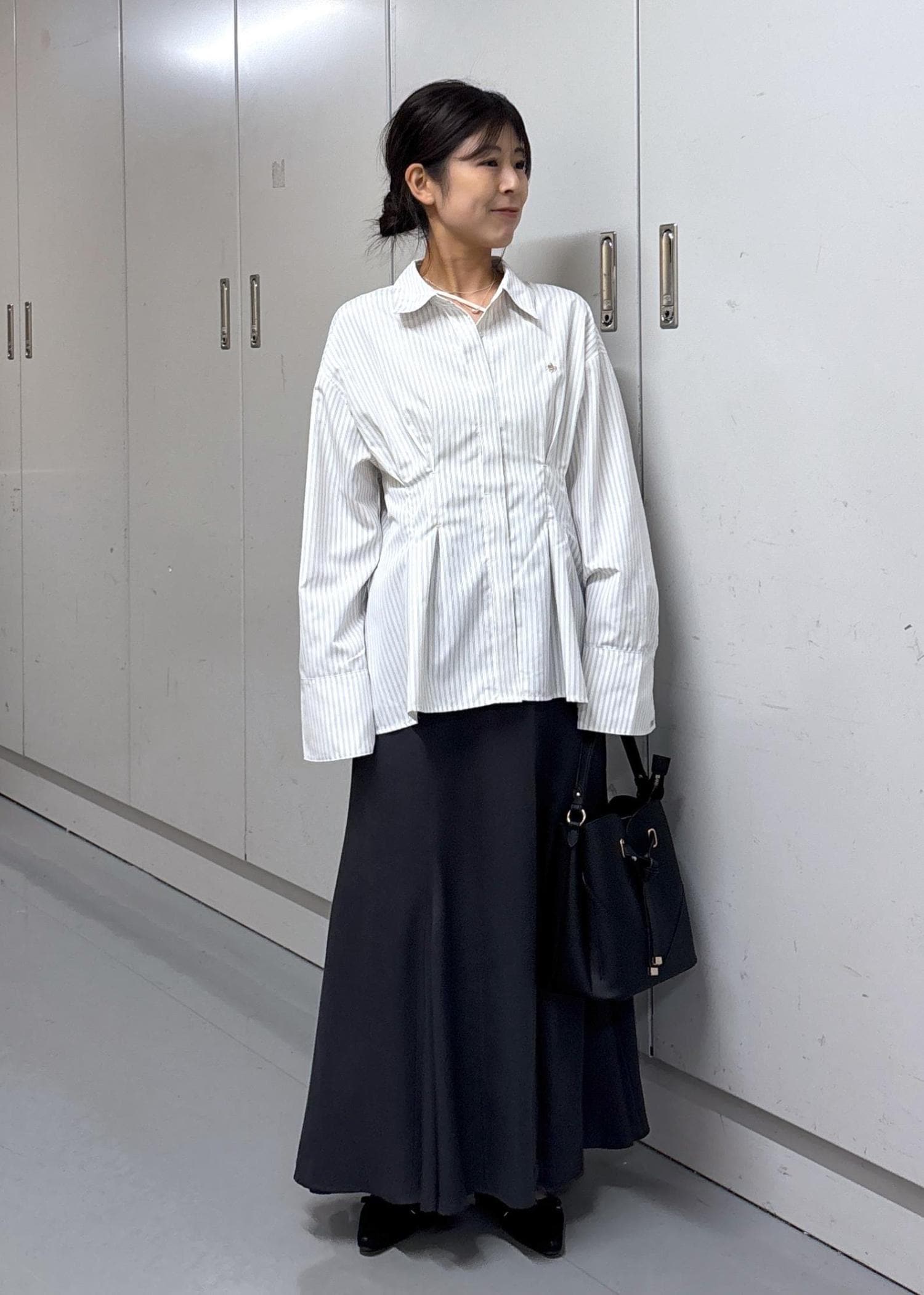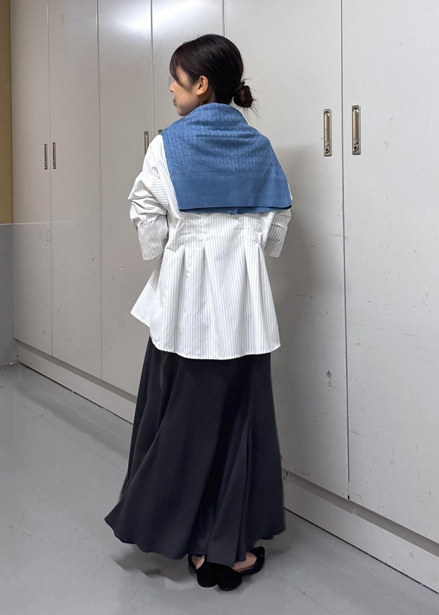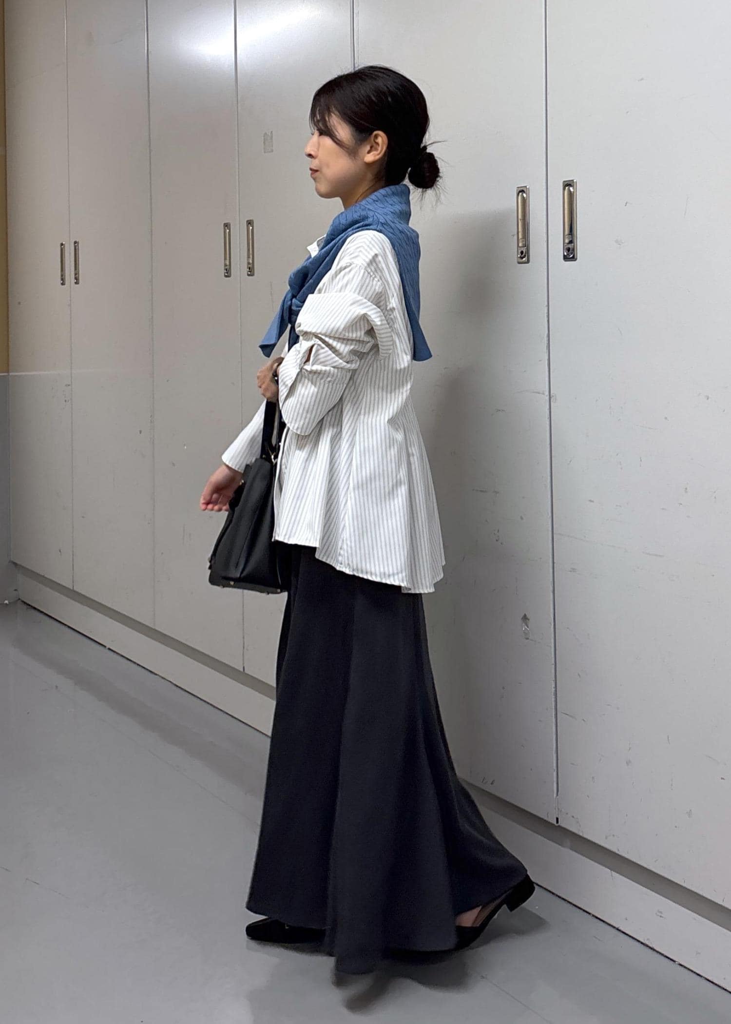 VISフィブリルサテン&レースアソートマーメイドスカートチャコール / F¥5,382レビュー156cm/F着用。足首が隠れる長さでウエストは少しゆとりがありました!とろみのある素材でドレープが綺麗です‼︎軽めな生地ですが透け感はなし。着心地も軽くて履きやすかったです♪