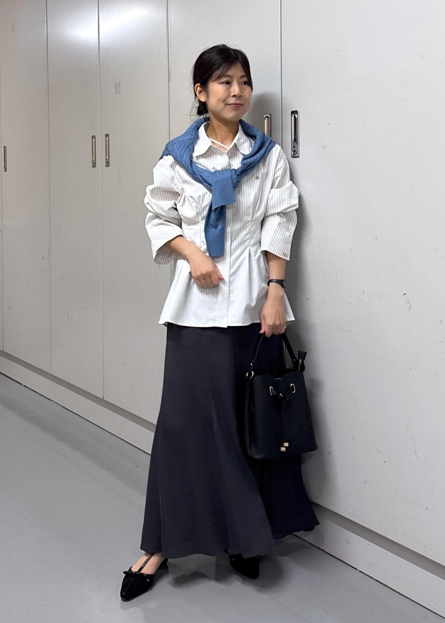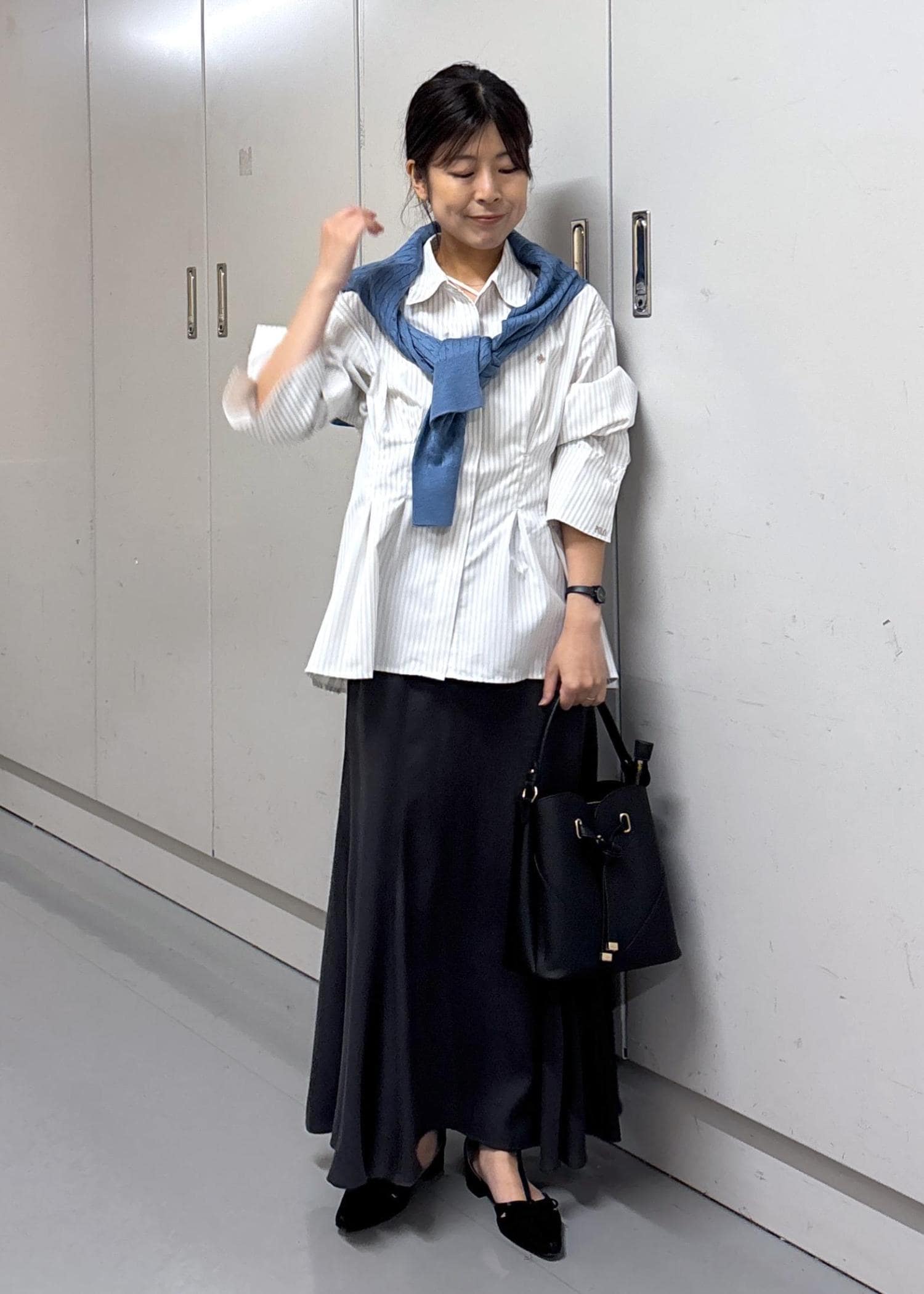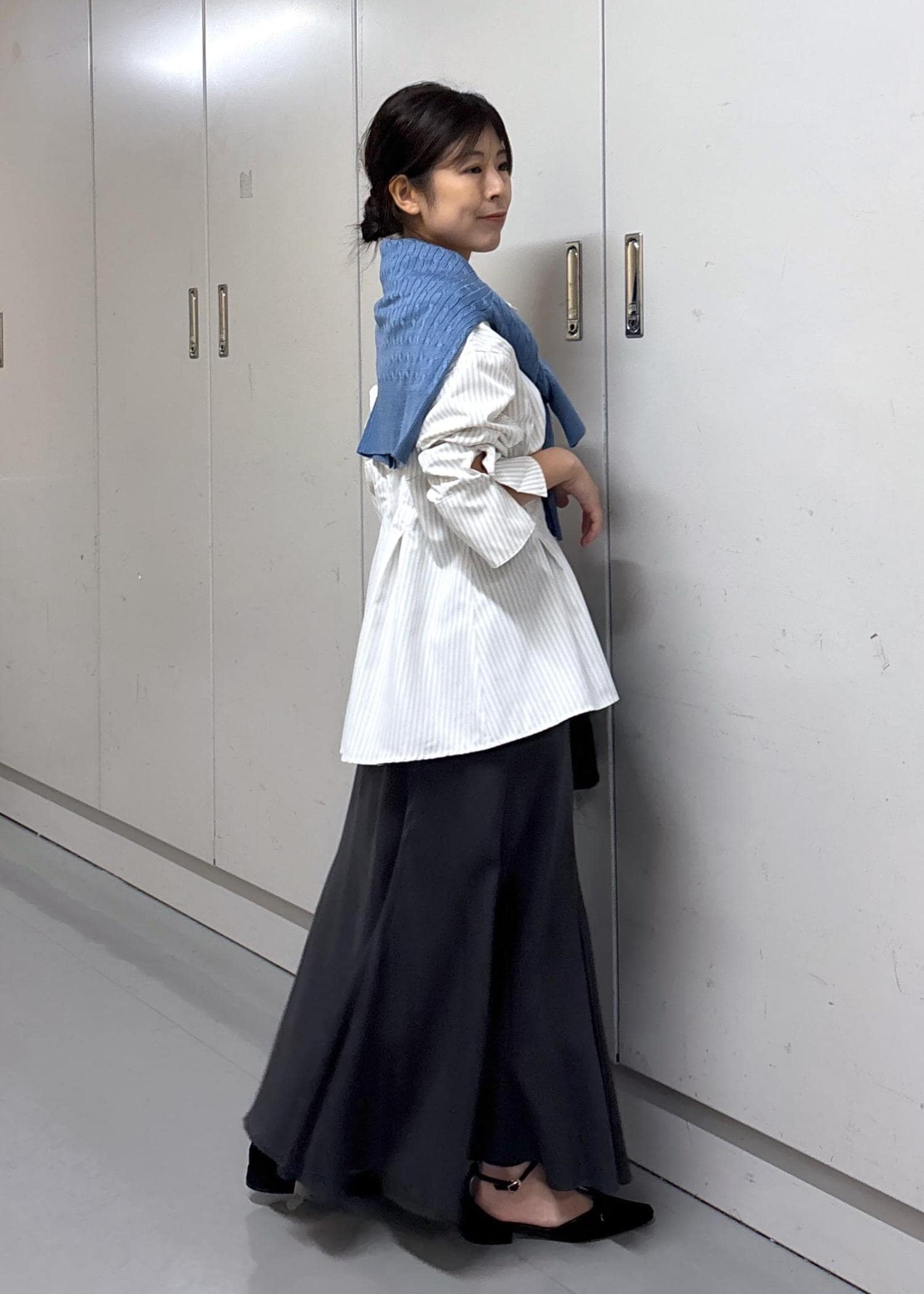 VISフィブリルサテン&レースアソートマーメイドスカートチャコール / F¥5,382レビュー156cm/F着用。足首が隠れる長さでウエストは少しゆとりがありました!とろみのある素材でドレープが綺麗です‼︎軽めな生地ですが透け感はなし。着心地も軽くて履きやすかったです♪