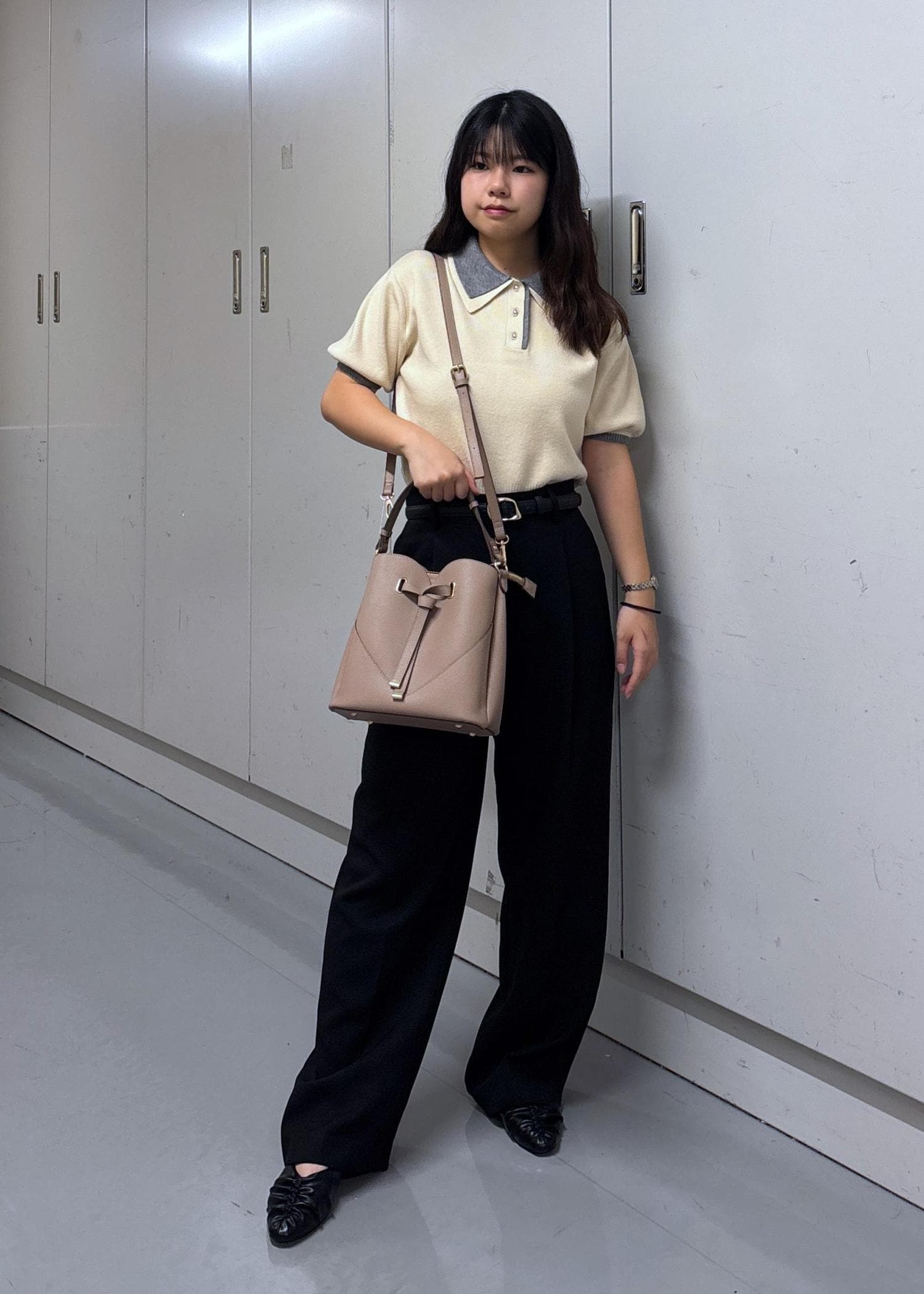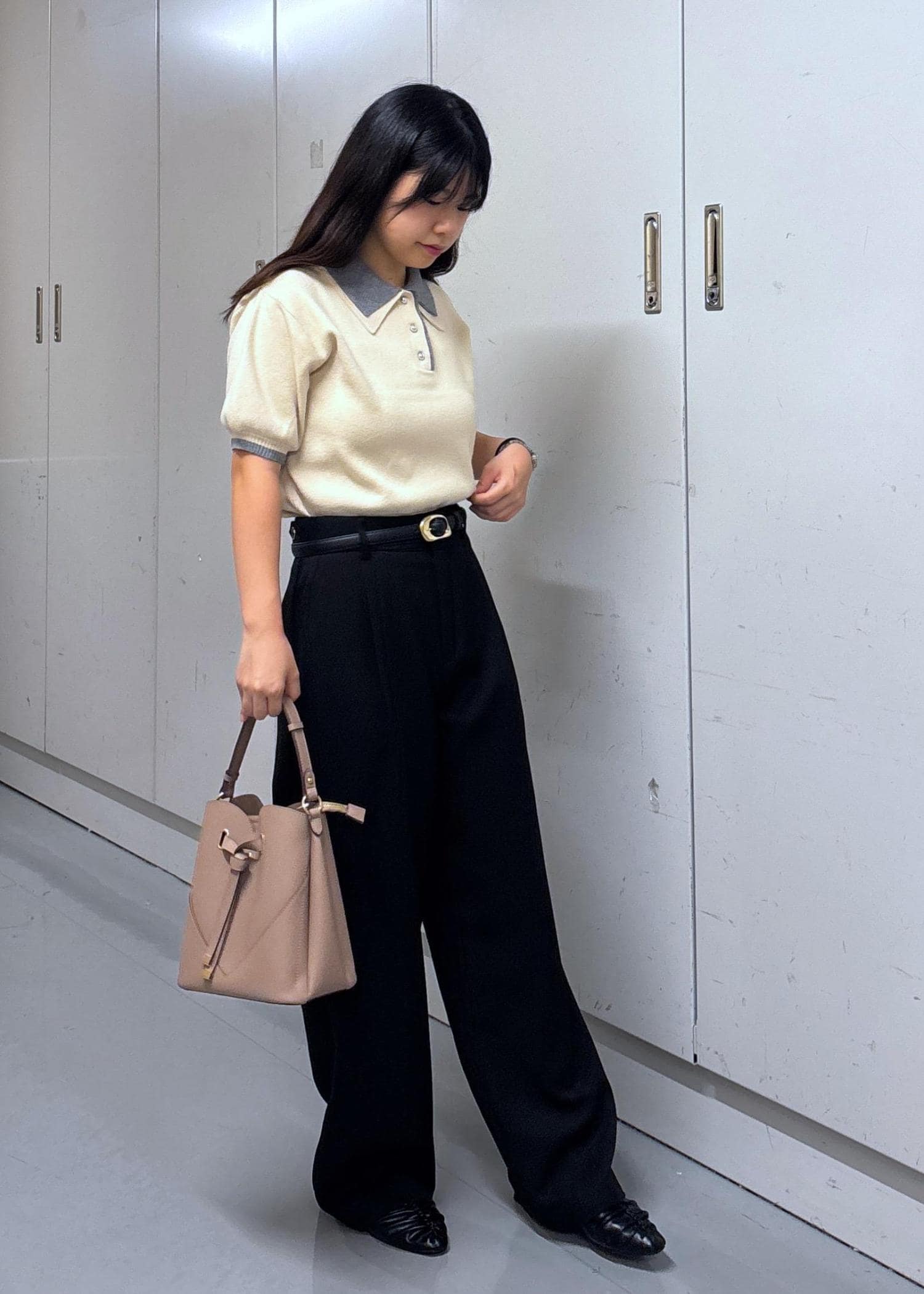 ダブルカラーポロトップスコーデ