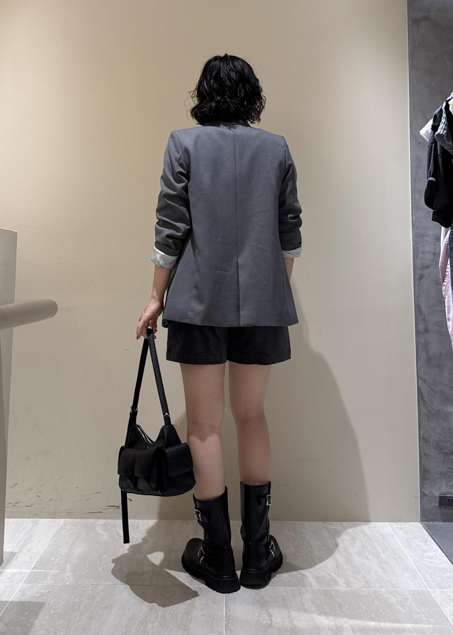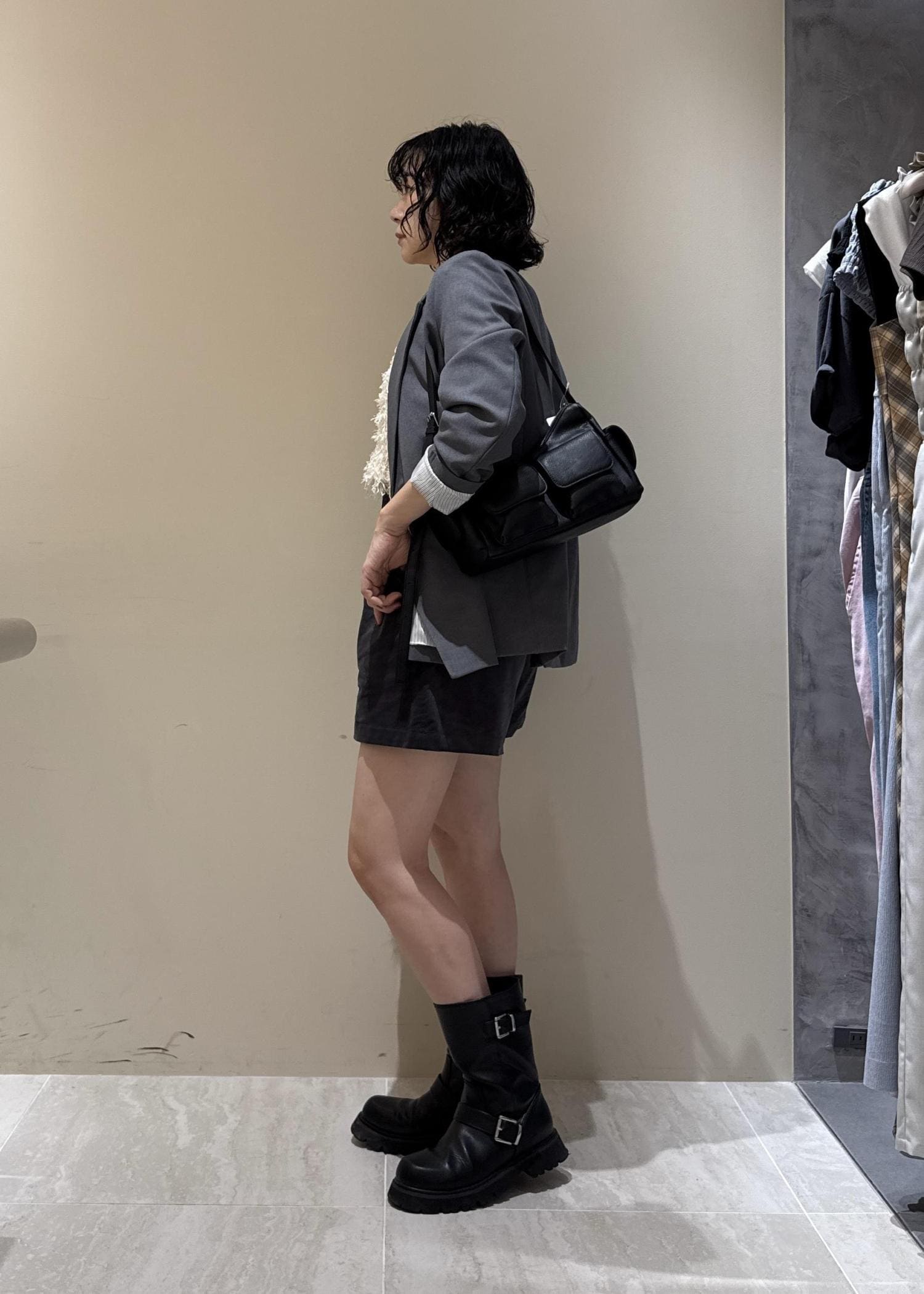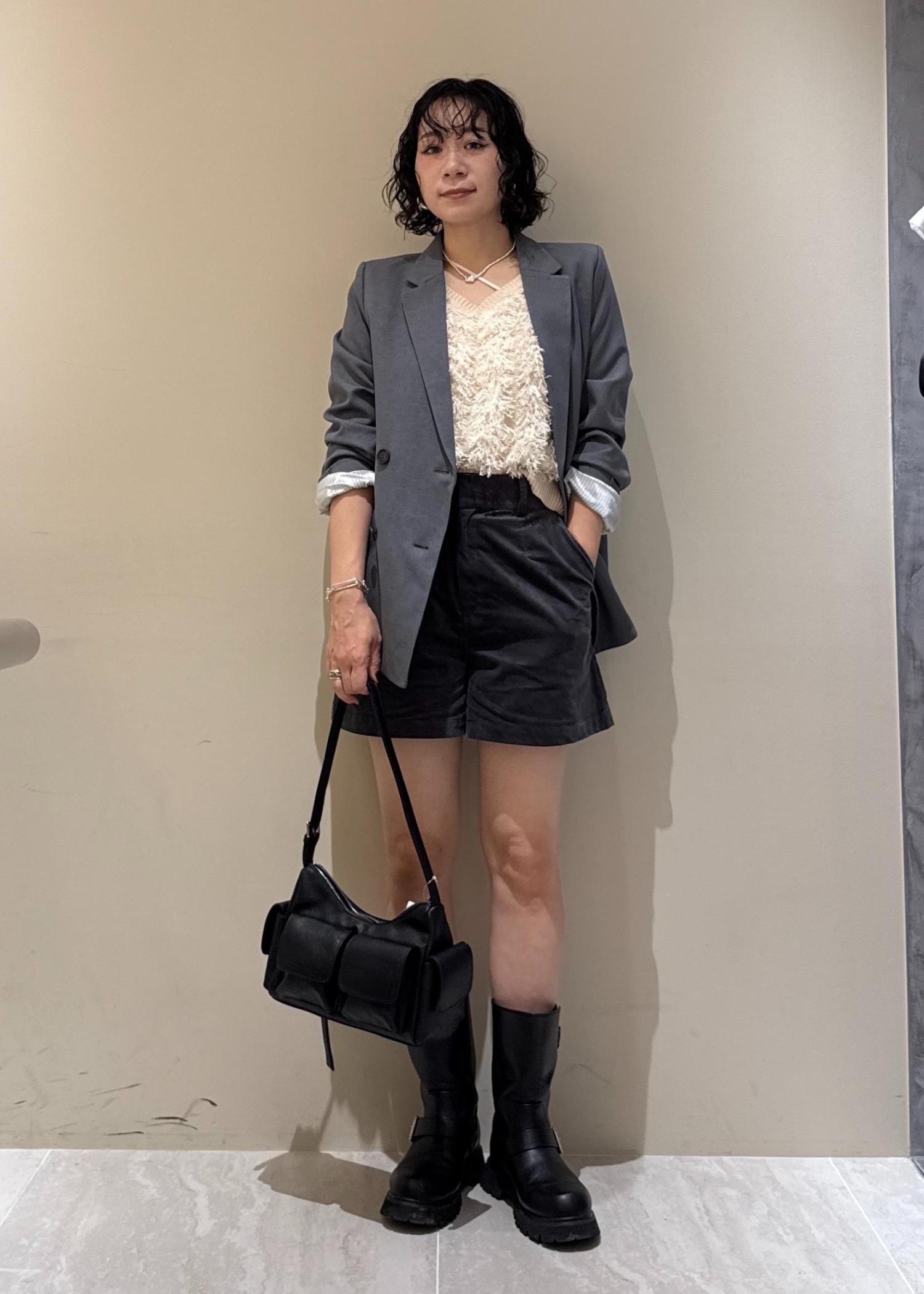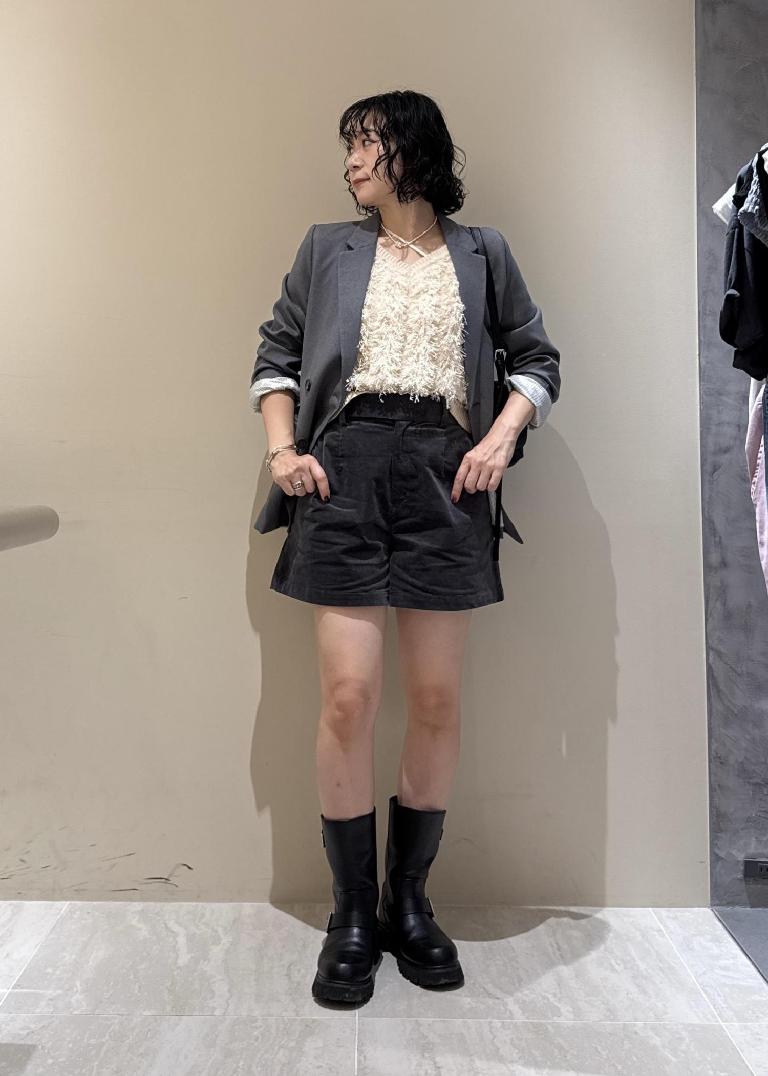ジャケットを主役に、ショートパンツ×ブーツの秋コーデ♪