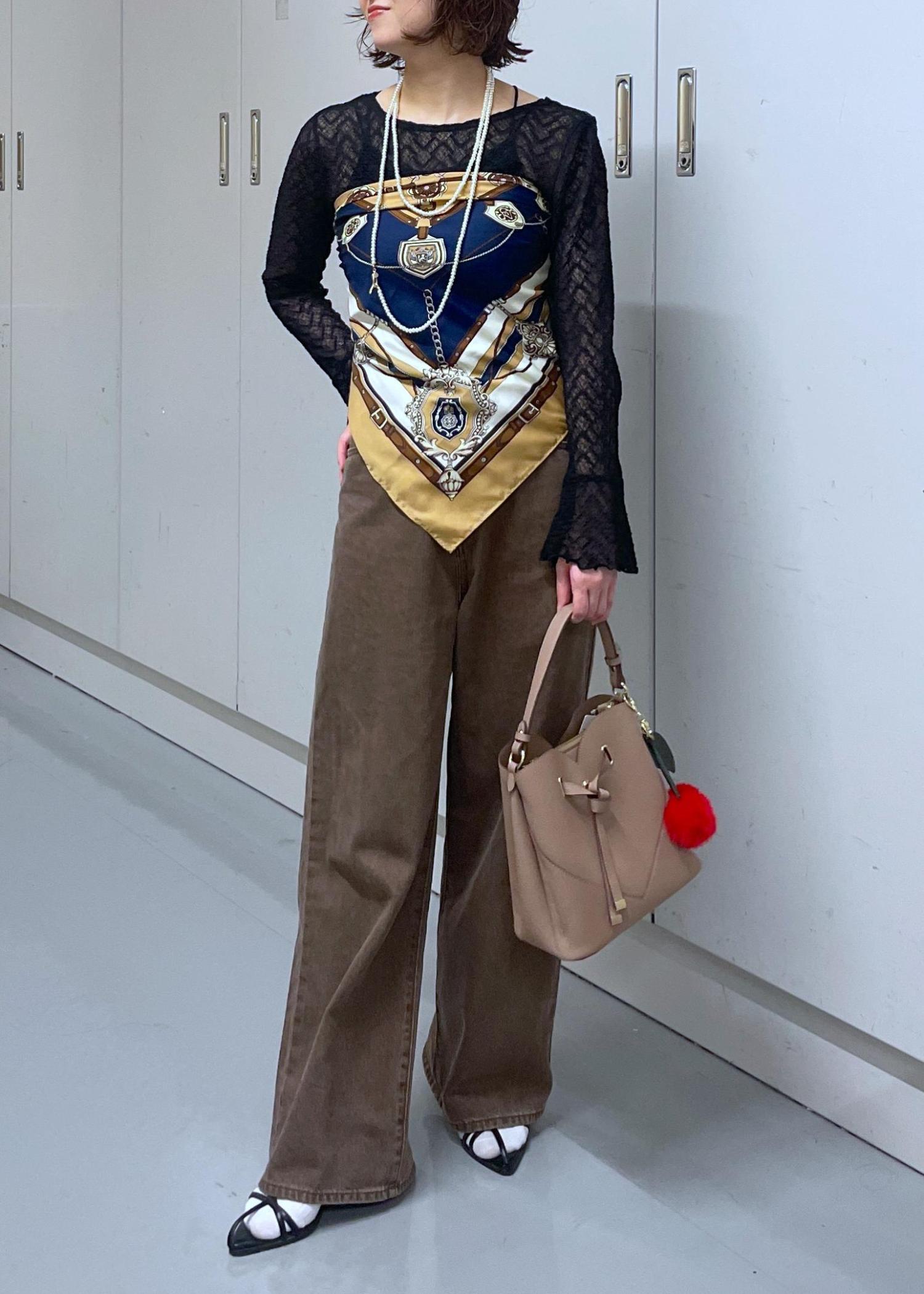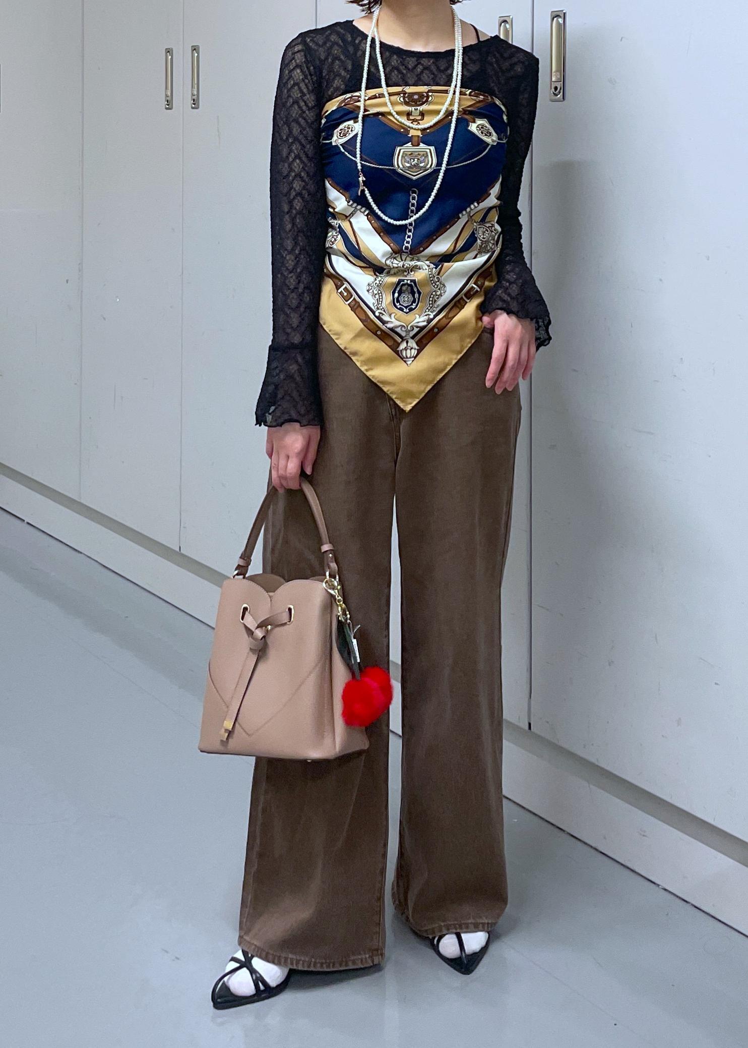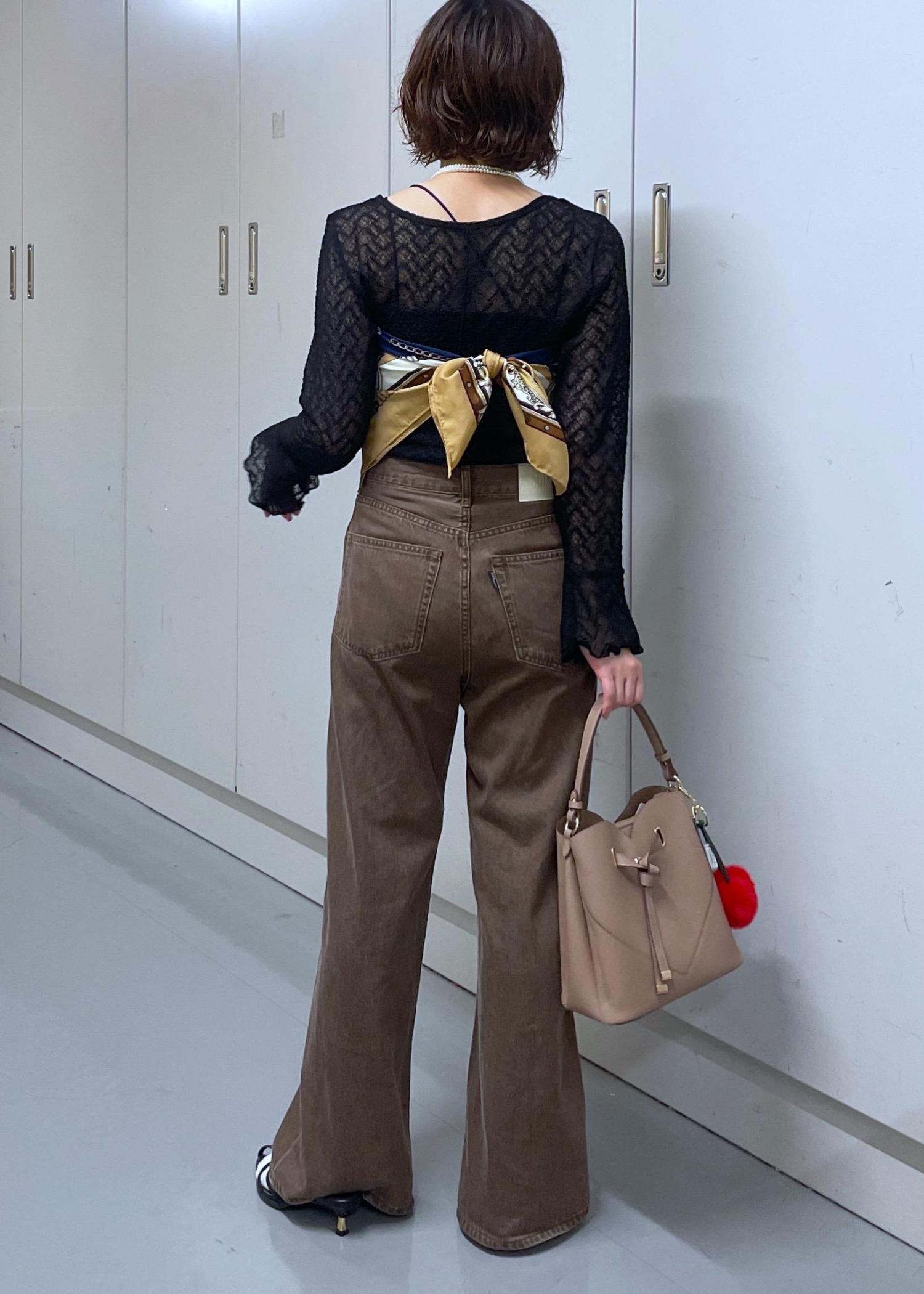 VIS【POLO BCS】VIS別注クロスベルトストレートワイドデニムブラウン / S¥9,900レビュー身長156㎝で、3cmのヒールを履いてギリギリ床につかないくらいの着丈です。