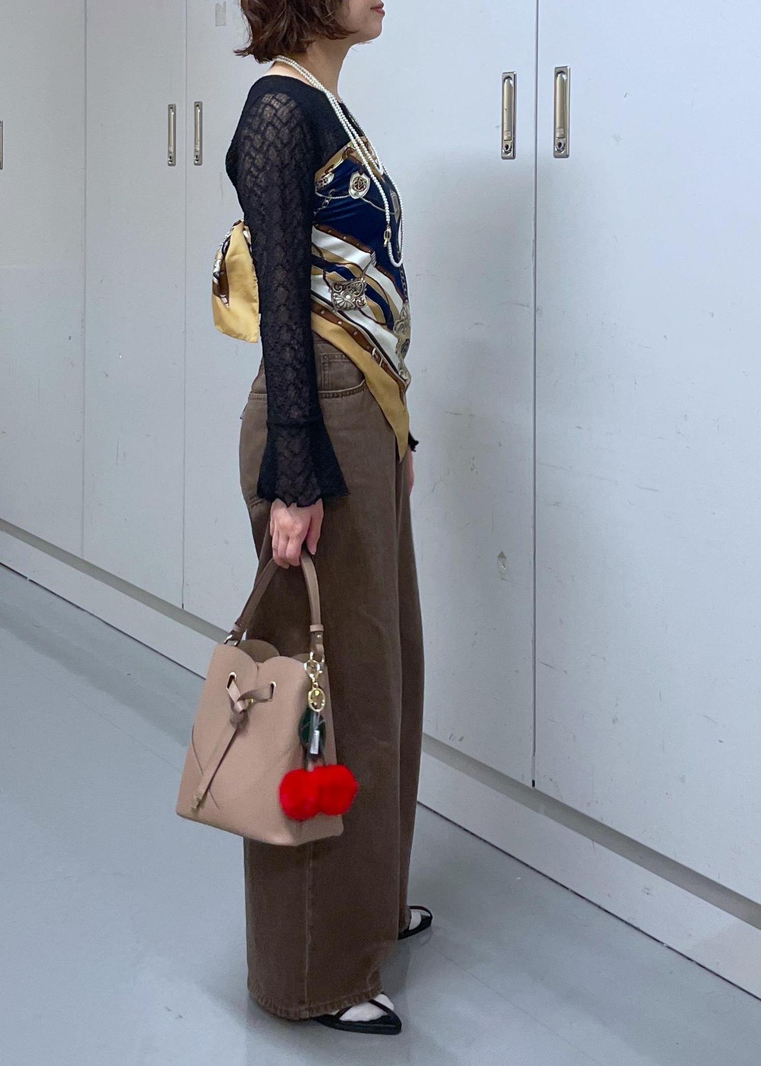 鮮やかなレッドがコーディネートのワンポイントになります。
