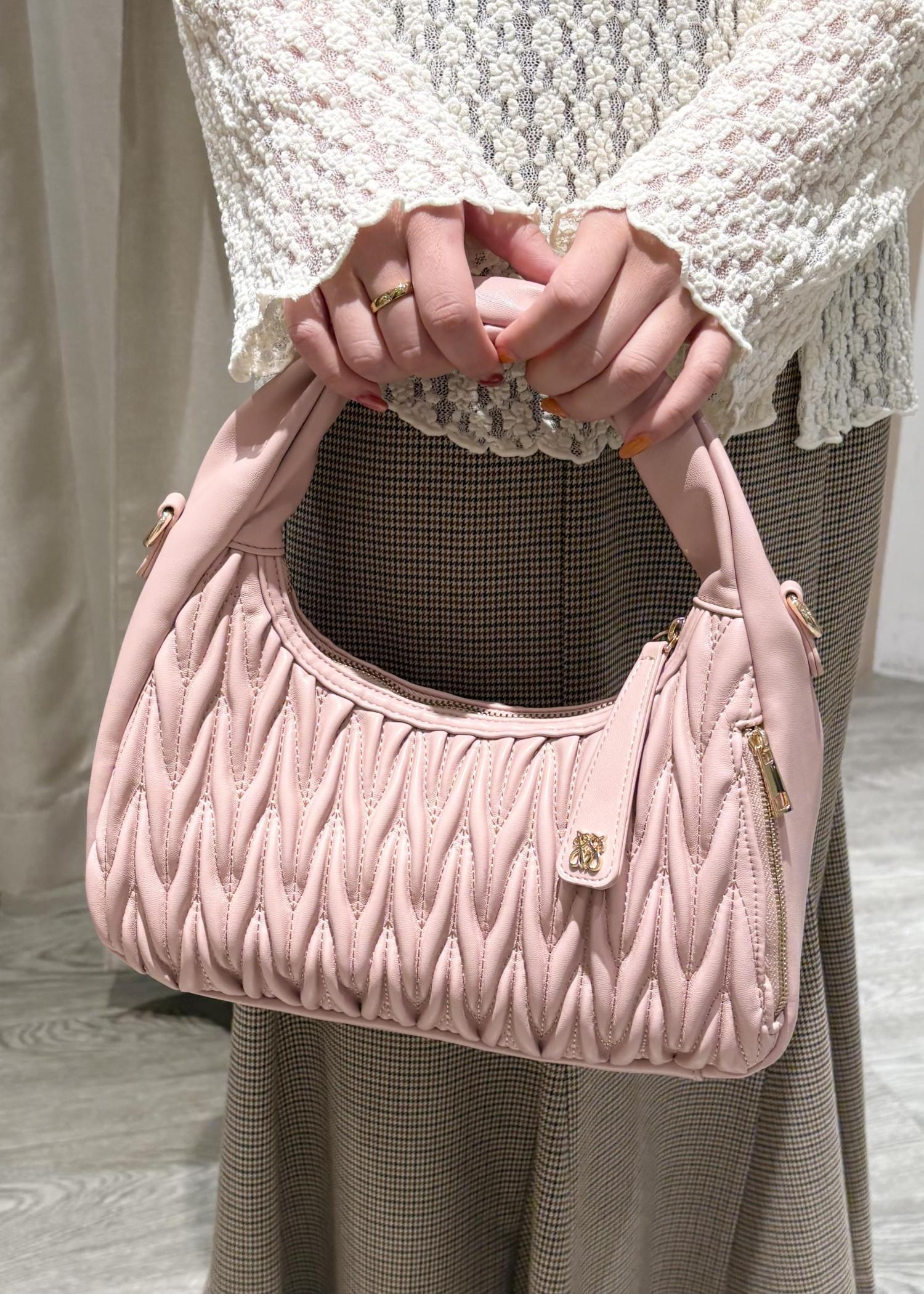 VIS【2WAY】ねじりハンドルキルティングバッグピンク系 / F¥7,909レビューショルダーが付いており、2wayで使うことができます。