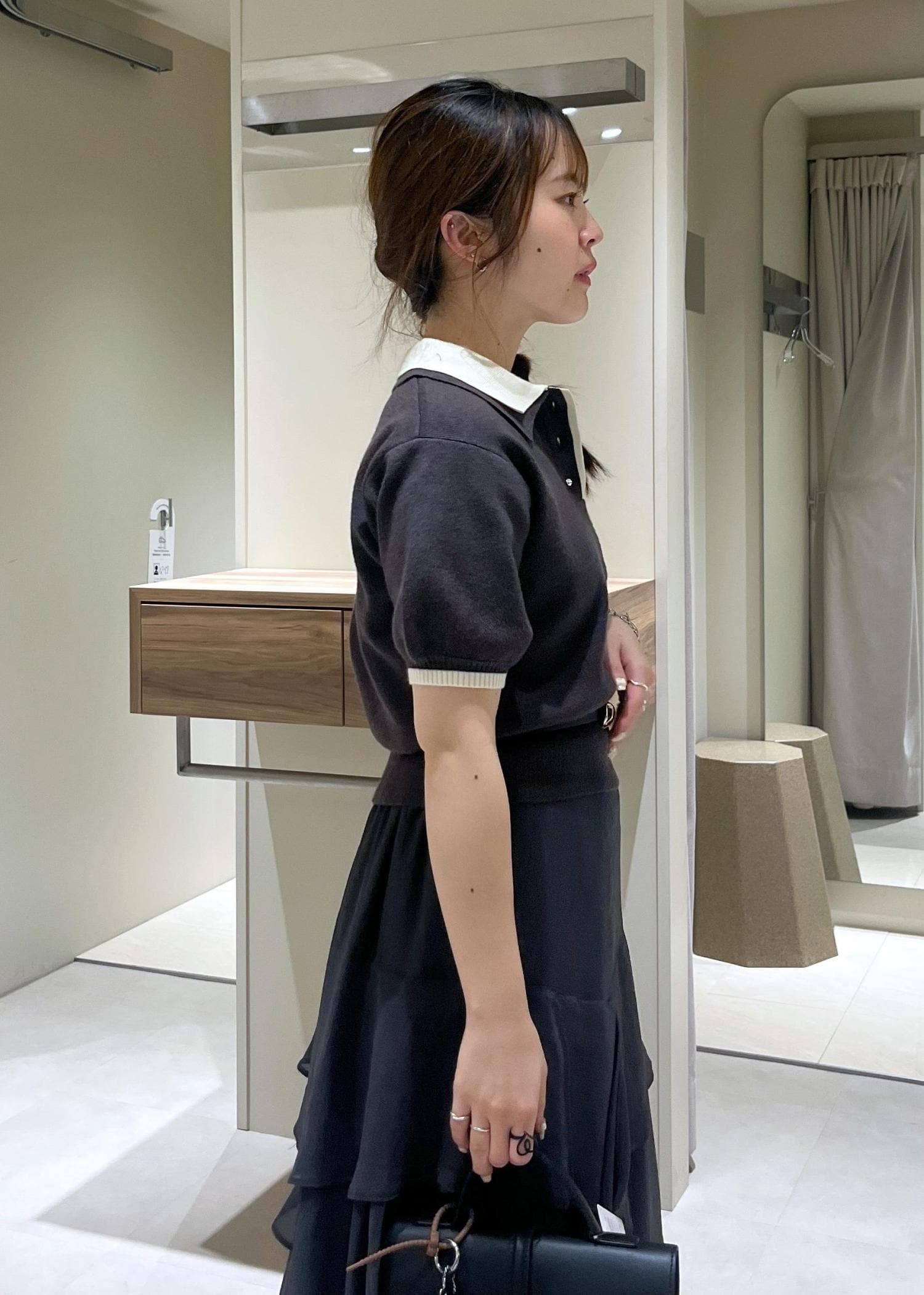 短丈なトップスの際はウエストにベルトをつけていただくのをオススメします!☺️