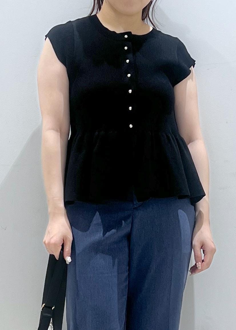 VIS【アンチピリング/洗える】美SMARTショートスリーブペプラムニットブラック / F¥5,489レビュー人気のペプラムカーディガンのフレンチスリーブタイプです!