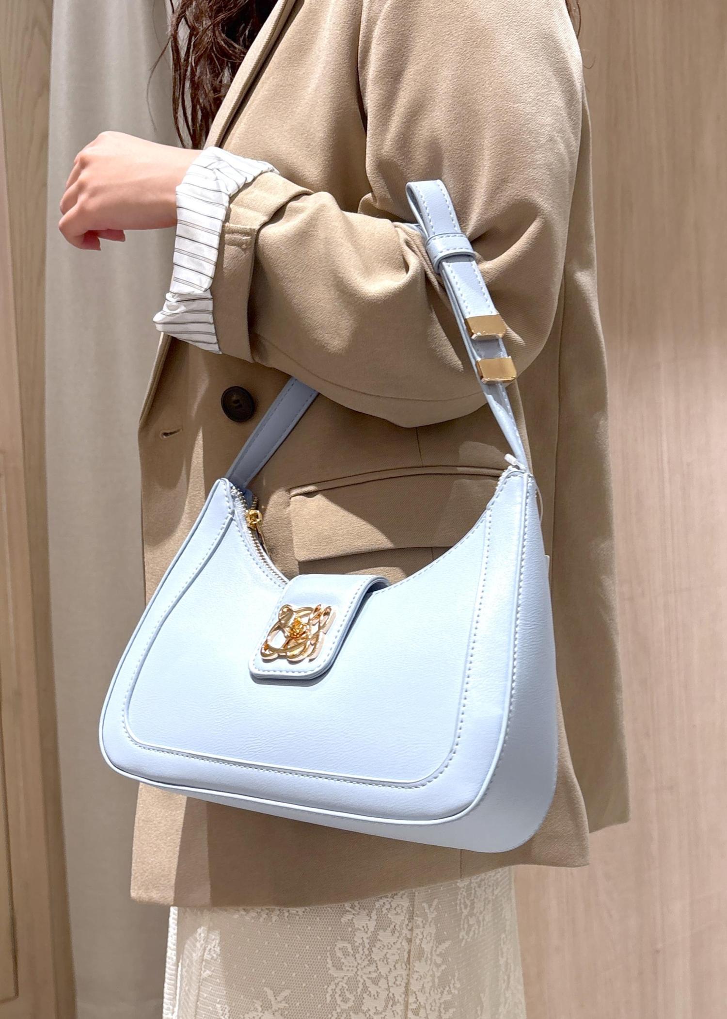 VIS【新色追加】【180℃美人見え】ハンドルリボンワンショルダーバッグサックス / F¥5,929レビュー肩がけができる長さで、ゴールドの金具がコーデのアクセントになります!