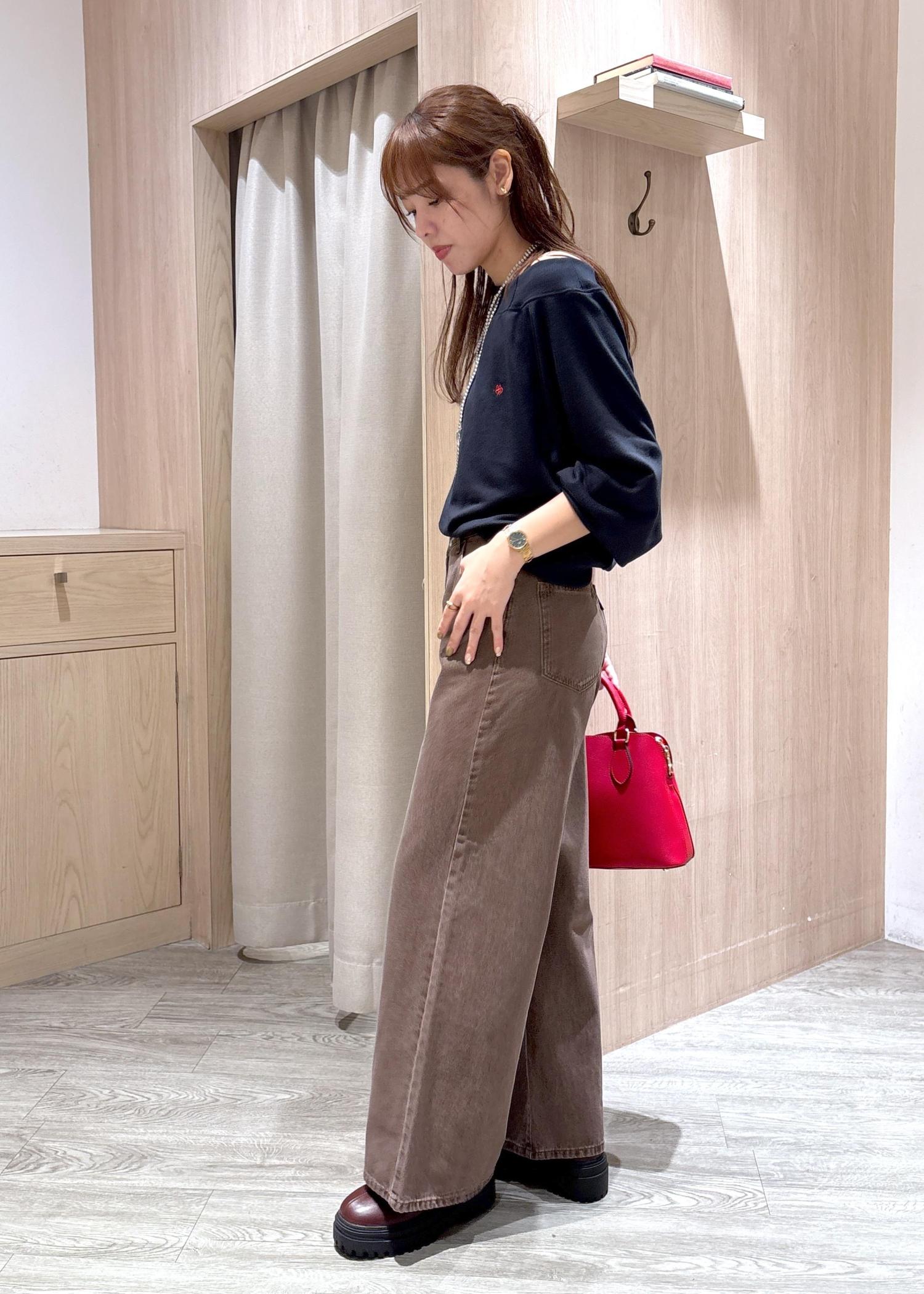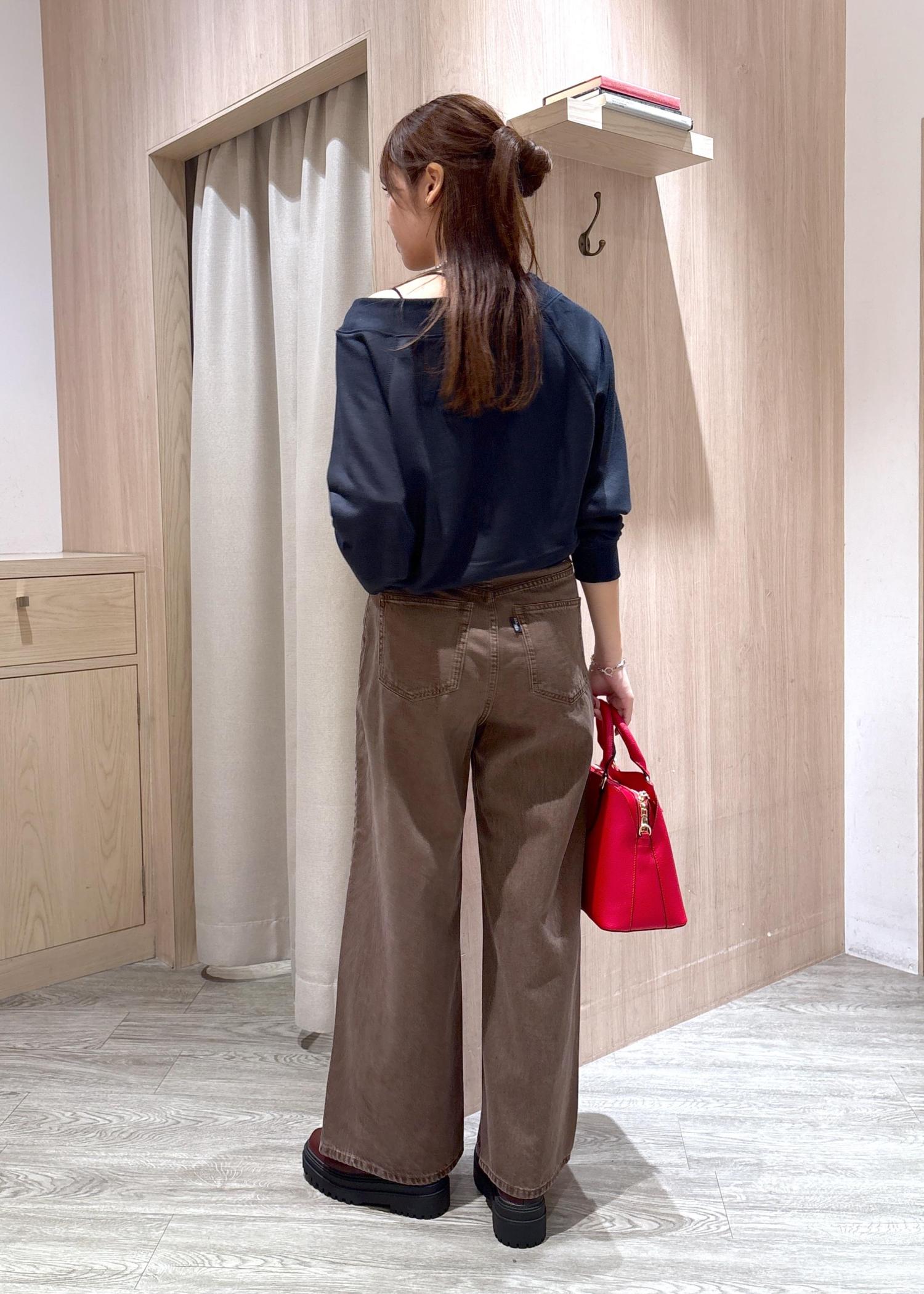 コンパクトな丈感なのでハイウエストのボトムスとの合わせがオススメです。