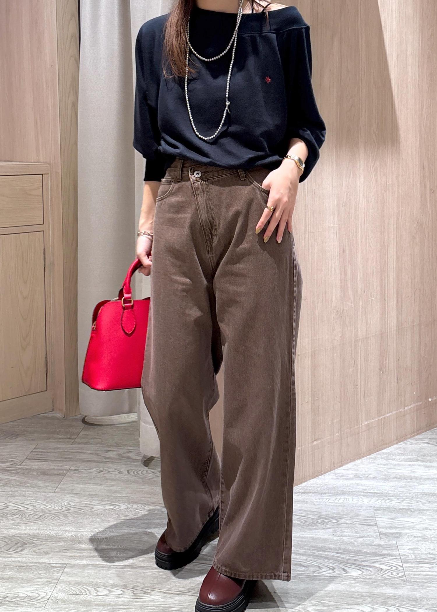 VIS【POLO BCS】VIS別注クロスベルトストレートワイドデニムブラウン / M¥9,900レビュー身長168センチでくるぶしが少し見えるくらいの丈感です。