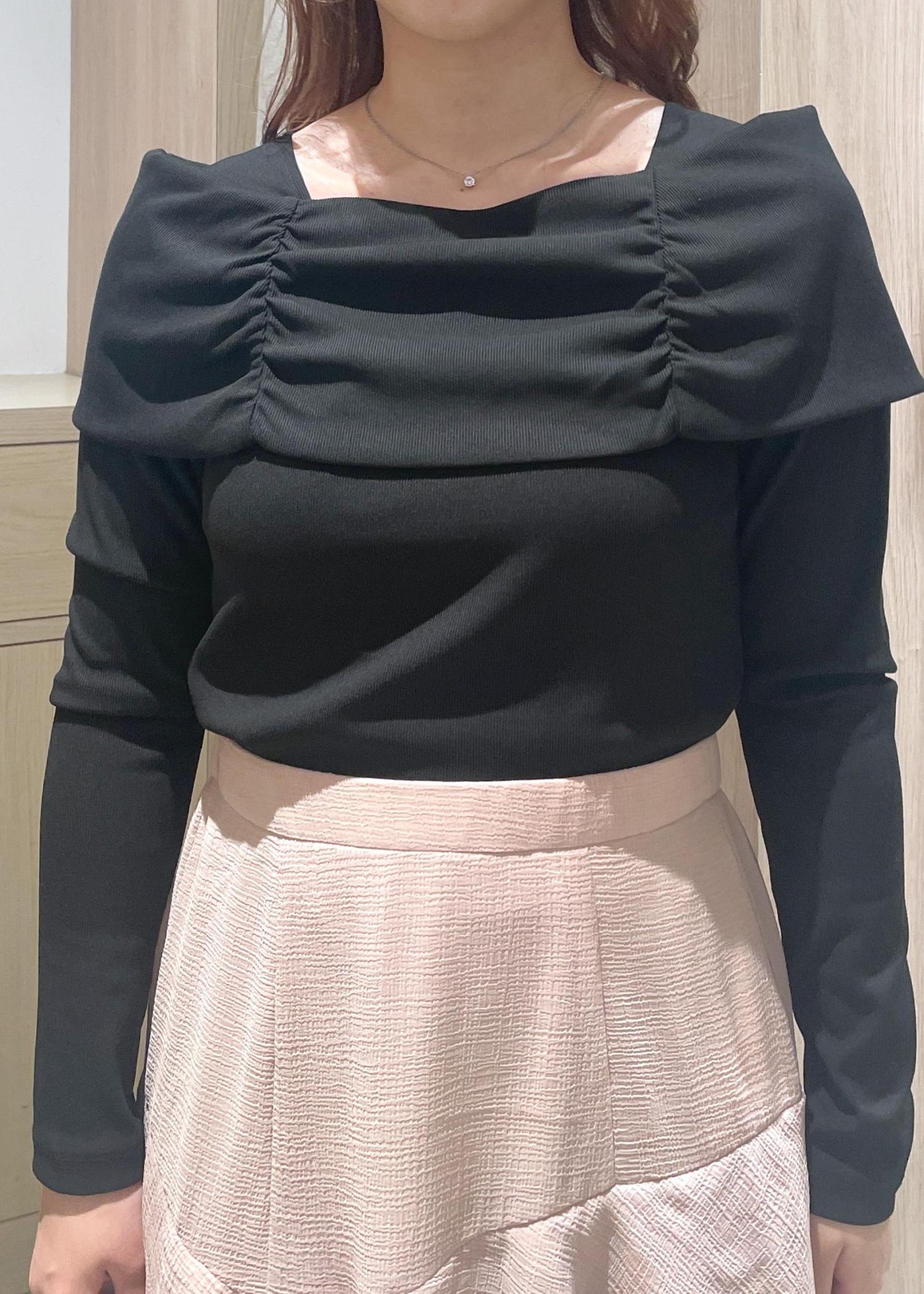 首元は鎖骨が見えるくらいの開いていて、すっきりと見せることができます♪