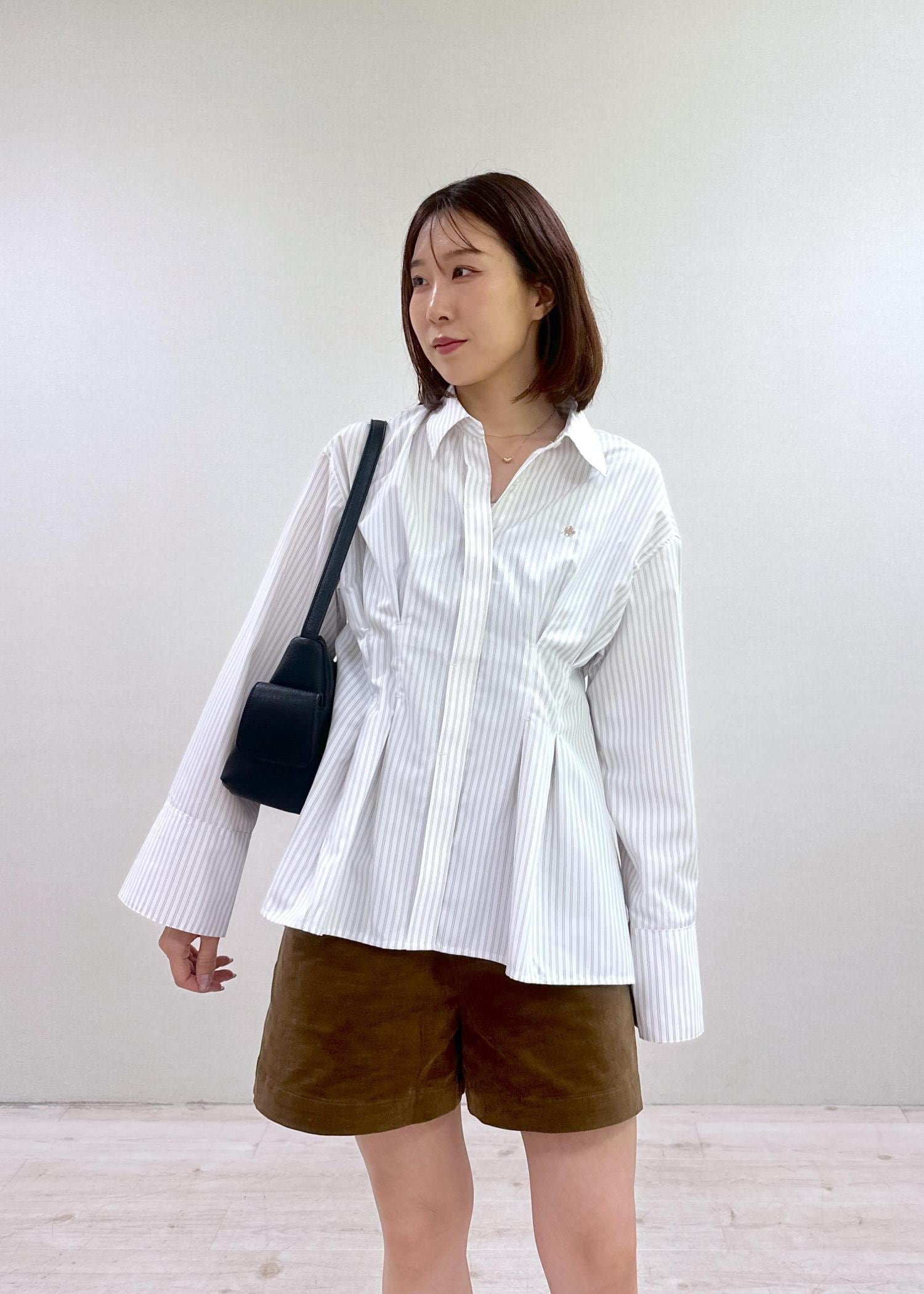 VIS【POLOBCS】VIS別注ウエストタックフレアシャツホワイト系 / F¥6,930レビューウエストにタックが入っているのでスッキリ見え。