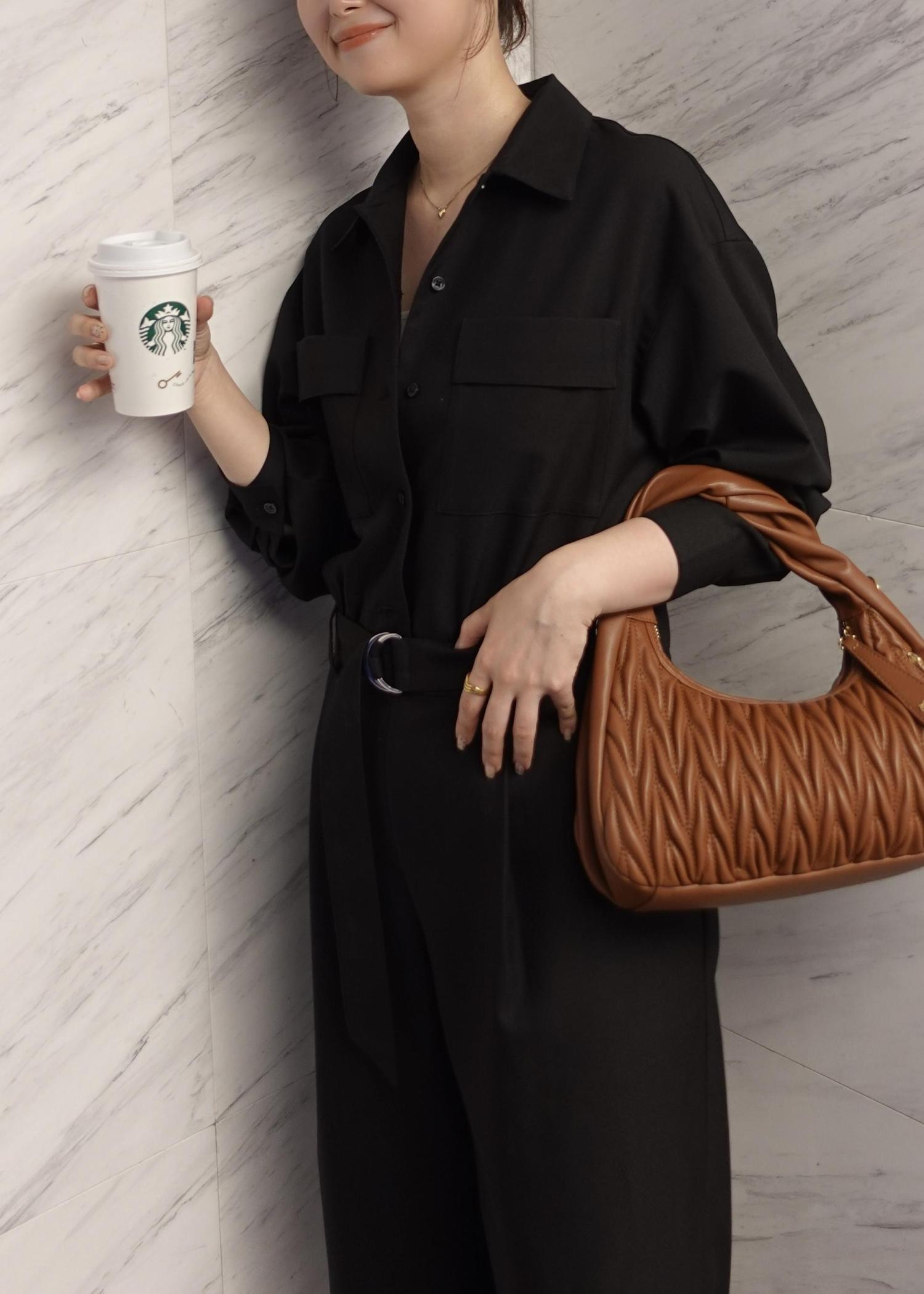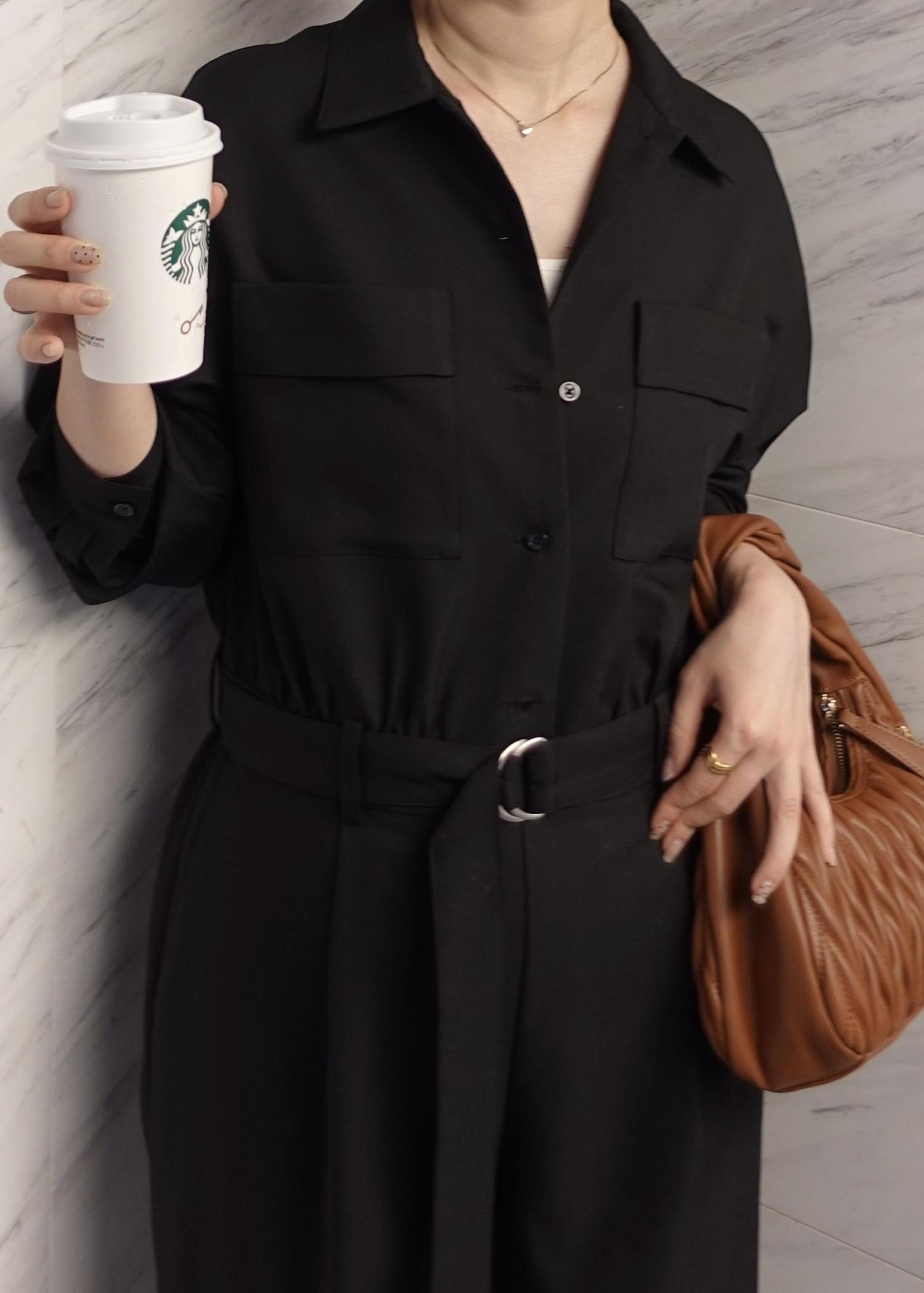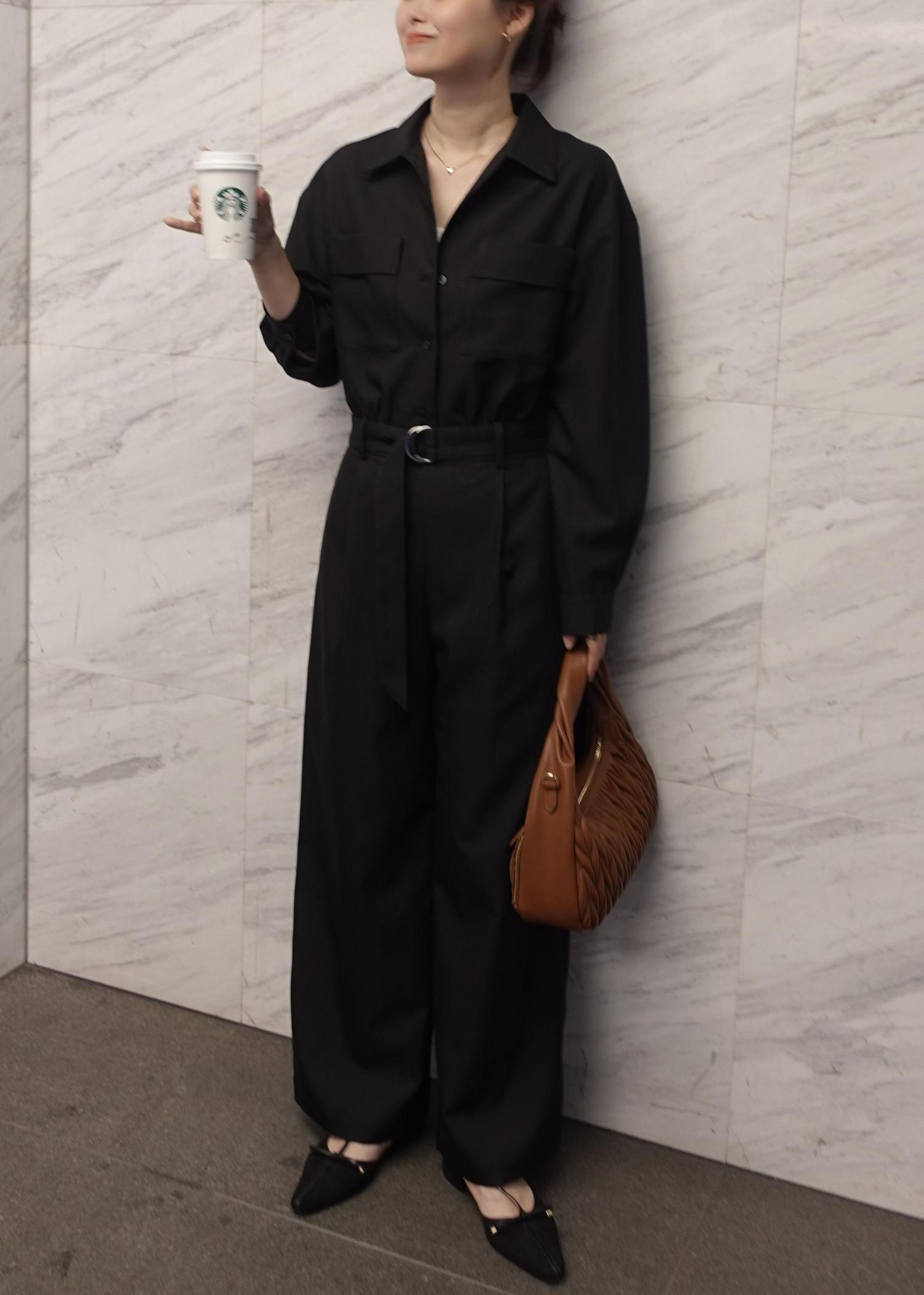 ベルトで腰止めもでき、ジャンプスーツならではのハリ感ある素材と、きちんと感もあるデザインが綺麗めな装いの日にはぴったりです!