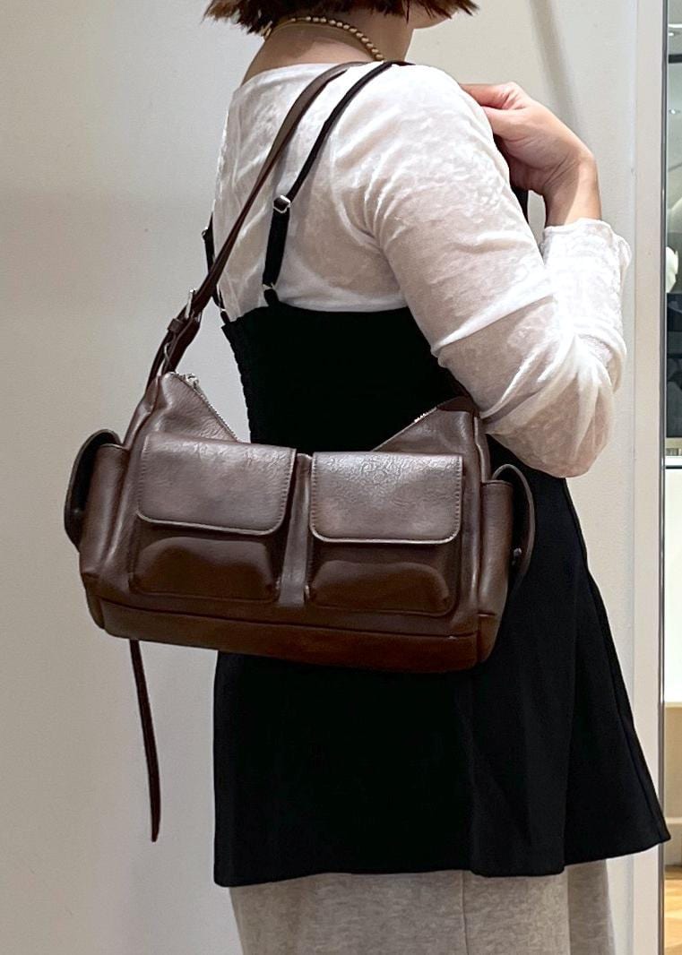 VIS【2WAY】ビンテージ合皮クアトロポケットショルダーバッグブラウン系 / F¥6,919レビューヴィンテージ風な素材感で、おしゃれに決まるバックです。