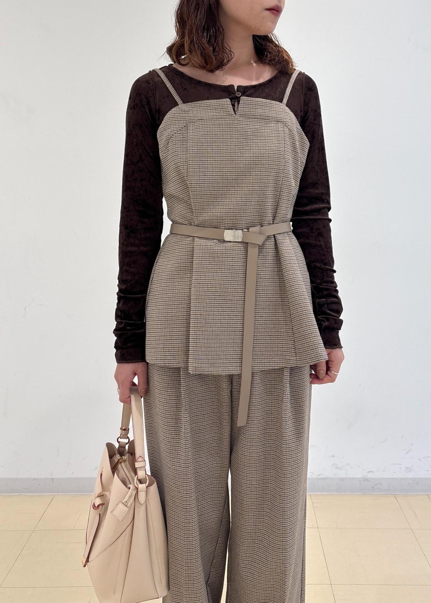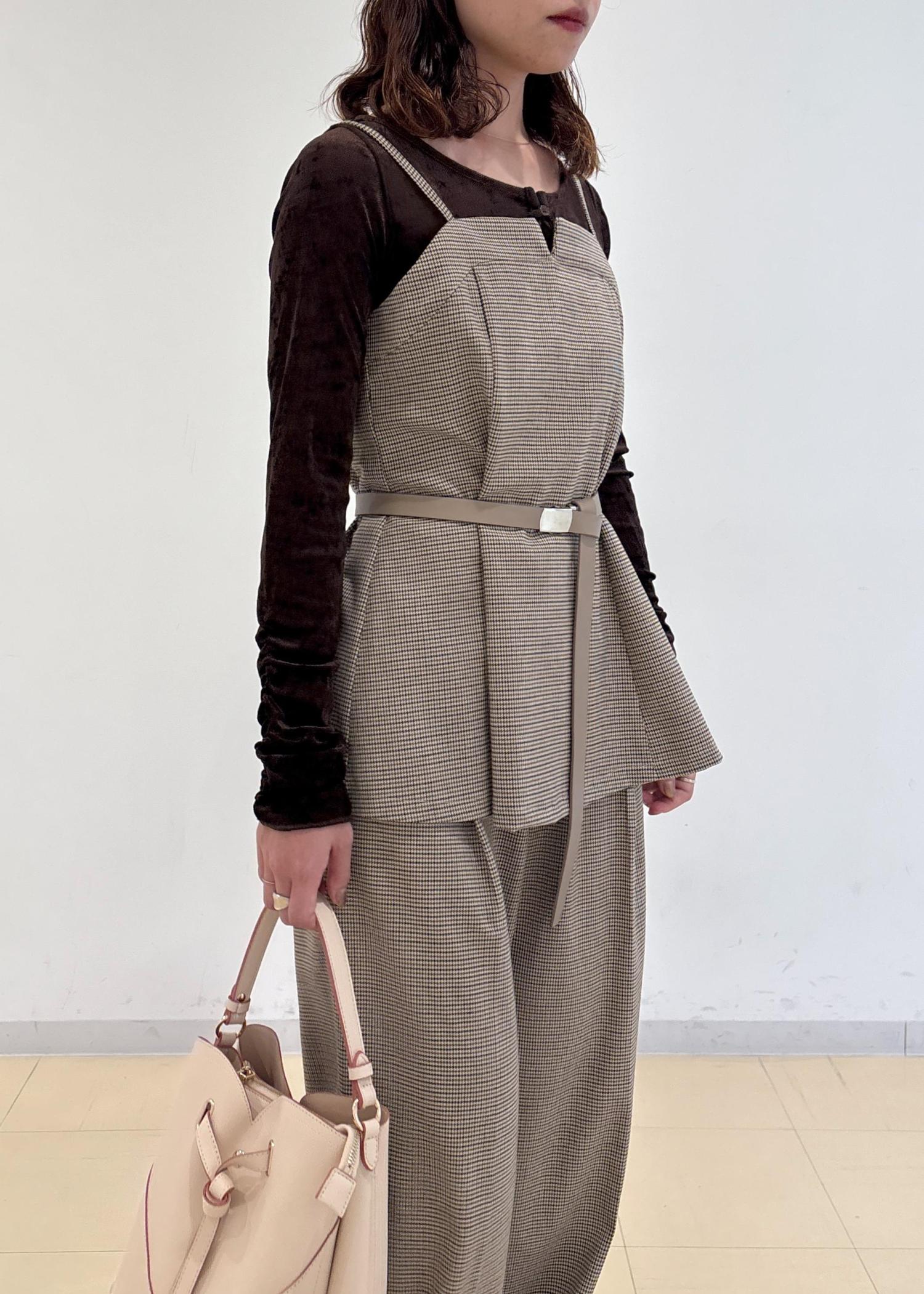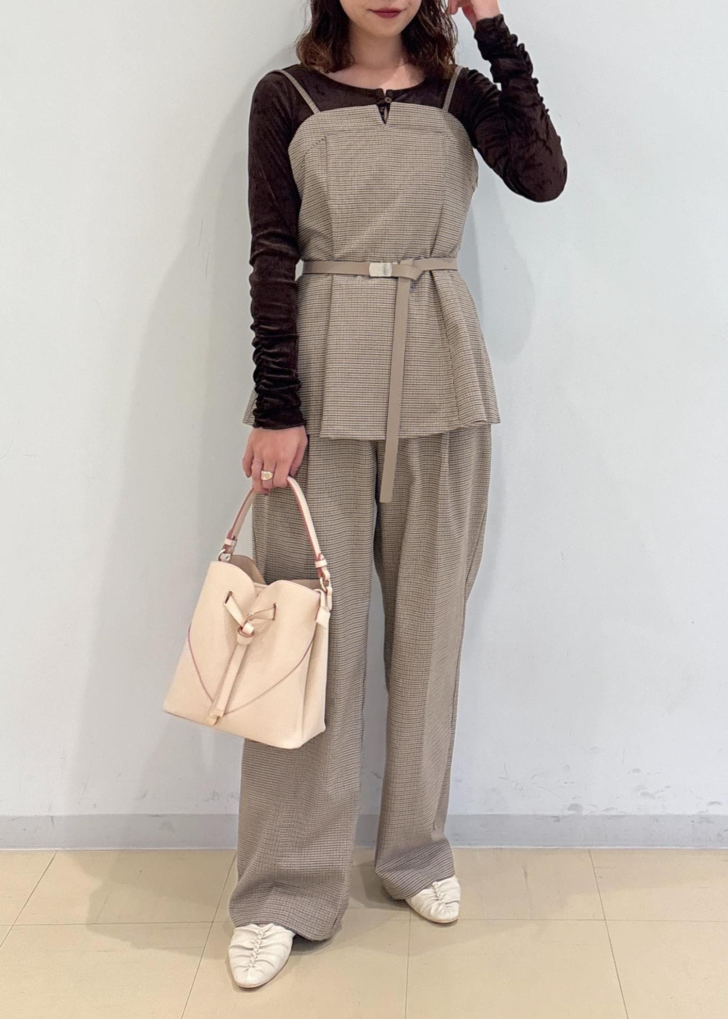 デザインがとてもシンプルでどんなボトムスにも合わせやすいですが、ウエストマーク付けるとメリハリが付きます◎ -