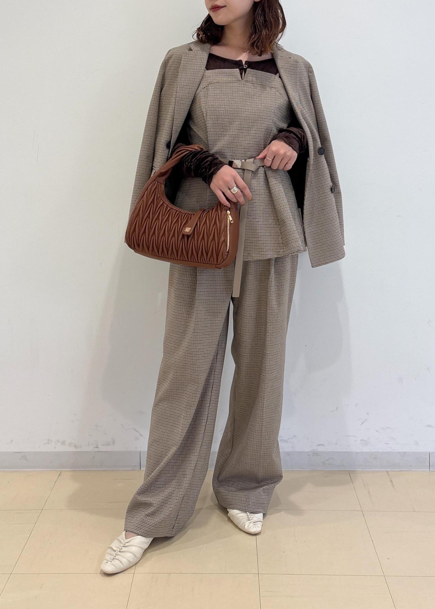 デザインがとてもシンプルでどんなボトムスにも合わせやすいですが、ウエストマーク付けるとメリハリが付きます◎ -