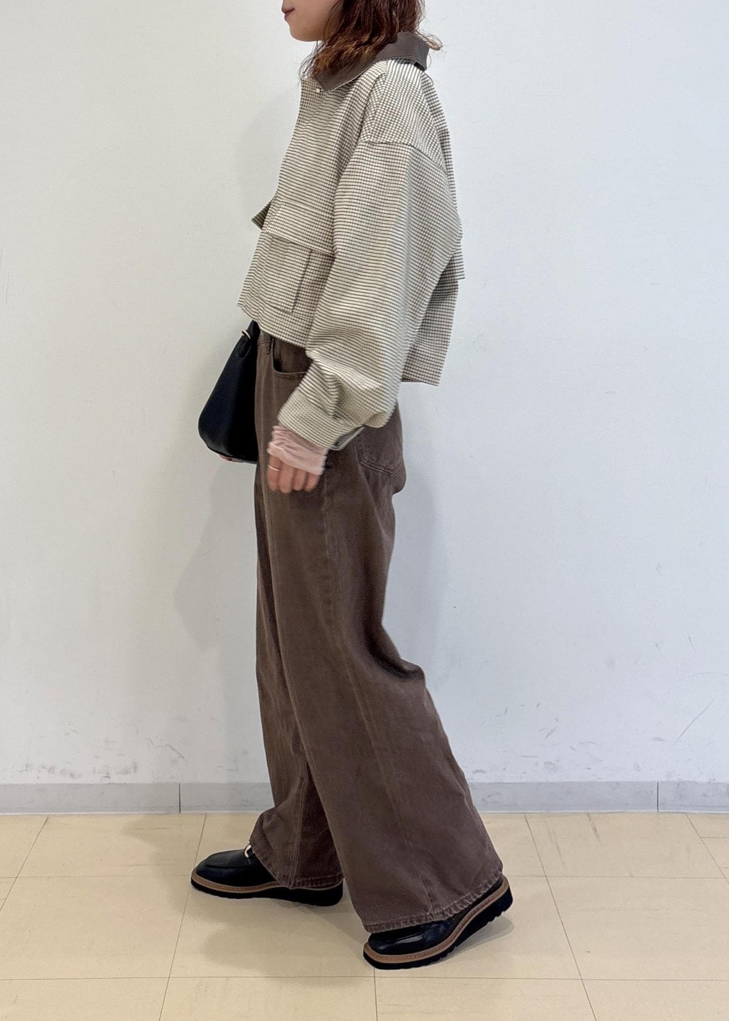 ブラウンカラーのデニムと合わせてかっこいい雰囲気にまとめました。