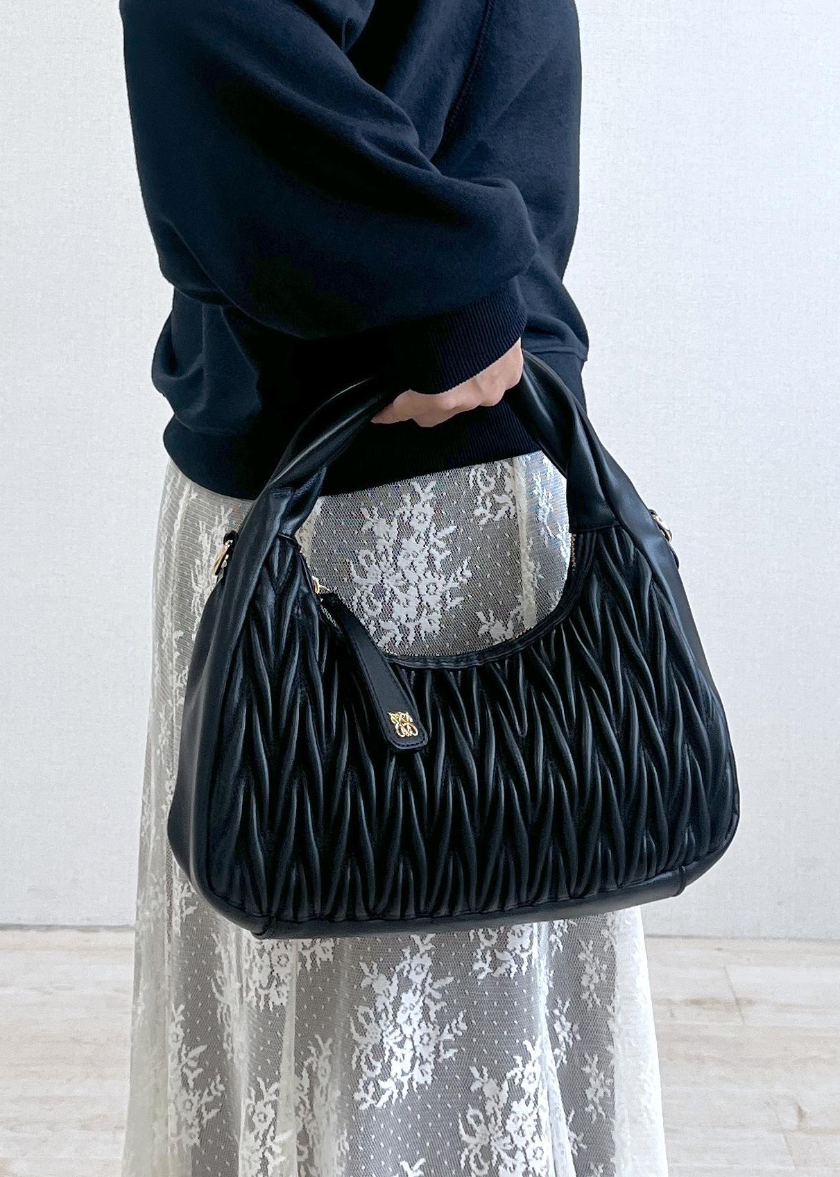 VIS【2WAY】ねじりハンドルキルティングバッグブラック / F¥7,909レビューとっても柔らかい素材で軽い高見え効果◎なバッグです。コーディネートのアクセントにもなるデザインがポイントです。ペットボトルも長財布もいれられる見た目以上に大容量です。