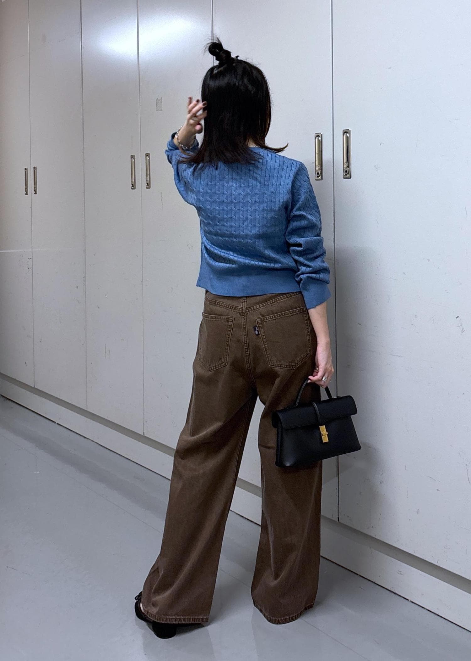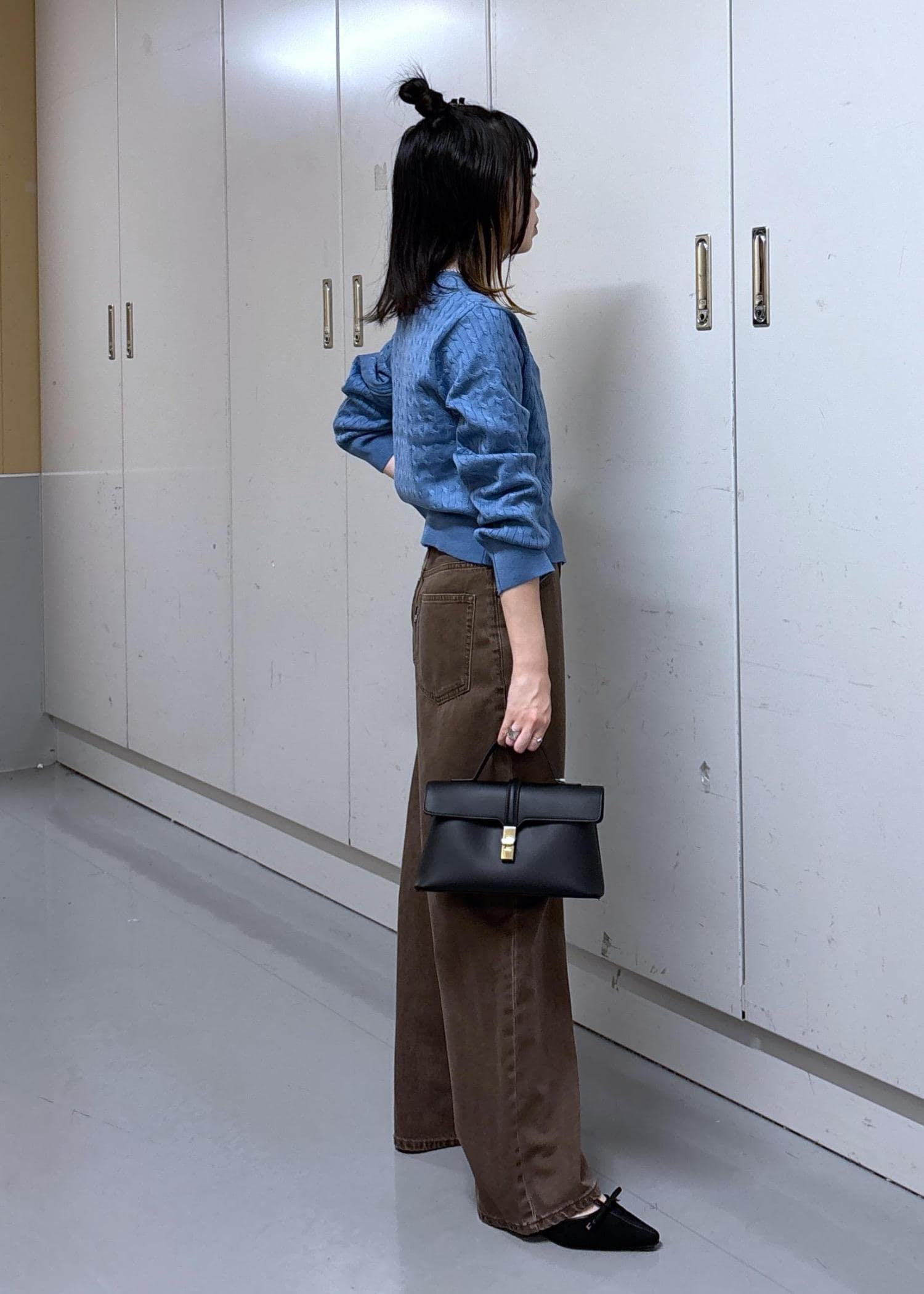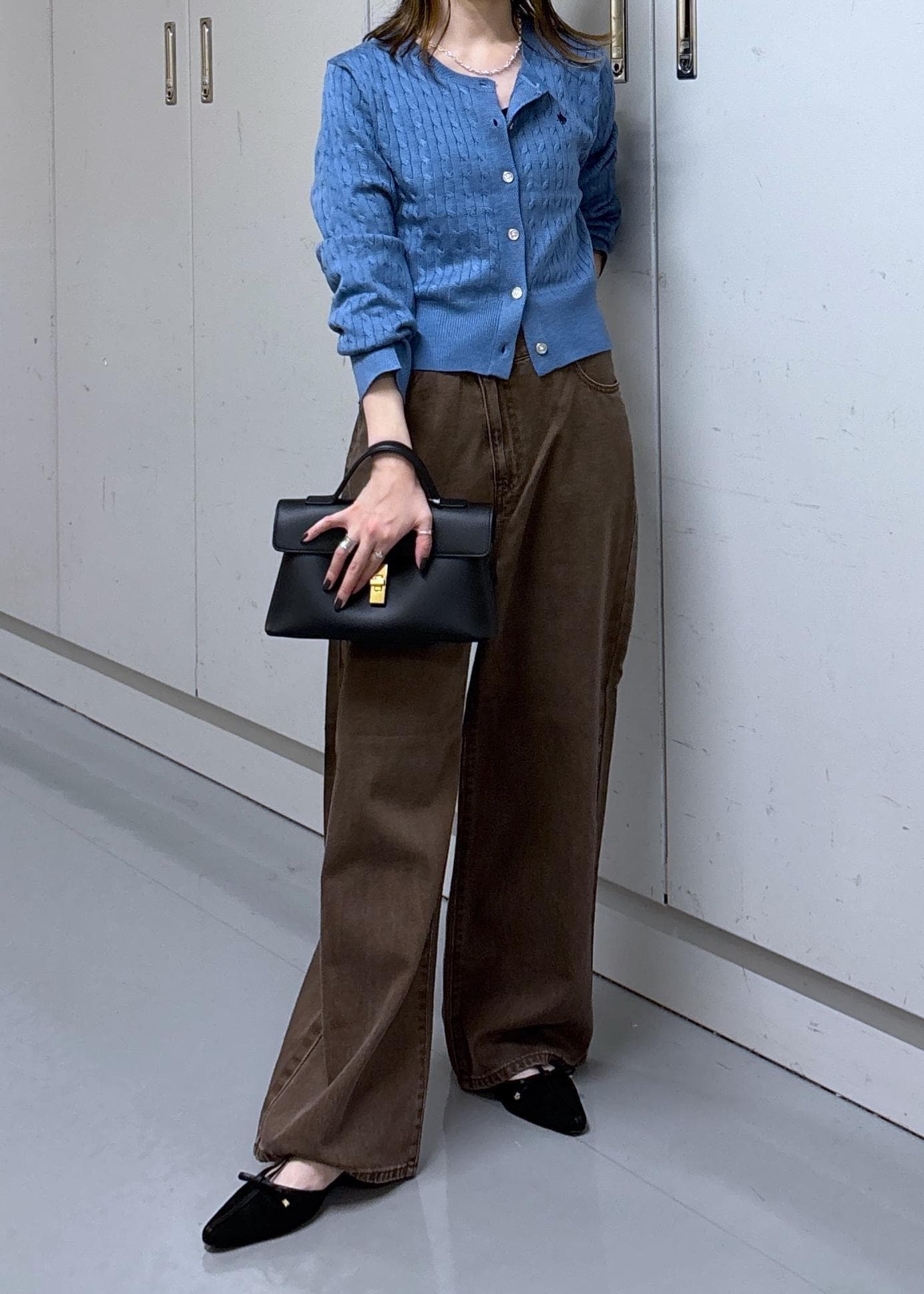 ブルー×ブラウンの相性の良さをここまで表すコーディネートがあるだろうか!という感じです✨