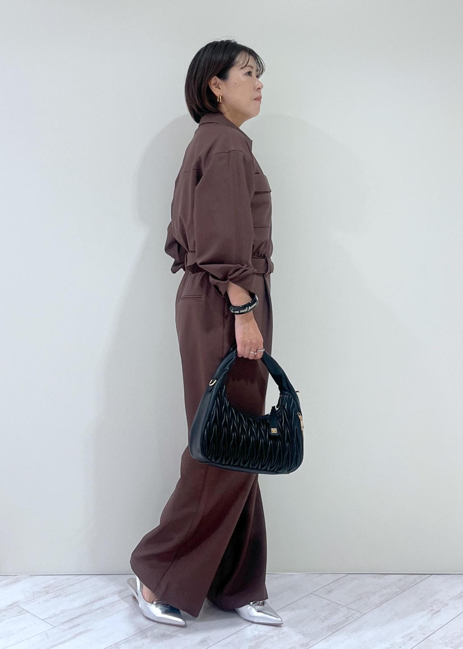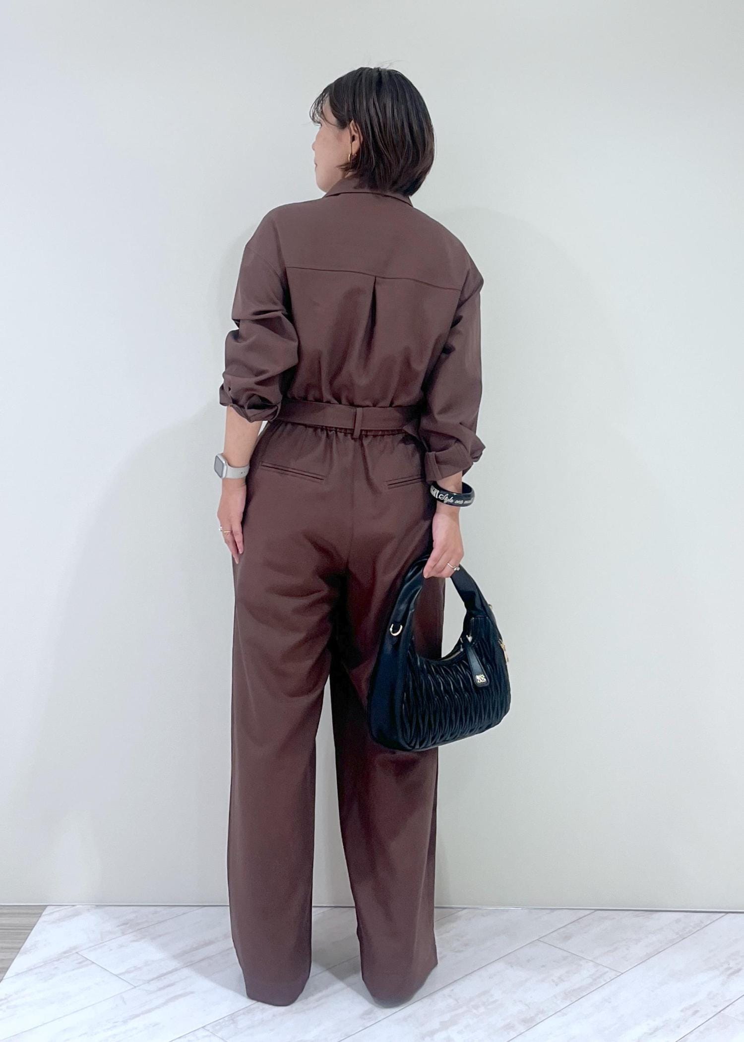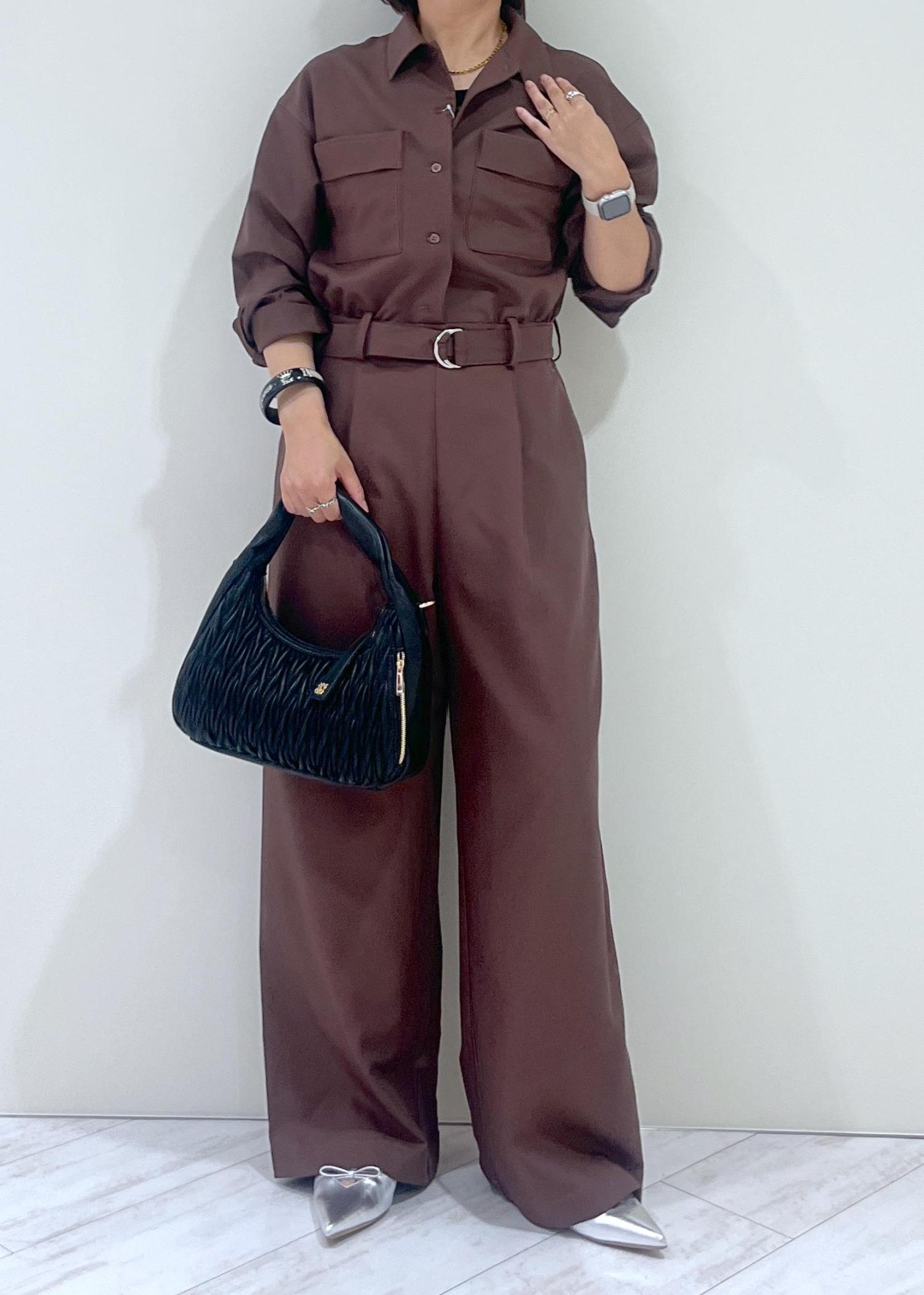 シャツとパンツを合わせたカッコいいスタイリングが一枚で叶うジャンプスーツてす。