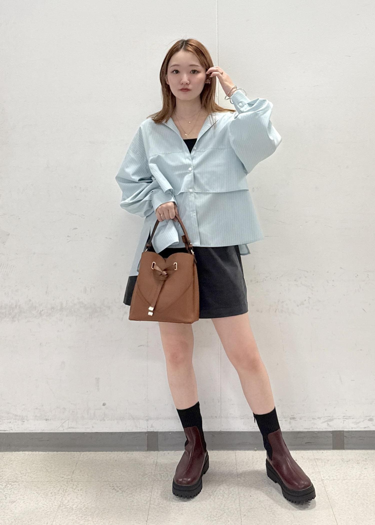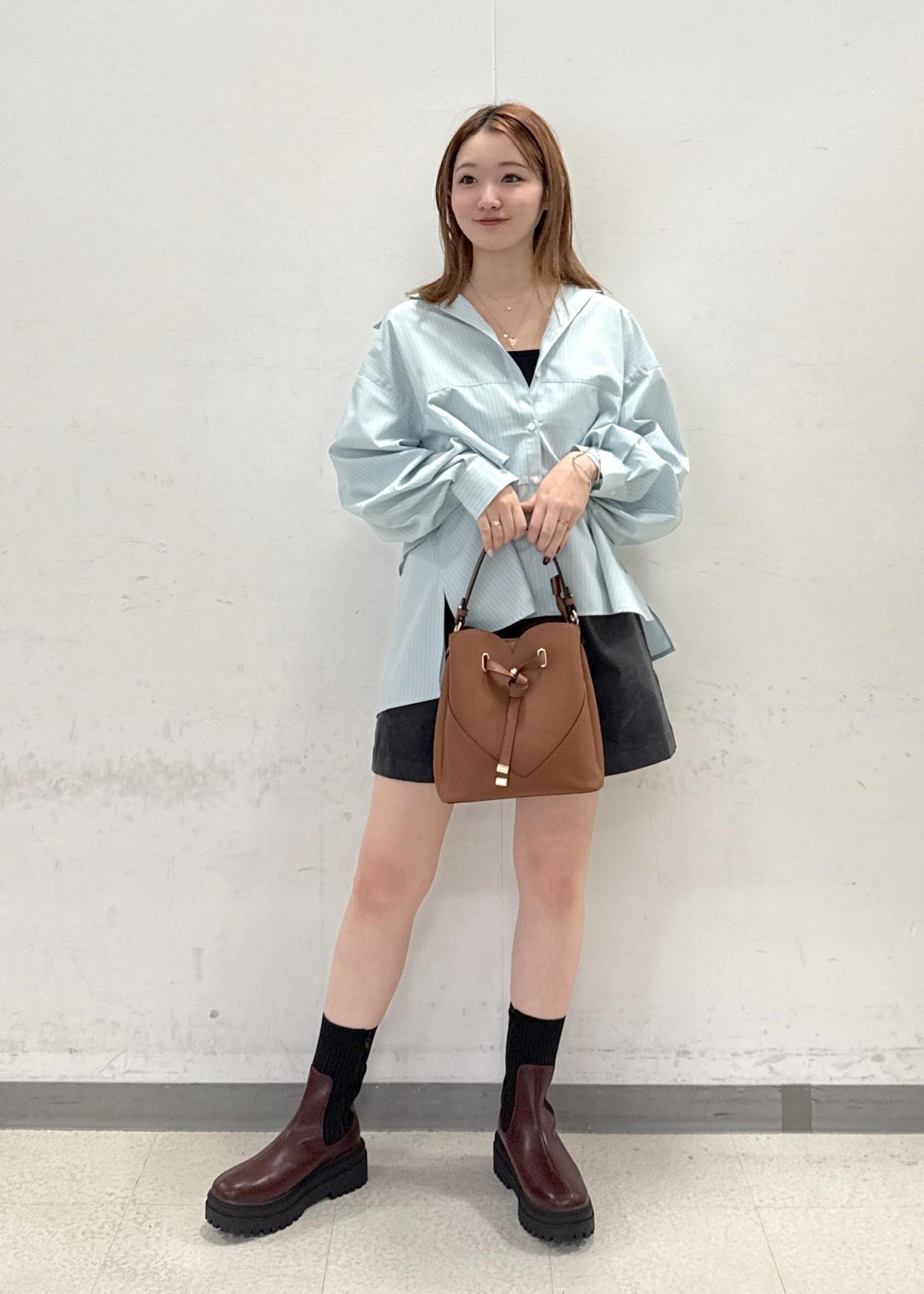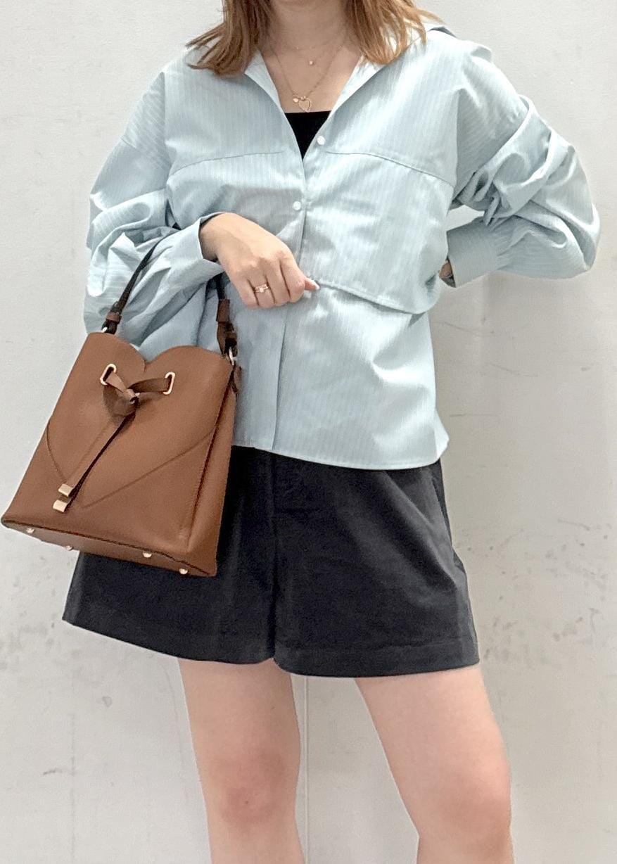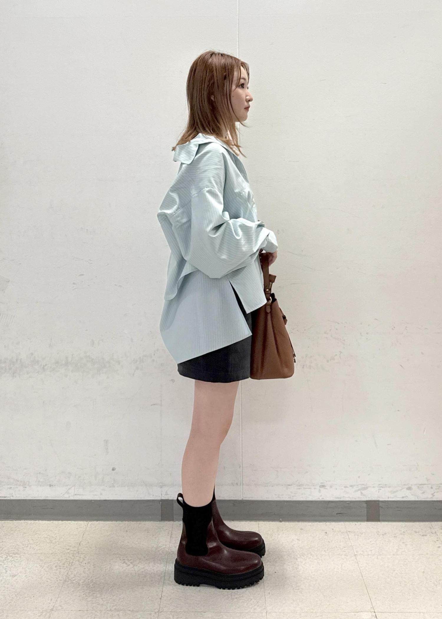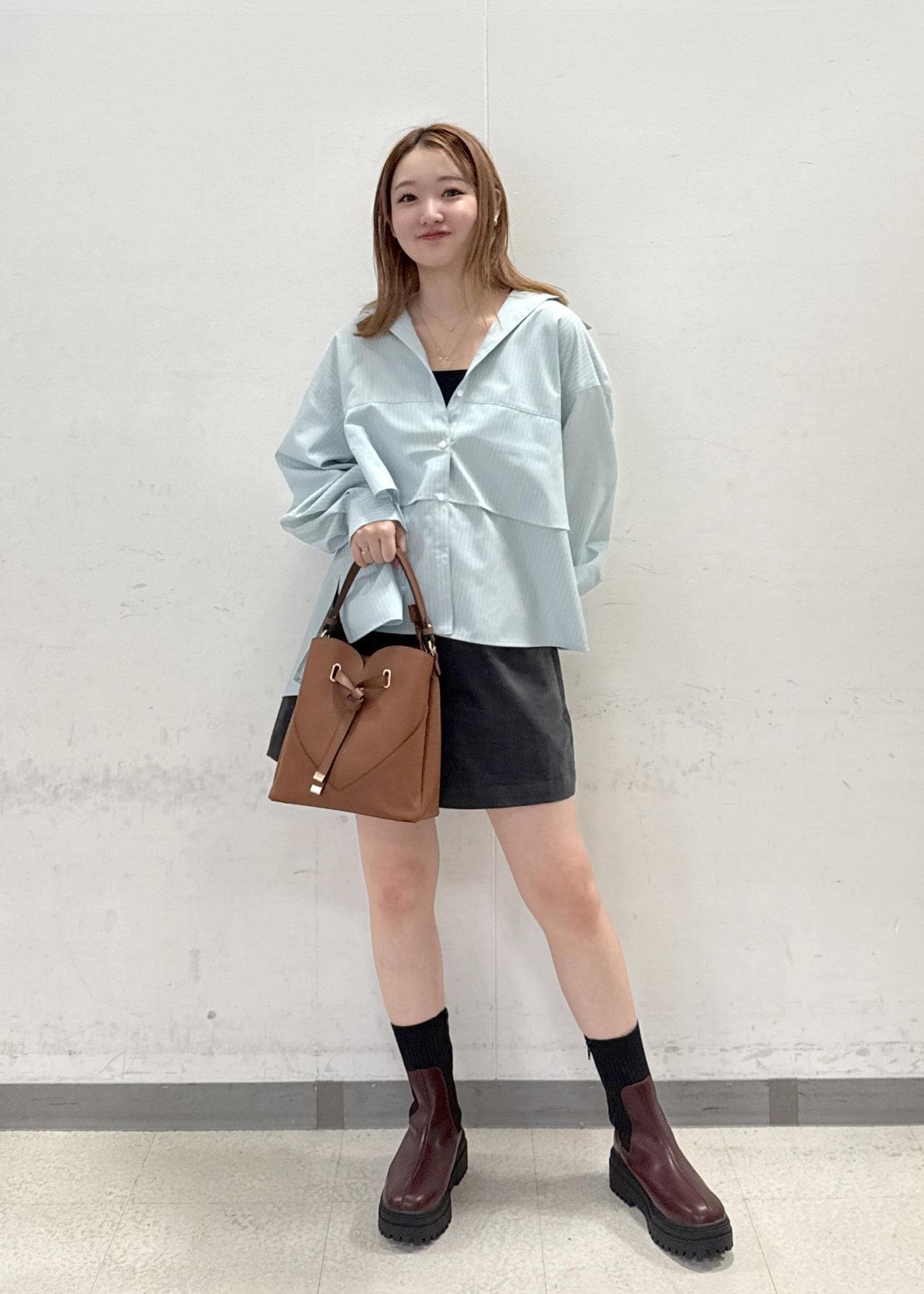 トレンドのスエードの生地感のショートパンツでカジュアルに、大きめのオーバーサイズシャツで大人っぽさもプラスしたコーディネートです!