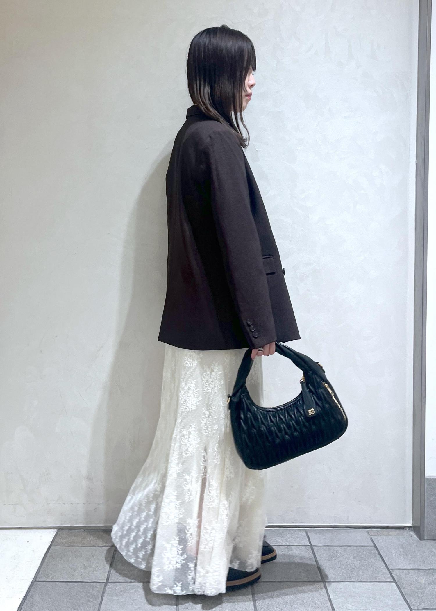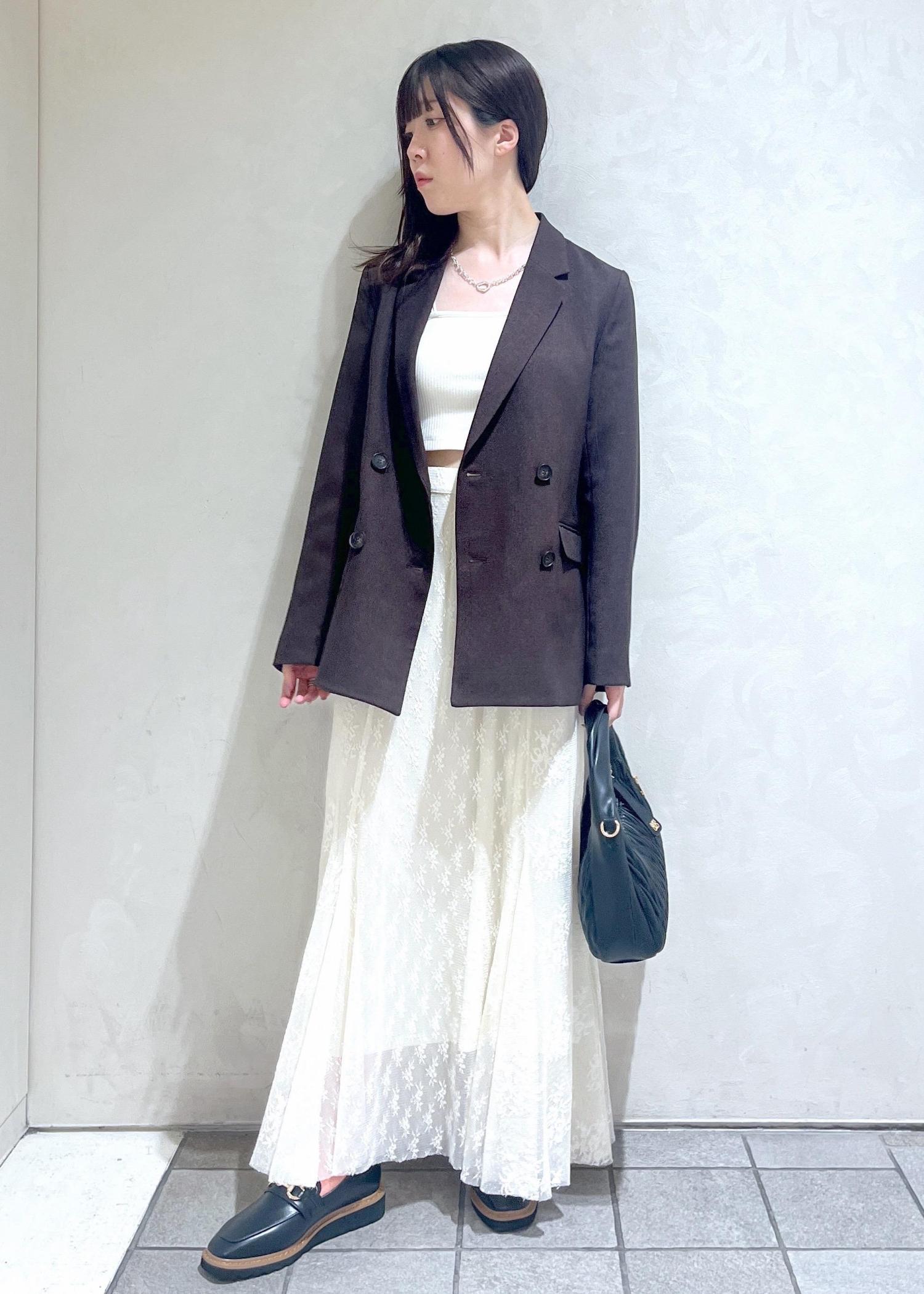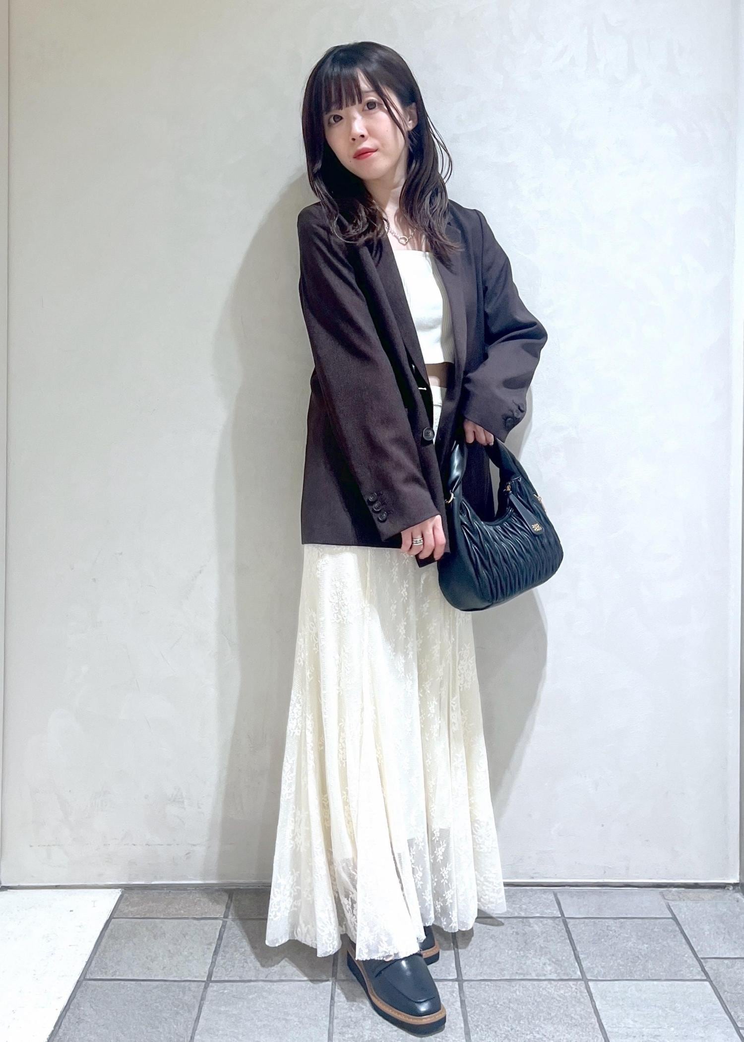 この時期着たくなる定番のジャケットをレーススカートと合わせてフェミニンコーデを組んでみました!