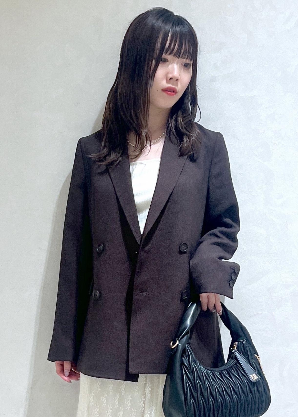 ブラウン×ホワイトの組み合わせでより柔らかい雰囲気にしたことで、かっちりしすぎない印象でお召しいただけますよ♪