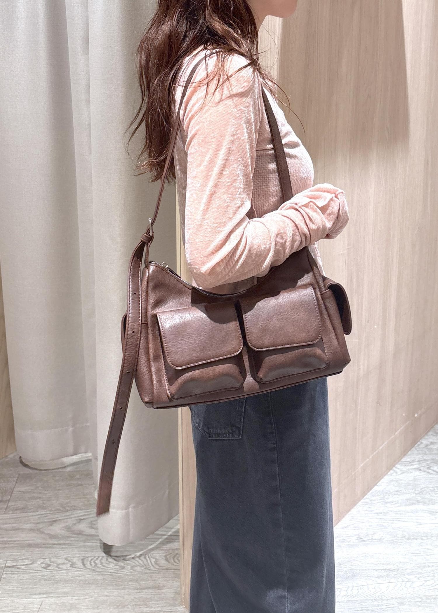 VIS【2WAY】ビンテージ合皮クアトロポケットショルダーバッグブラウン系 / F¥6,919レビュービンテージ風の素材が秋っぽくて可愛い◎