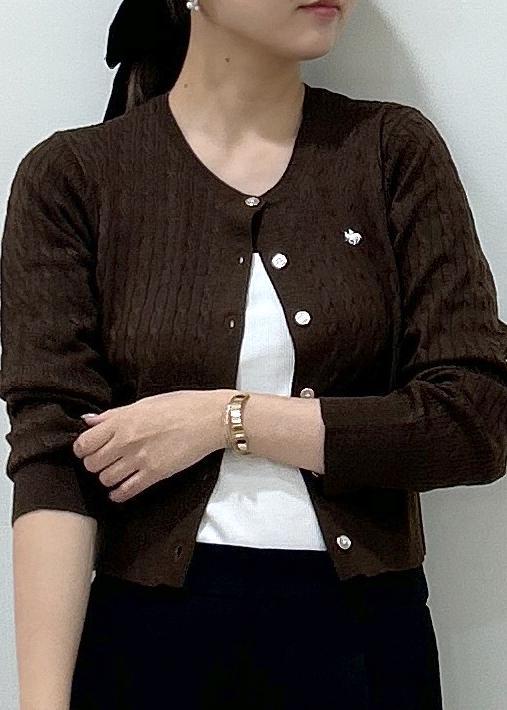 VIS【POLO BCS】VIS別注ミニケーブルノーカラーニットカーディガンダークブラウン / F¥6,930レビューコンパクトなサイズ感が可愛い