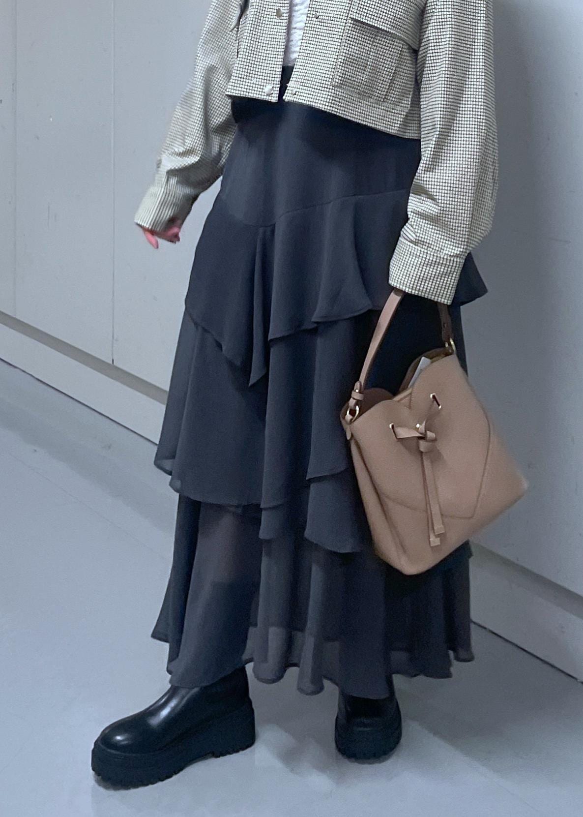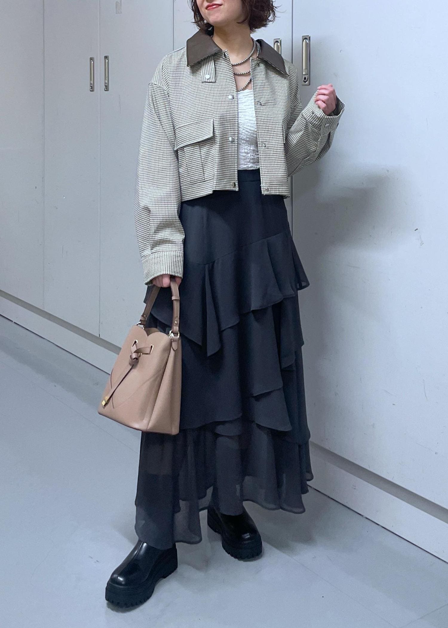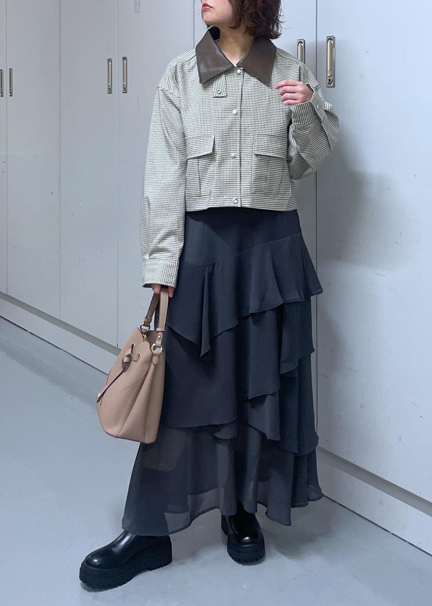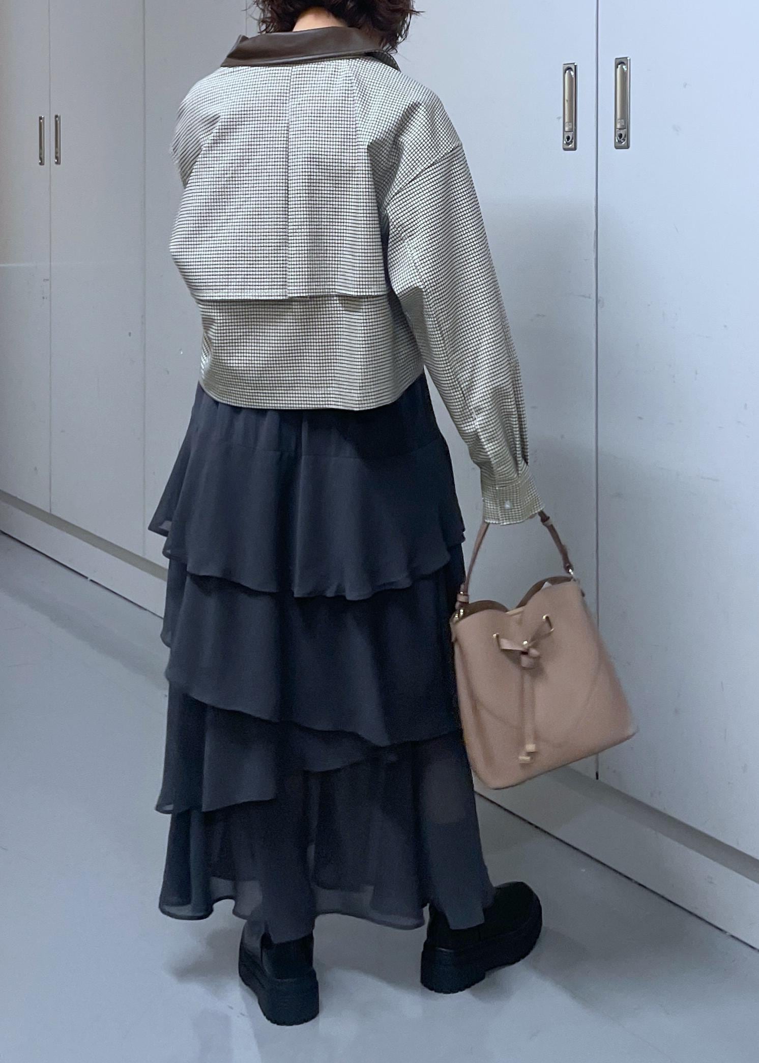 ティアードデザインですが落ち感あるお素材なので、ボリューム出過ぎず骨格ストレートの私も着用しやすいです。 -