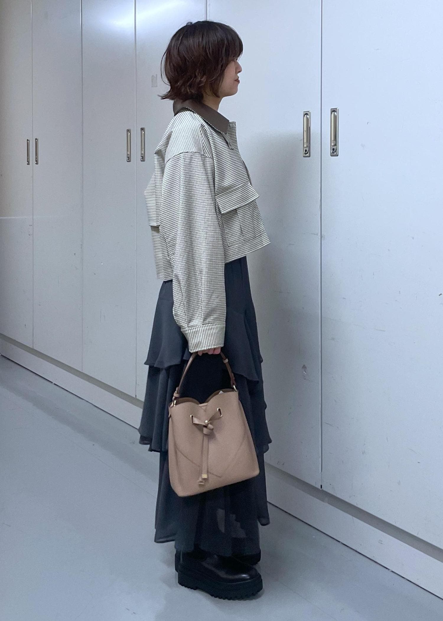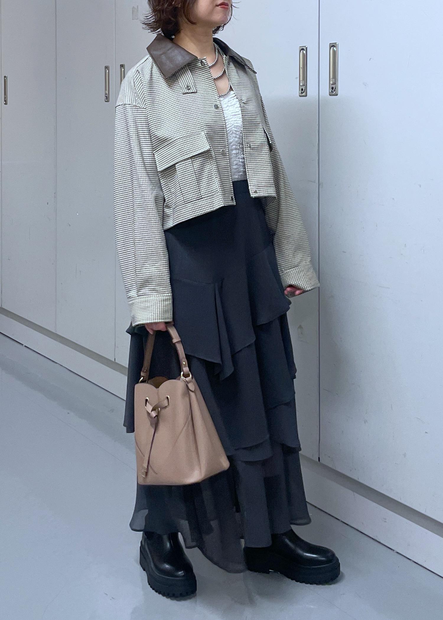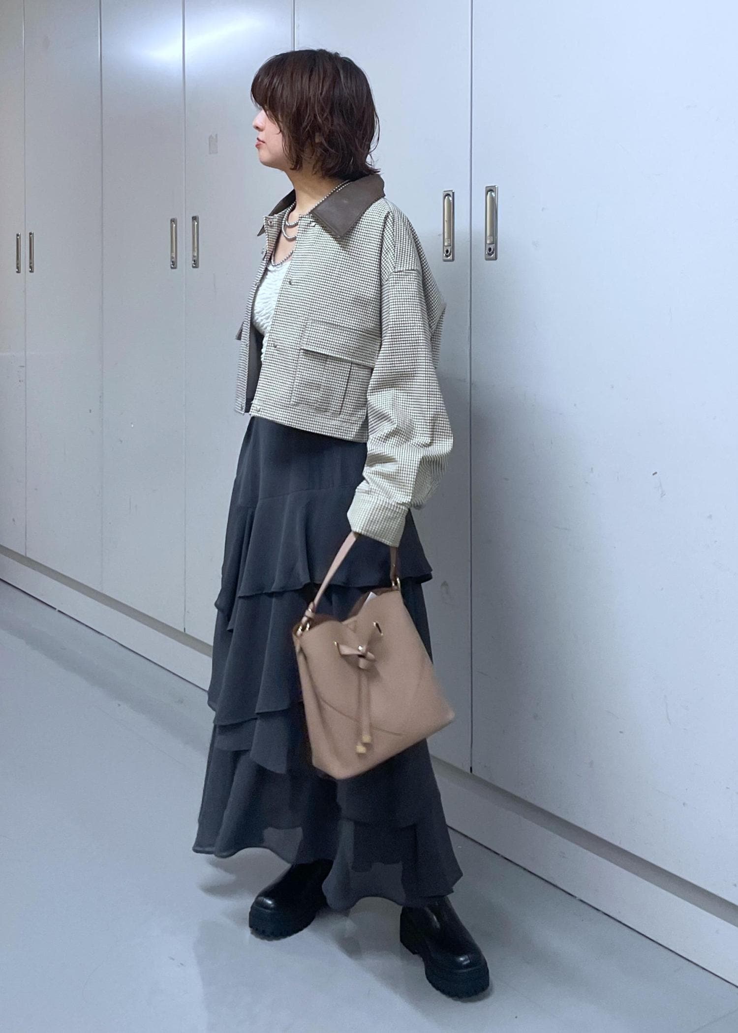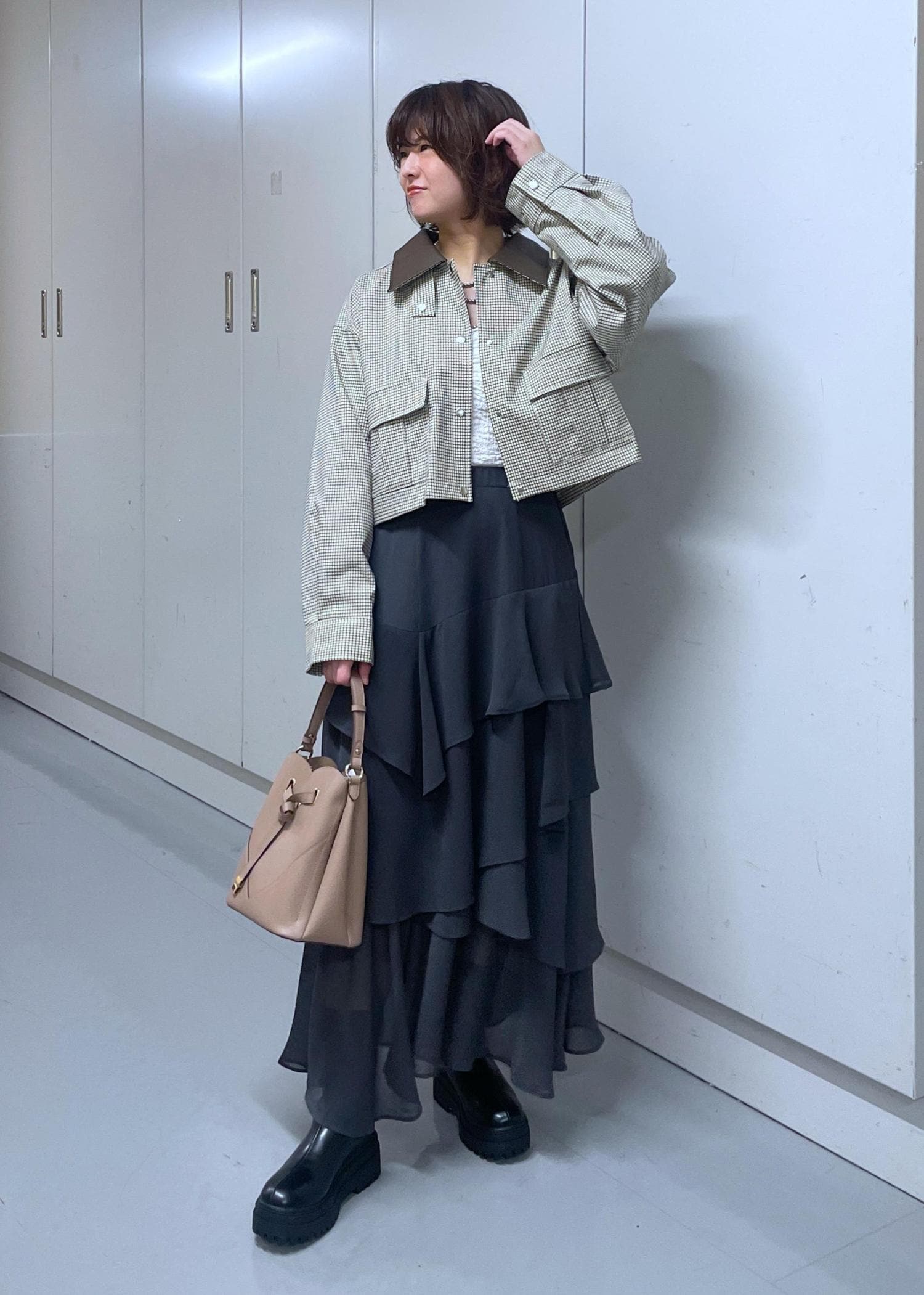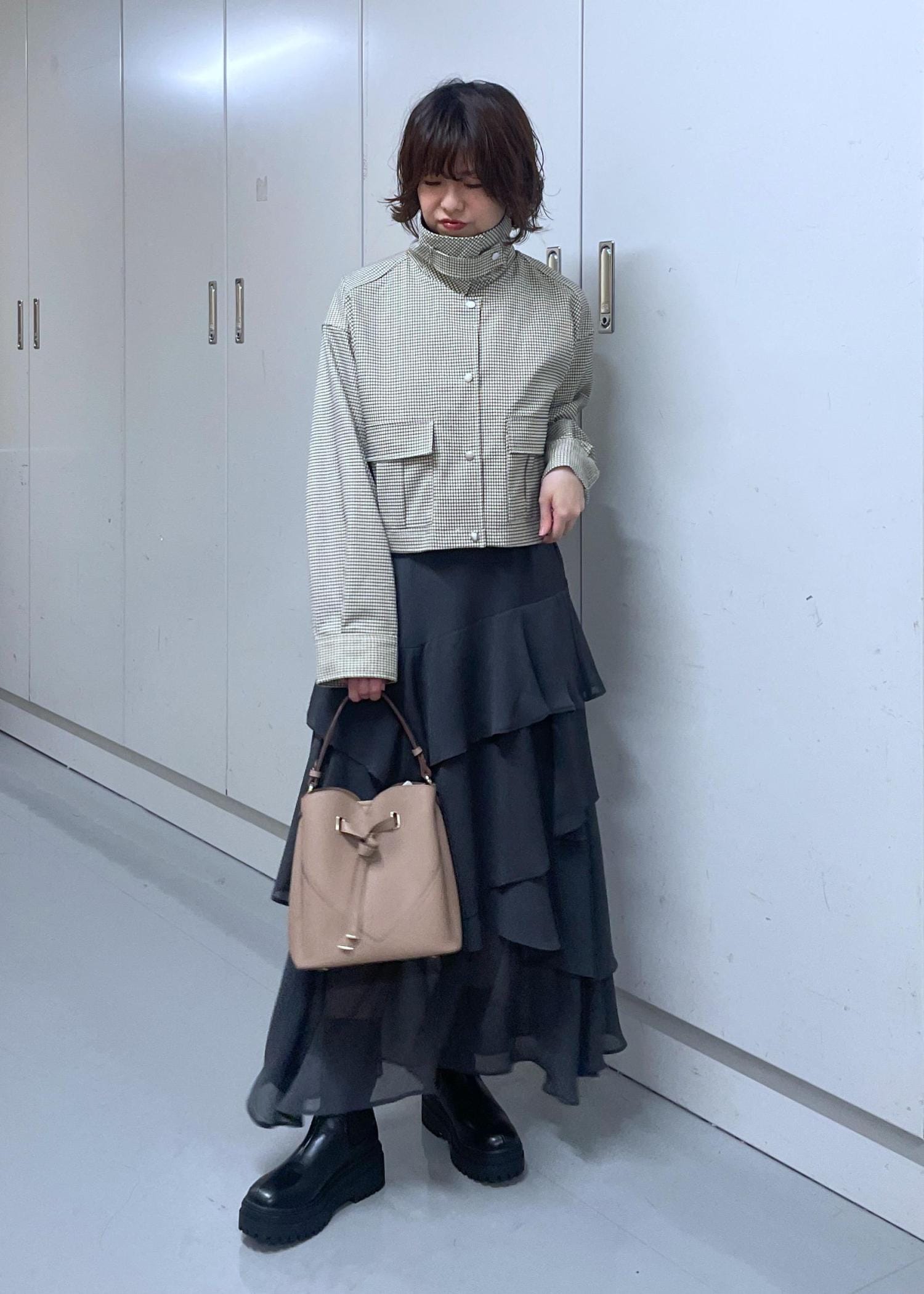 ティアードデザインですが落ち感あるお素材なので、ボリューム出過ぎず骨格ストレートの私も着用しやすいです。 -