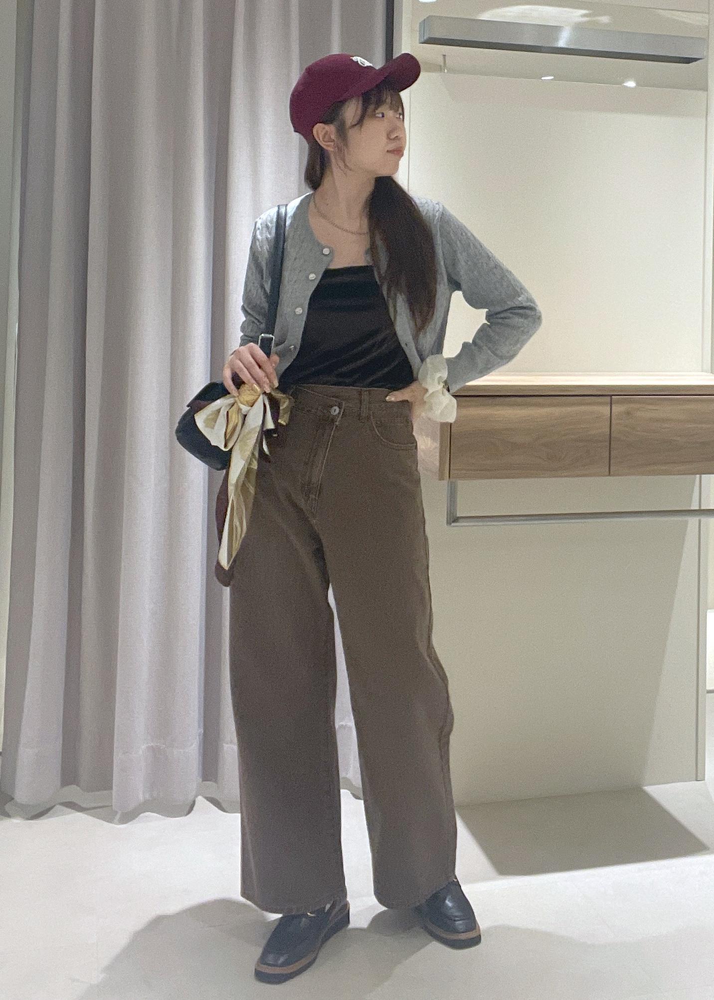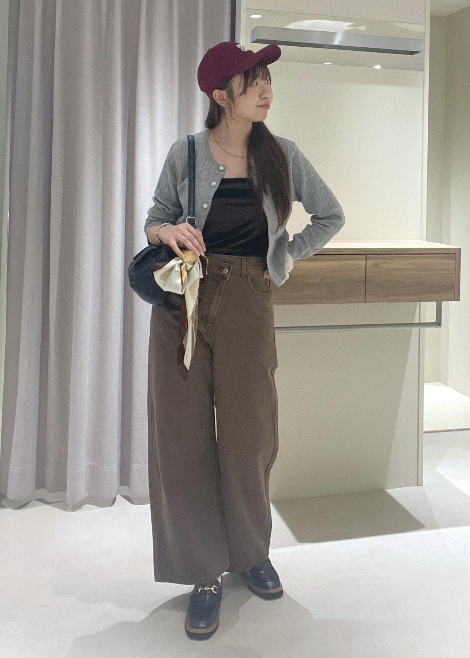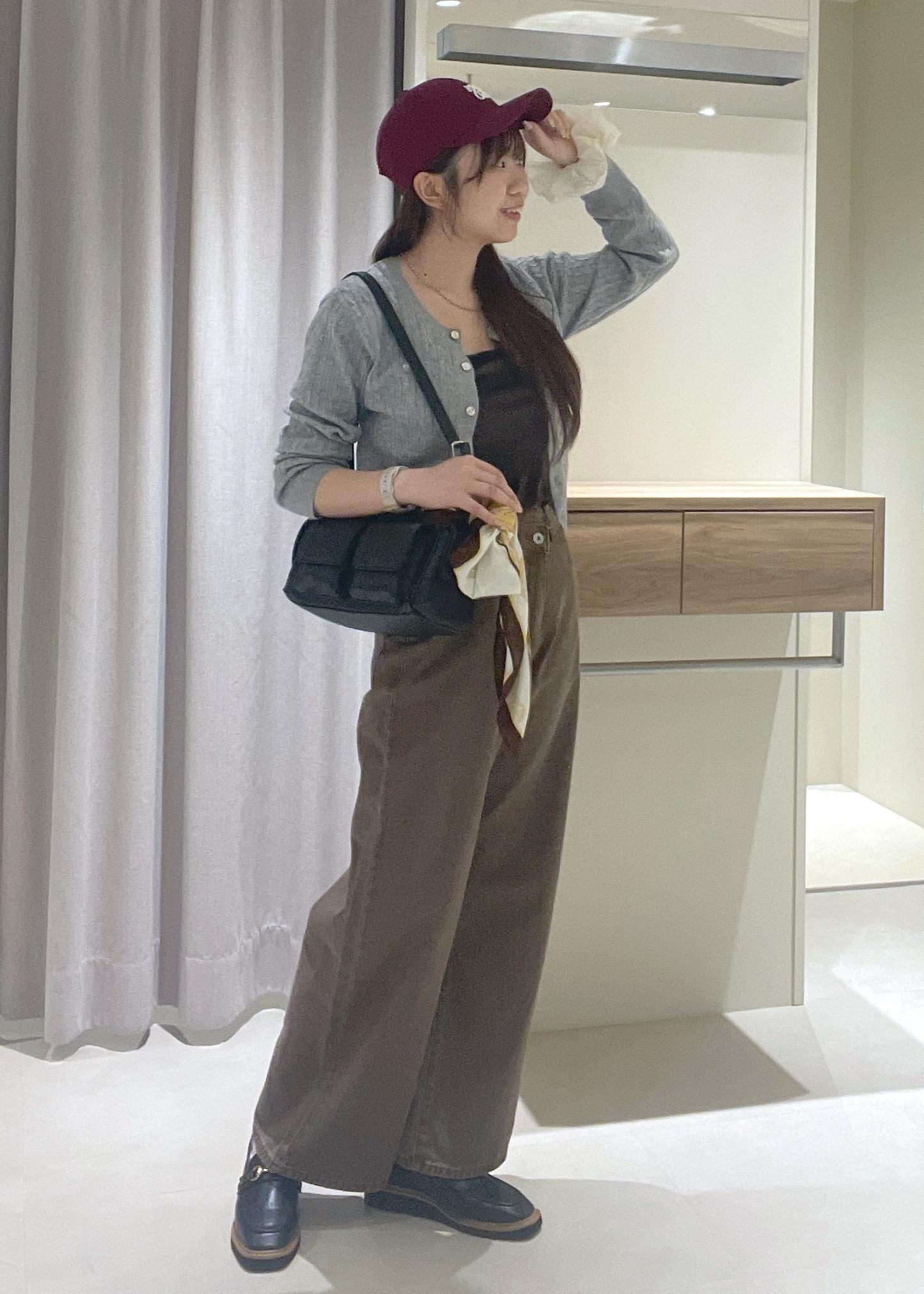 こちらを着用しながら肌見せスタイリングをして頂くと、暑い時期でもさりげなく秋らしさを取り入れることができるので、ありがたいアイテムです◎