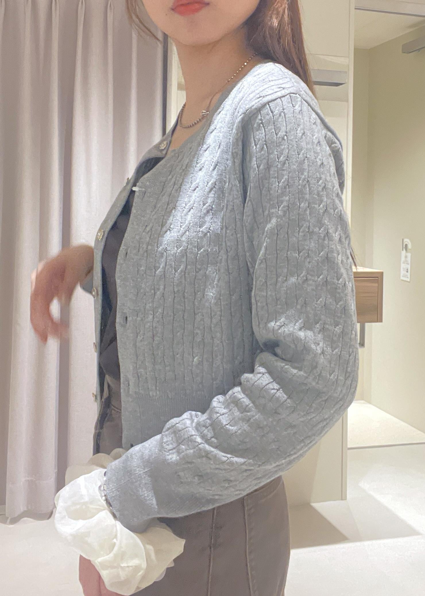 カーディガンとして羽織っても良し、ボタンを留めて、スッキリシルエットのトップスとして着るも良しです◎