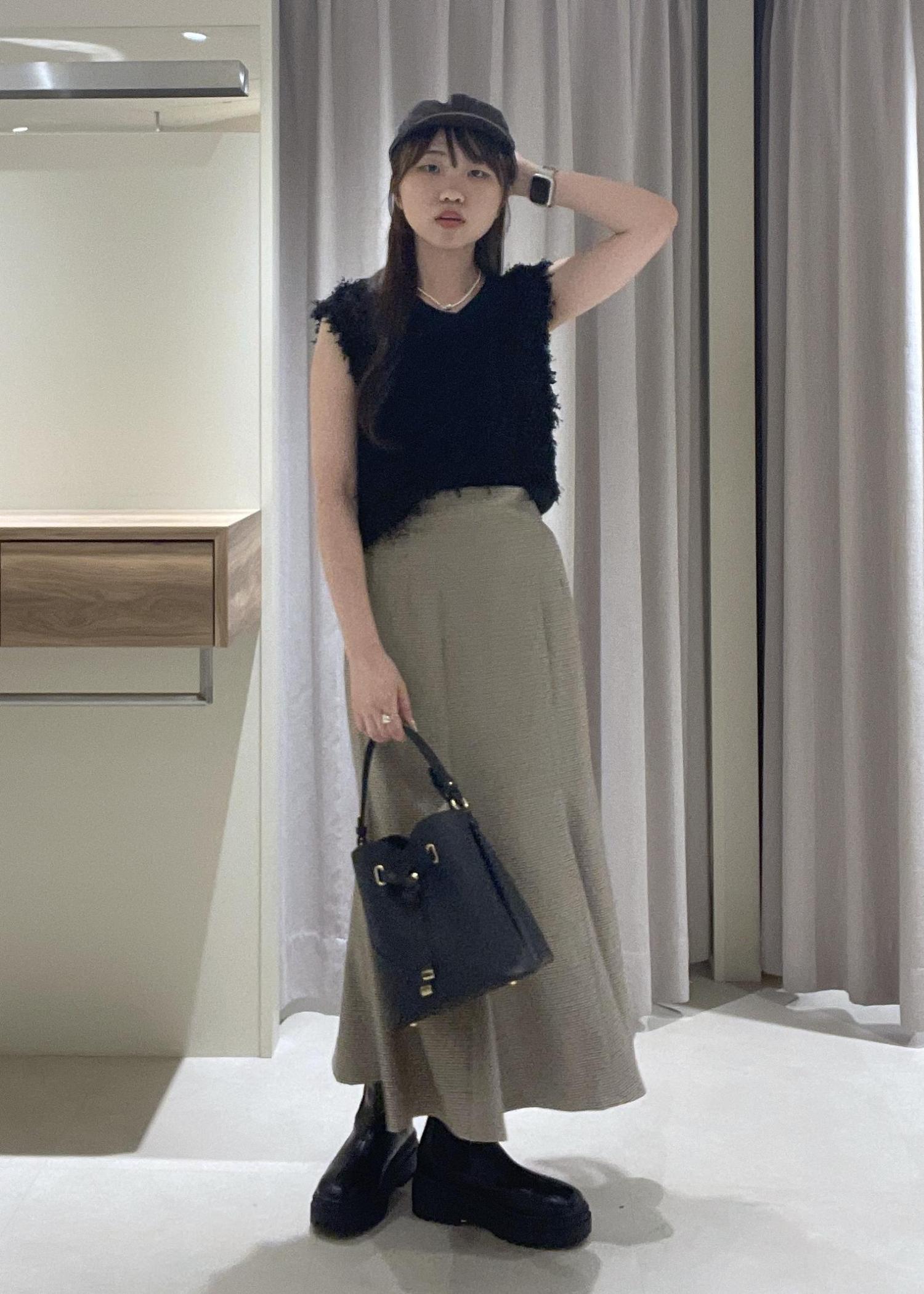 脇が広めなので、見えてもOKなインナーもしくはTシャツ合わせが◎ -
