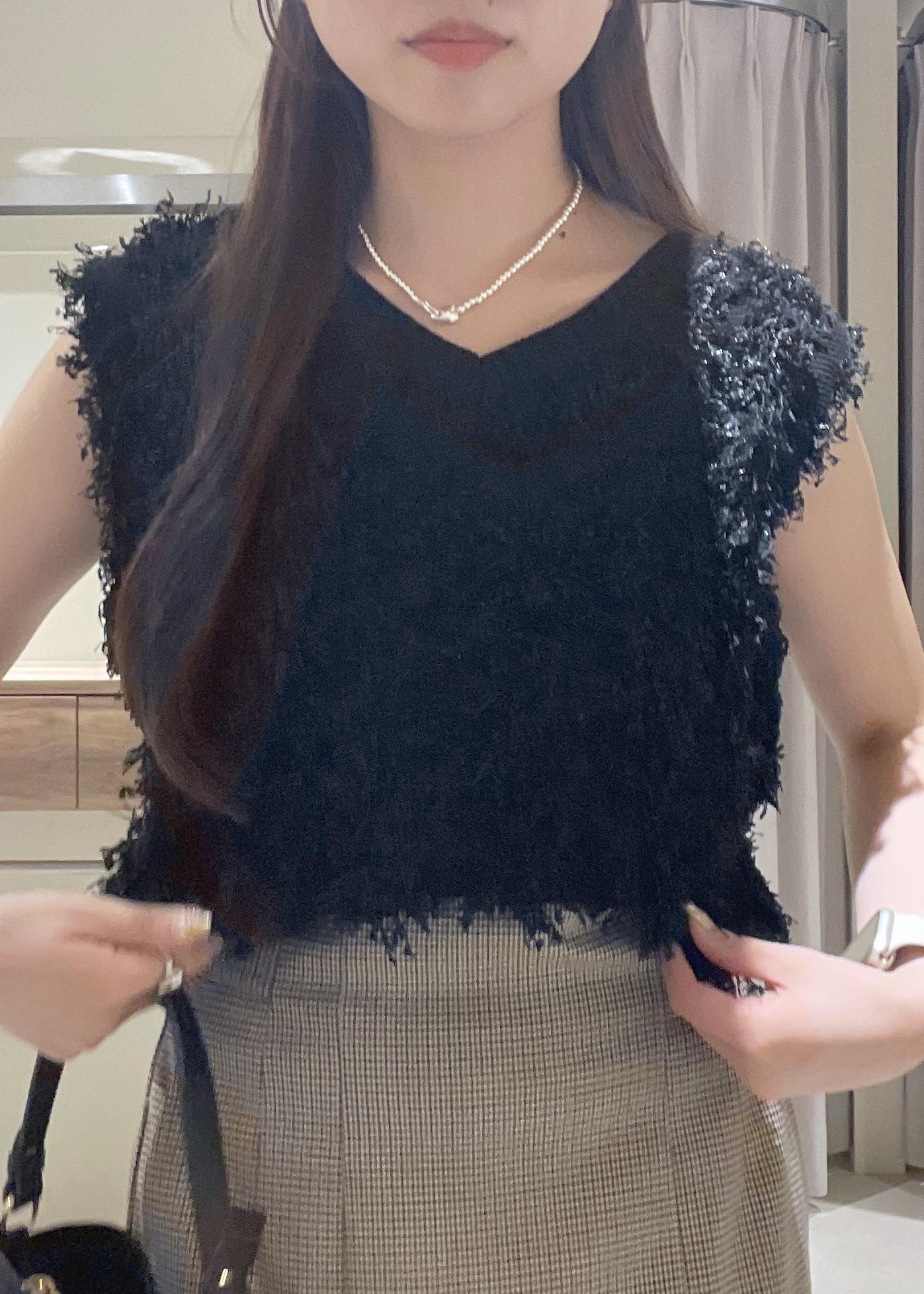 VIS【2WAY】フリンジニットベストブラック系 / F¥5,929レビューフリンジがオシャレなベストです