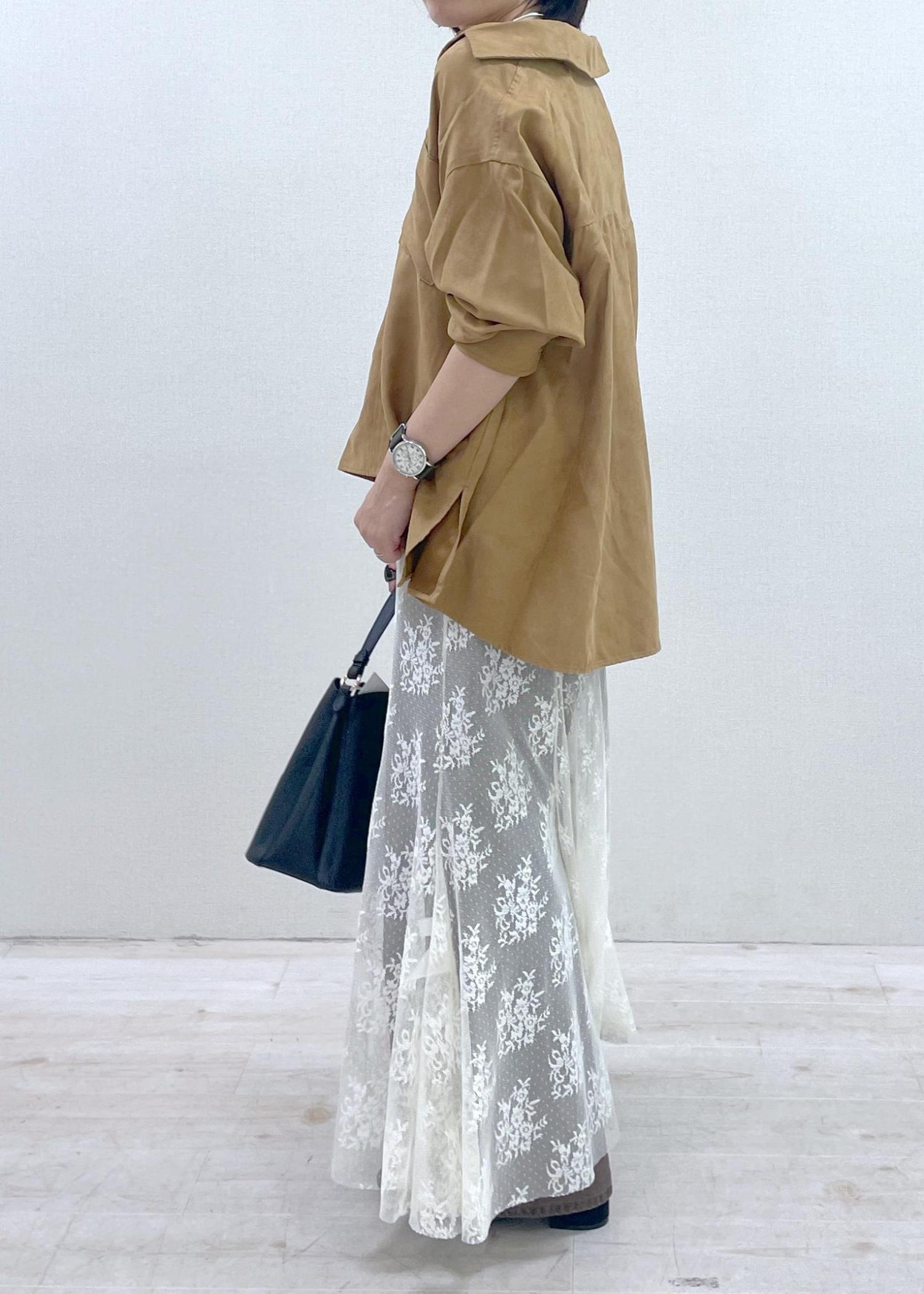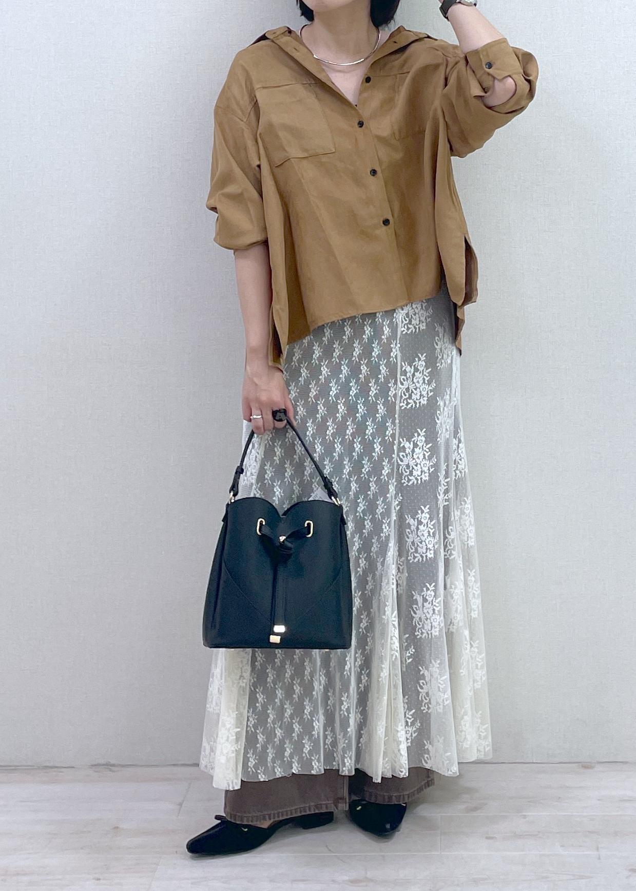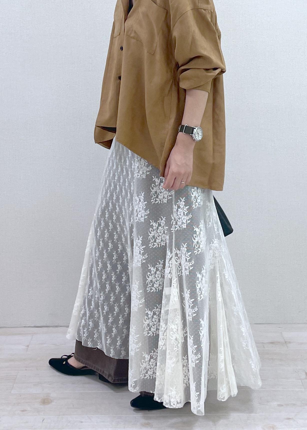レースは裏地と、別々に着用できるので、パンツに重ねて、レイヤードスタイルを楽しめます◎ -