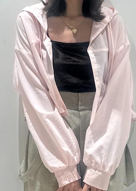 VISフード付きクロップドシアーシャツピンク / F¥3,953レビュートレンドのフード付きシアーシャツは、羽織りとしてもトップスとしても活用でき、冷房対策や日焼け対策にも◎