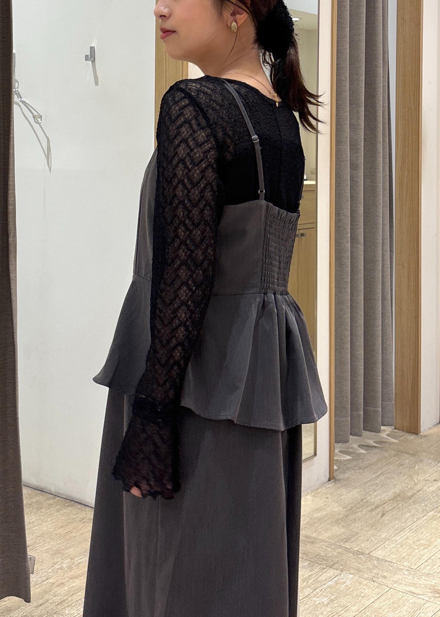 ウエストのタックでスタイルアップ&ペプラムでお尻と骨盤が隠れ体型カバー!