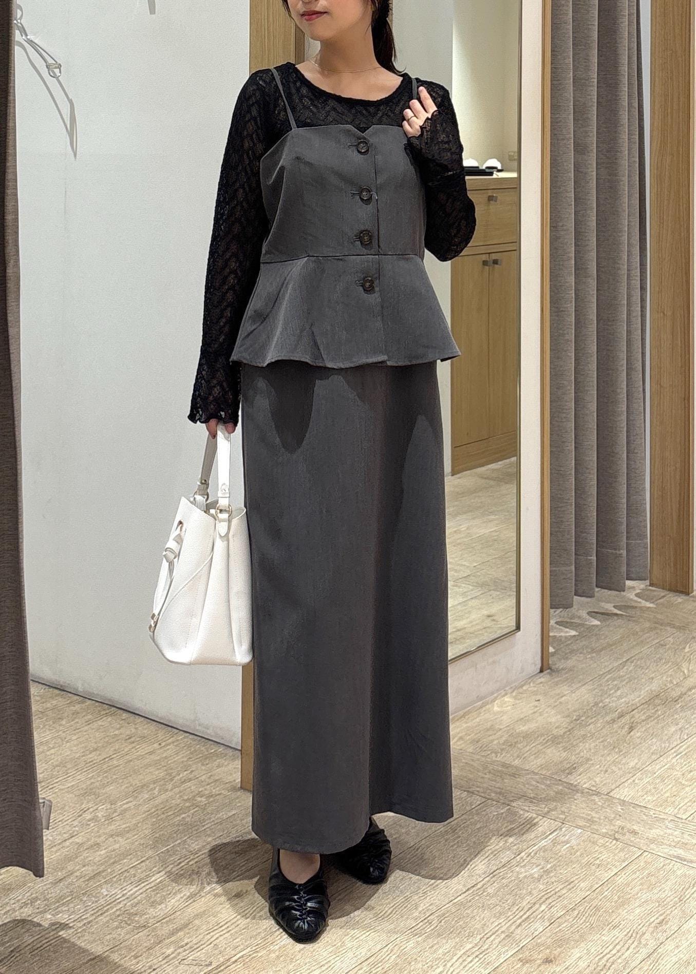 VISビスチェドッキングライクキャミワンピースグレー / F¥7,689レビュー身長152センチで足首にかかるくらいの丈感です。フラットシューズでも安心◎