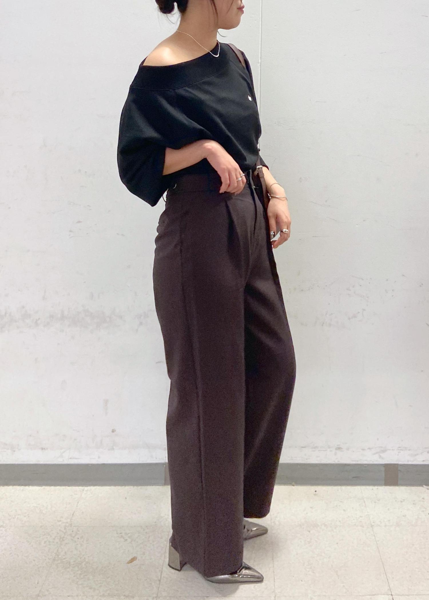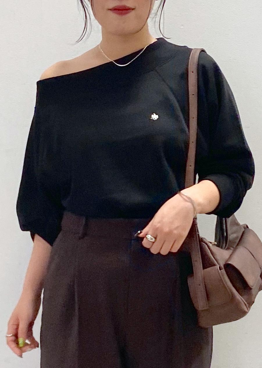 VIS【POLO BCS】VIS別注ワンショルダースウェットトップスブラック / F¥5,940レビューワンショルダーやトレンドのレイヤードスタイルもしやすい首の開き具合です。