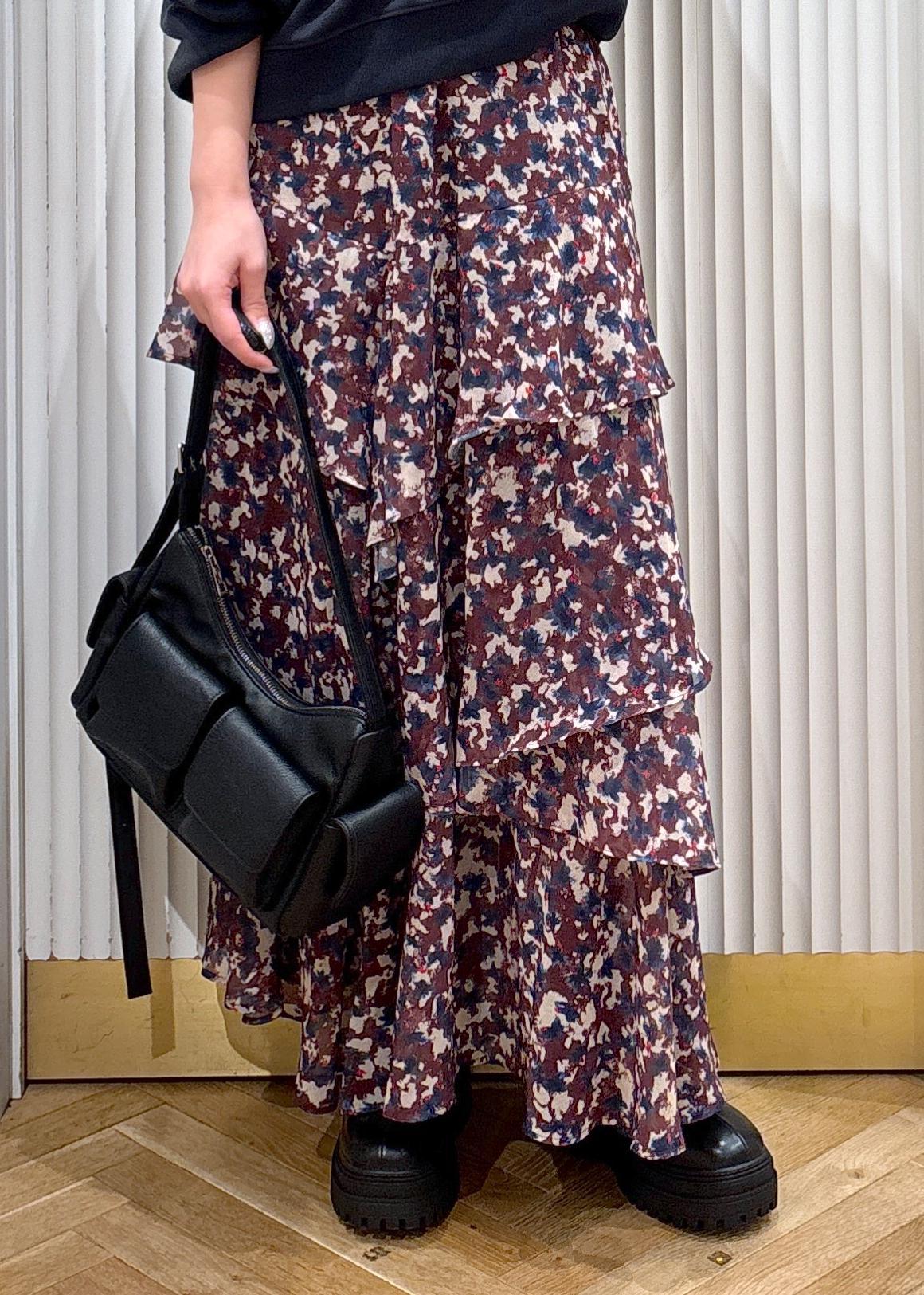 VIS花柄アソート楊柳ティアードスカートブラウン系 / F¥4,613レビュー一枚履くだけでコーディネートが華やかになります!